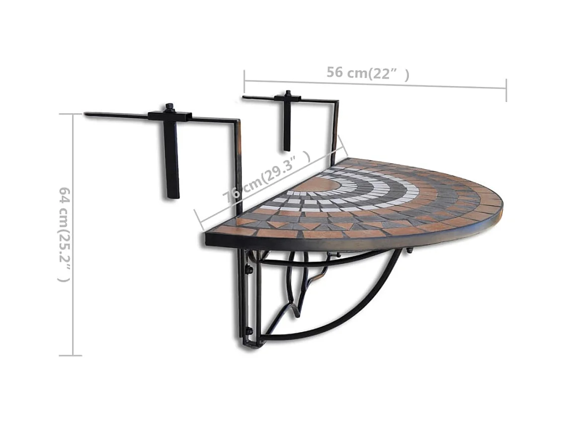 Hangende balkontafel Terracotta en wit Mozaïek
