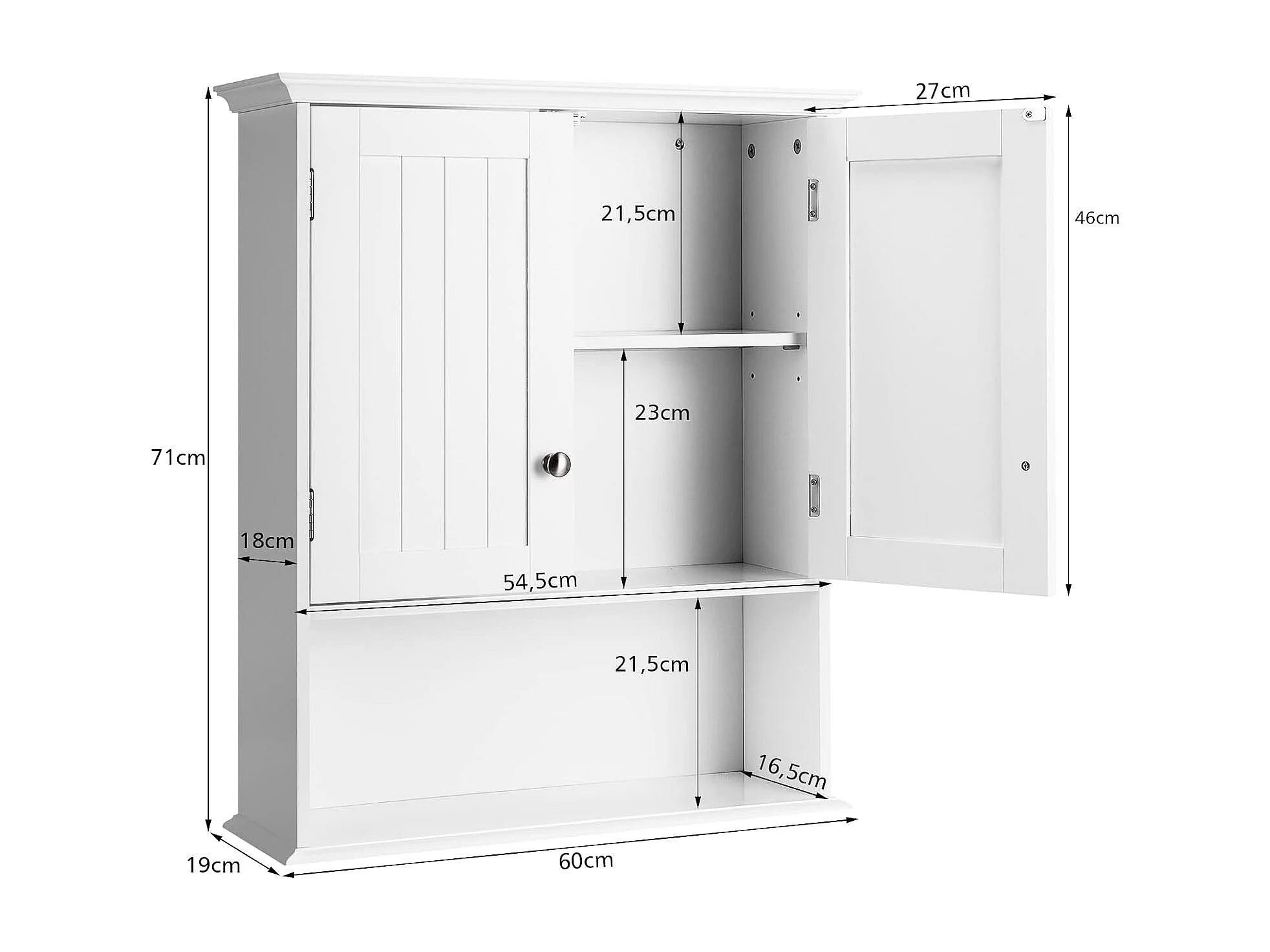 Hangkast voor badkamer, badkamerkast van hout met deuren en verstelbare planken, wandkast, keukenkast voor badkamer, keuken, slaapkamer, 60 x 19 x 71 cmTI88801