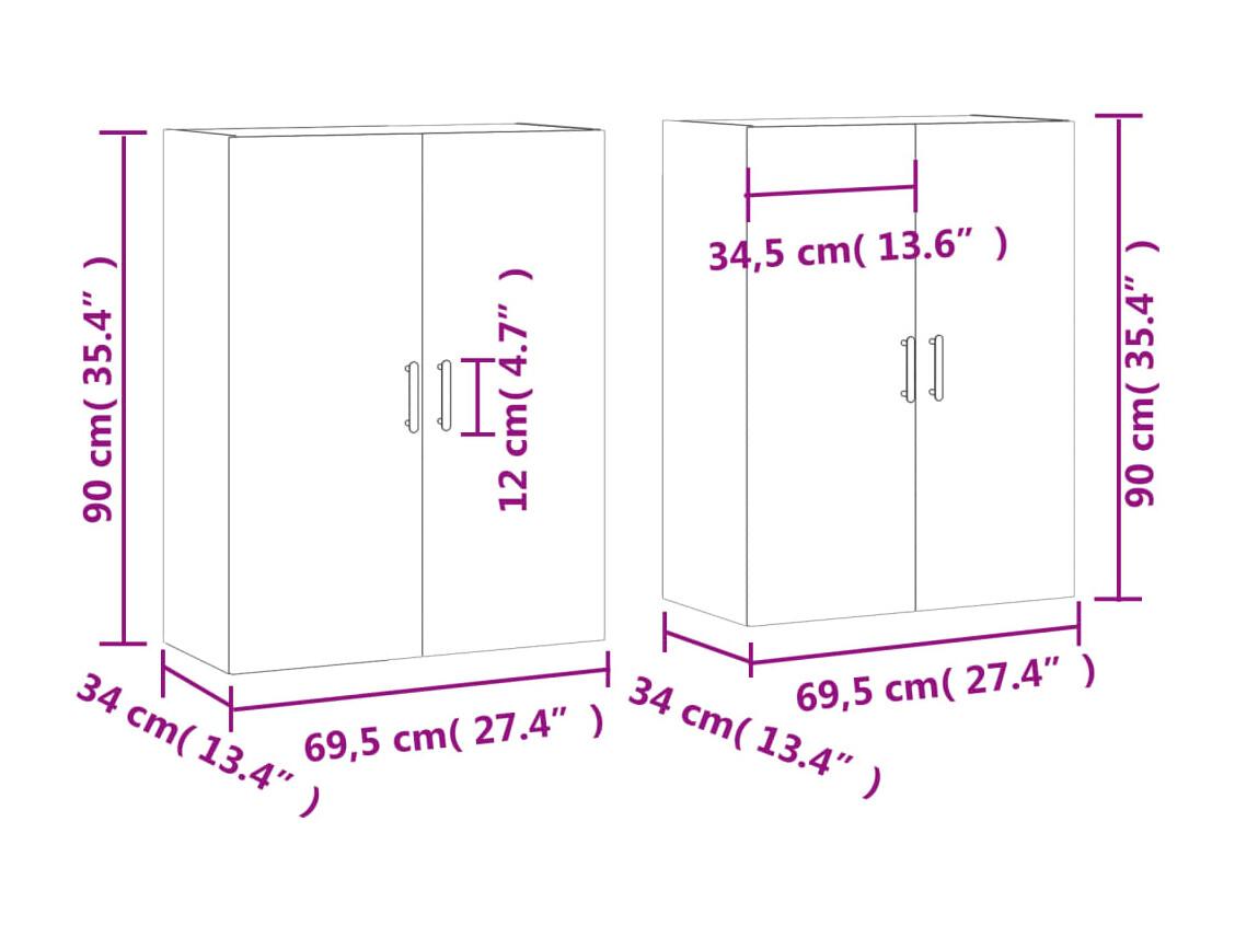 Hangkasten 2 st 69,5x34x90 cm grijs sonoma eikenkleurig