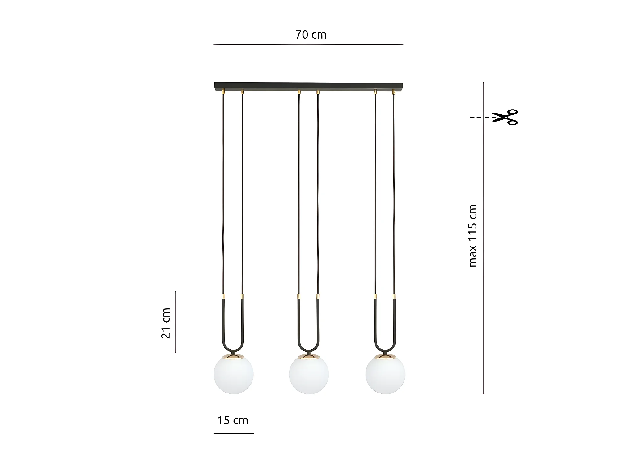 Hanglamp Megan met gouden details en 3 glazen bollen 3xE14