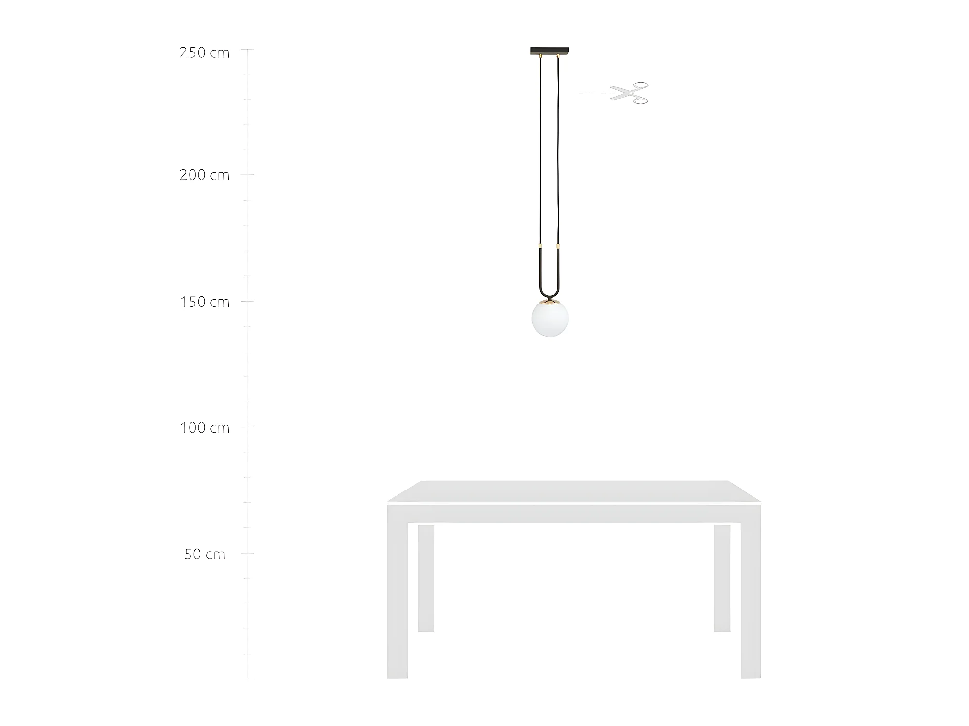 Signo hanglamp met zwarte metalen staven en 4 glazen bollen 4xE14 ø75cm