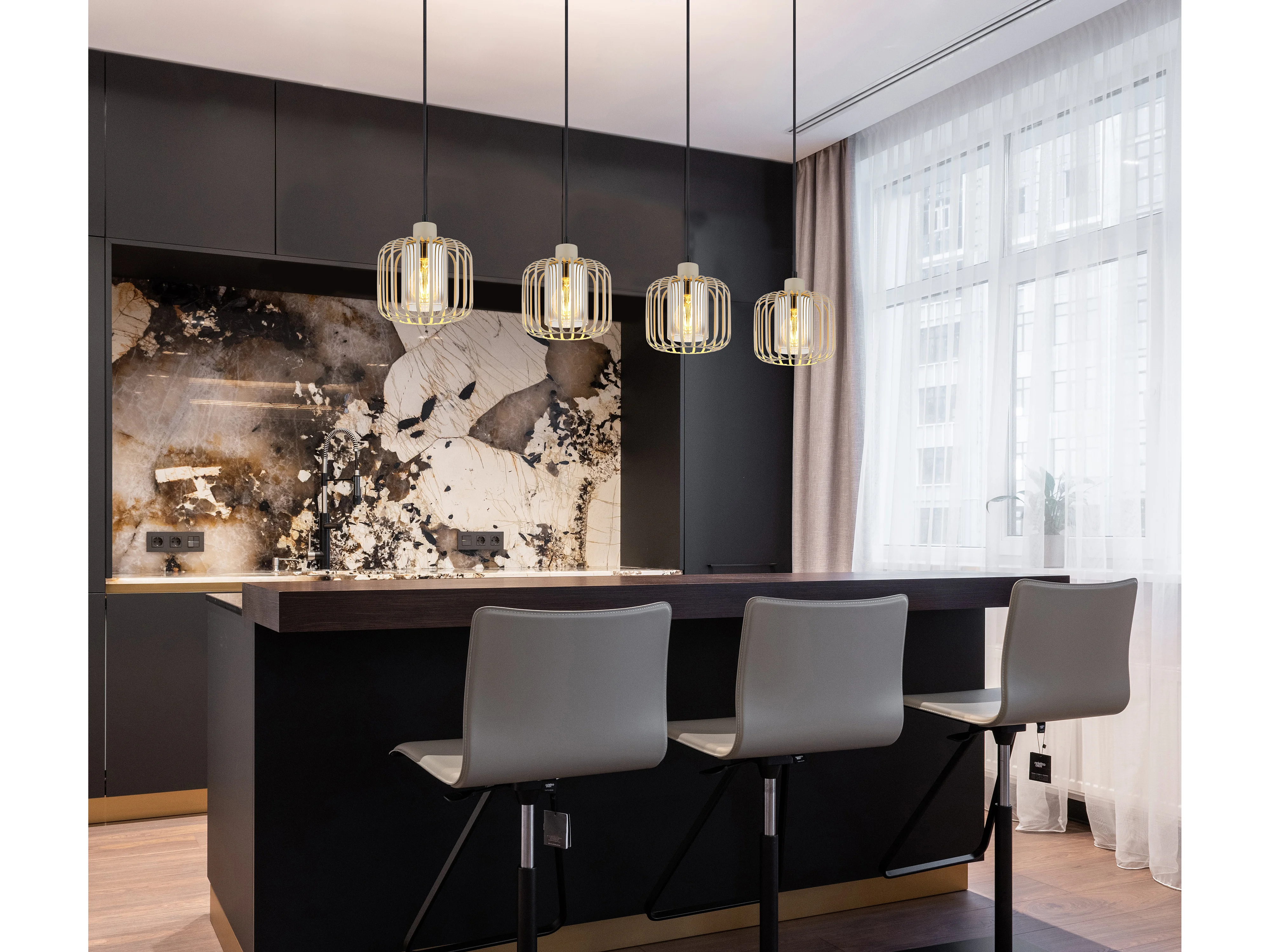 Hanglamp metaal zandkleurig dof, 4x E27
