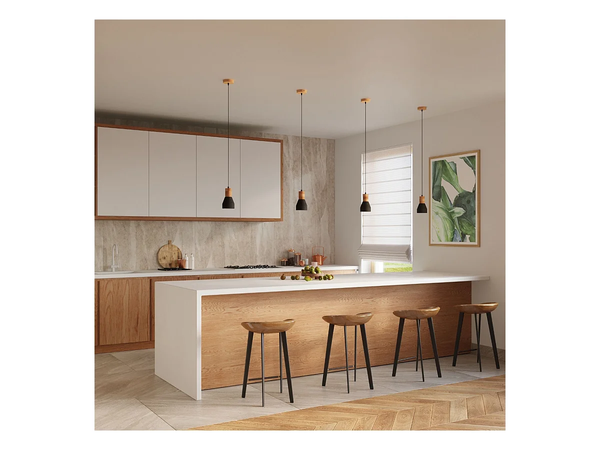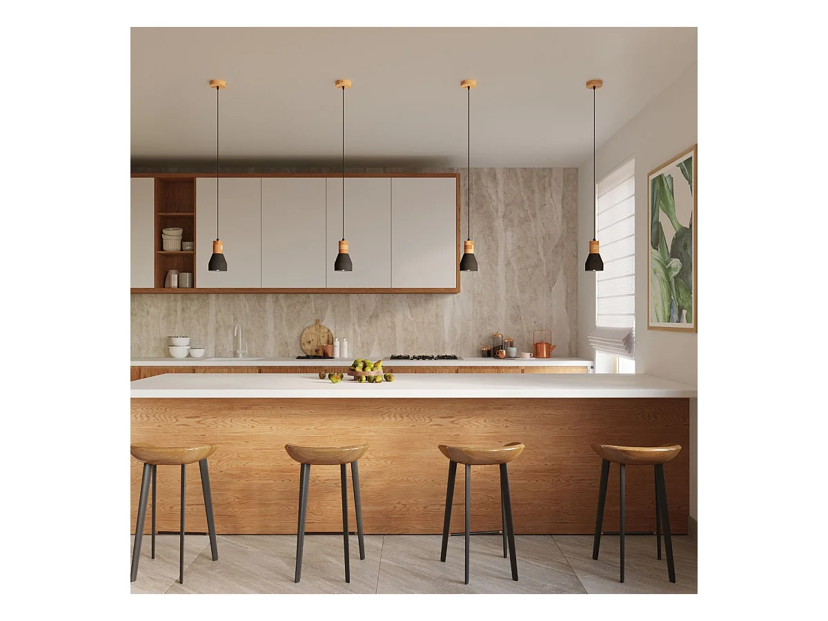 Hanglampen Polaric modern van - 1 lichtbronnen 4000K - L.10 x H.120 cm - zwart/natuurlijk hout