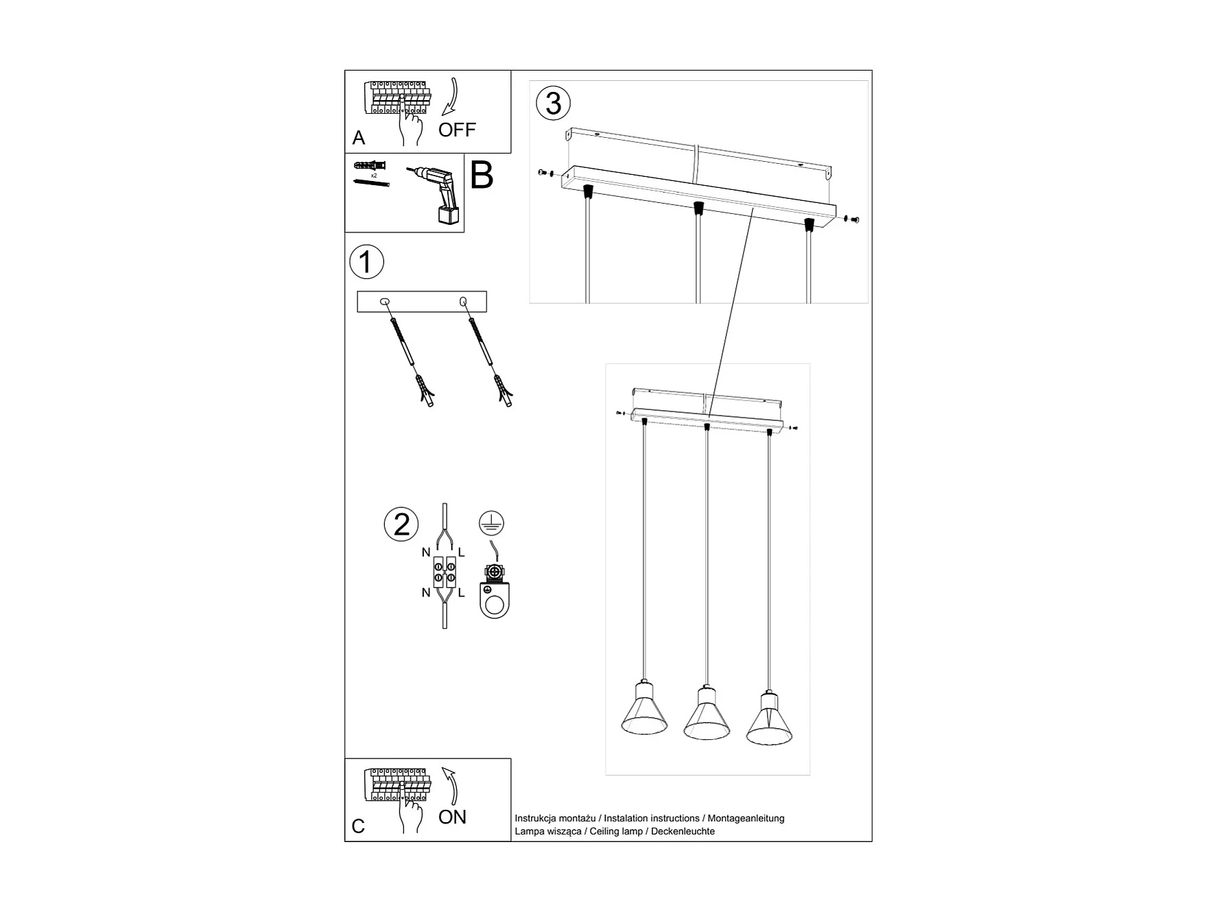 Hanglampen Zylata modern van - 3 lichtbronnen 3000K - L.45 x H.120 cm - wit