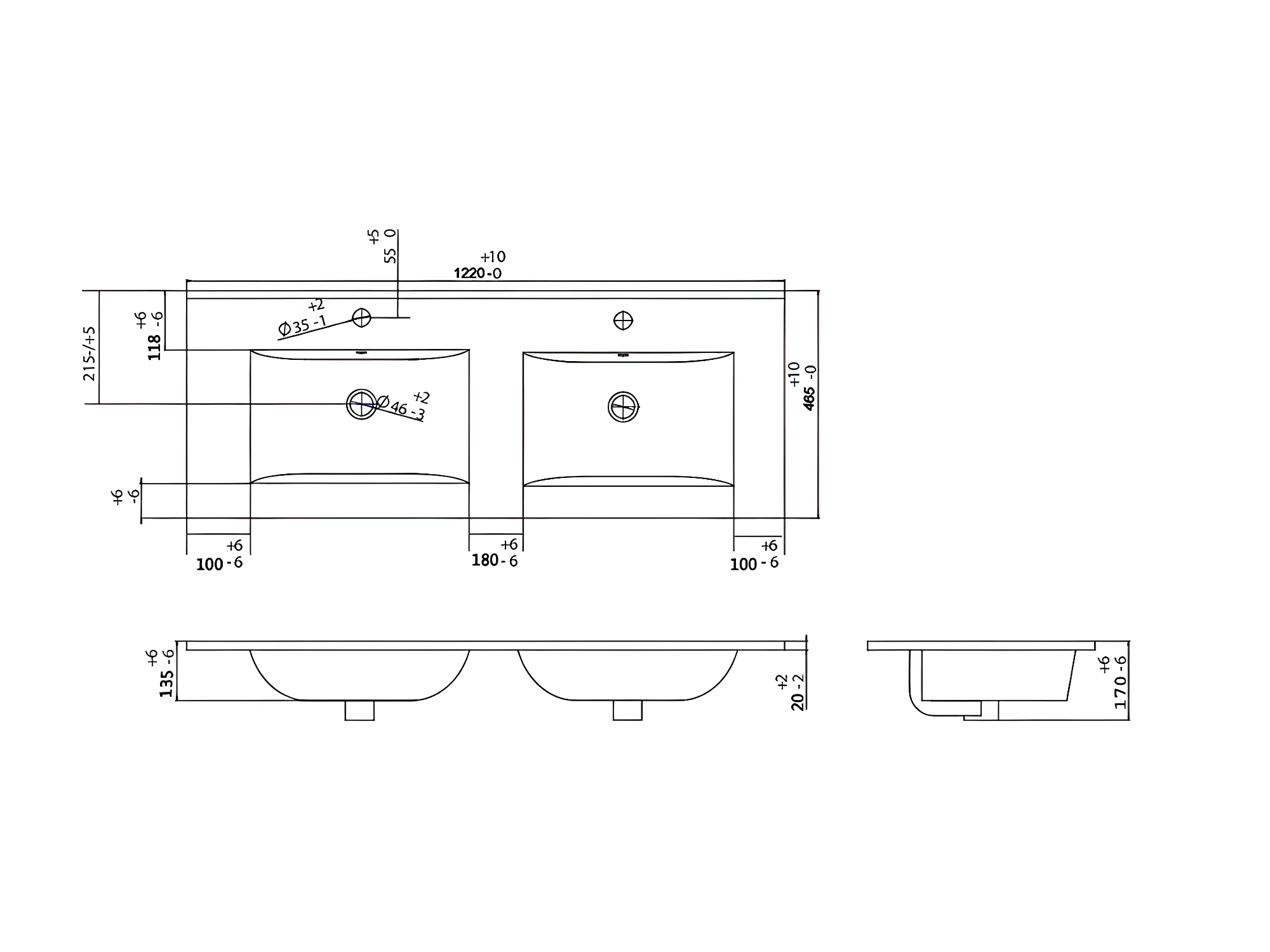 Hangmeubel voor badkamer met inbouwwastafel - Licht naturel en zwart - 120 cm - MADELA
