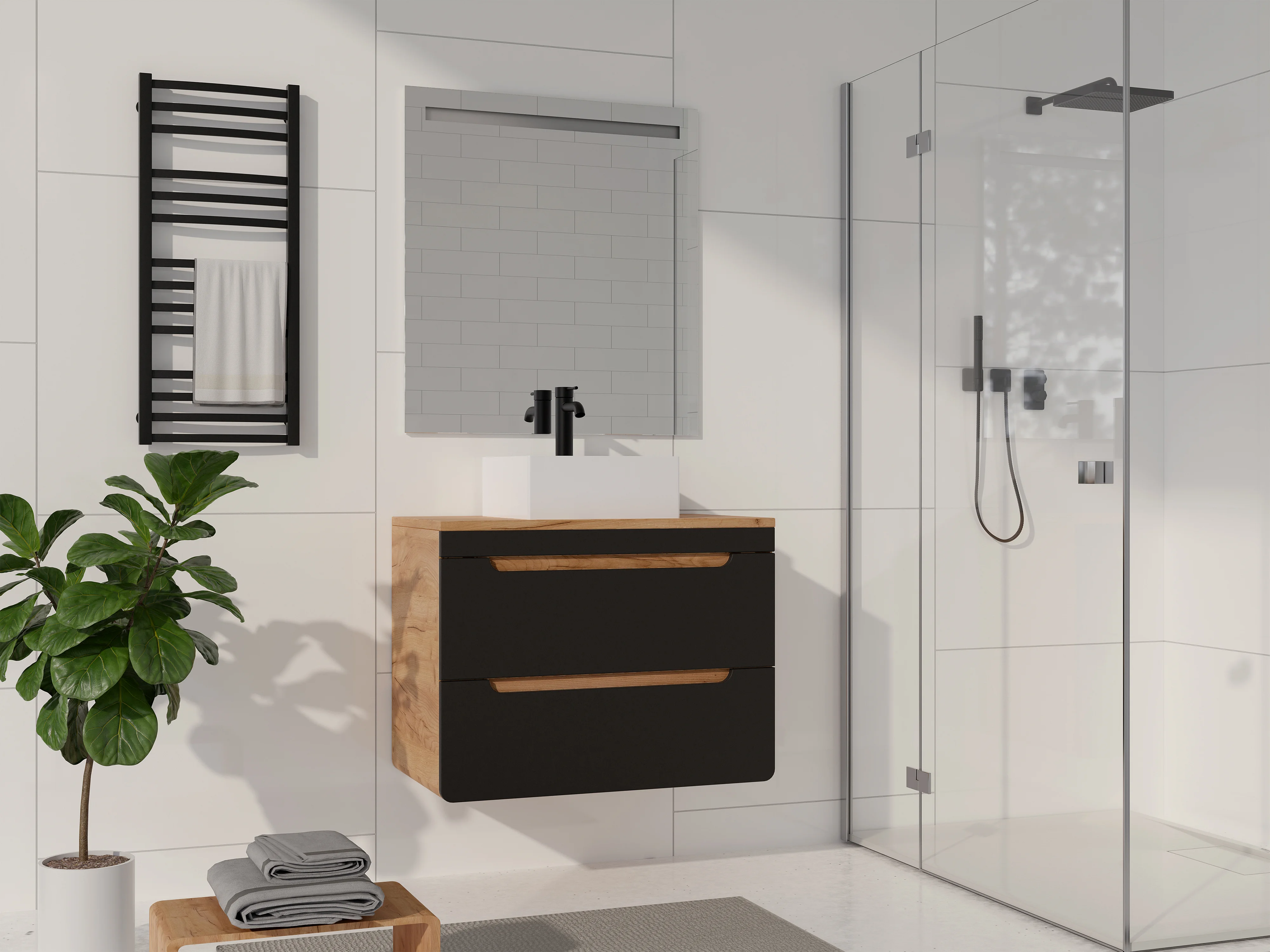 Hangmeubel voor badkamer met opbouwwastafel - 80 cm - Licht naturel en antraciet - ARUBA