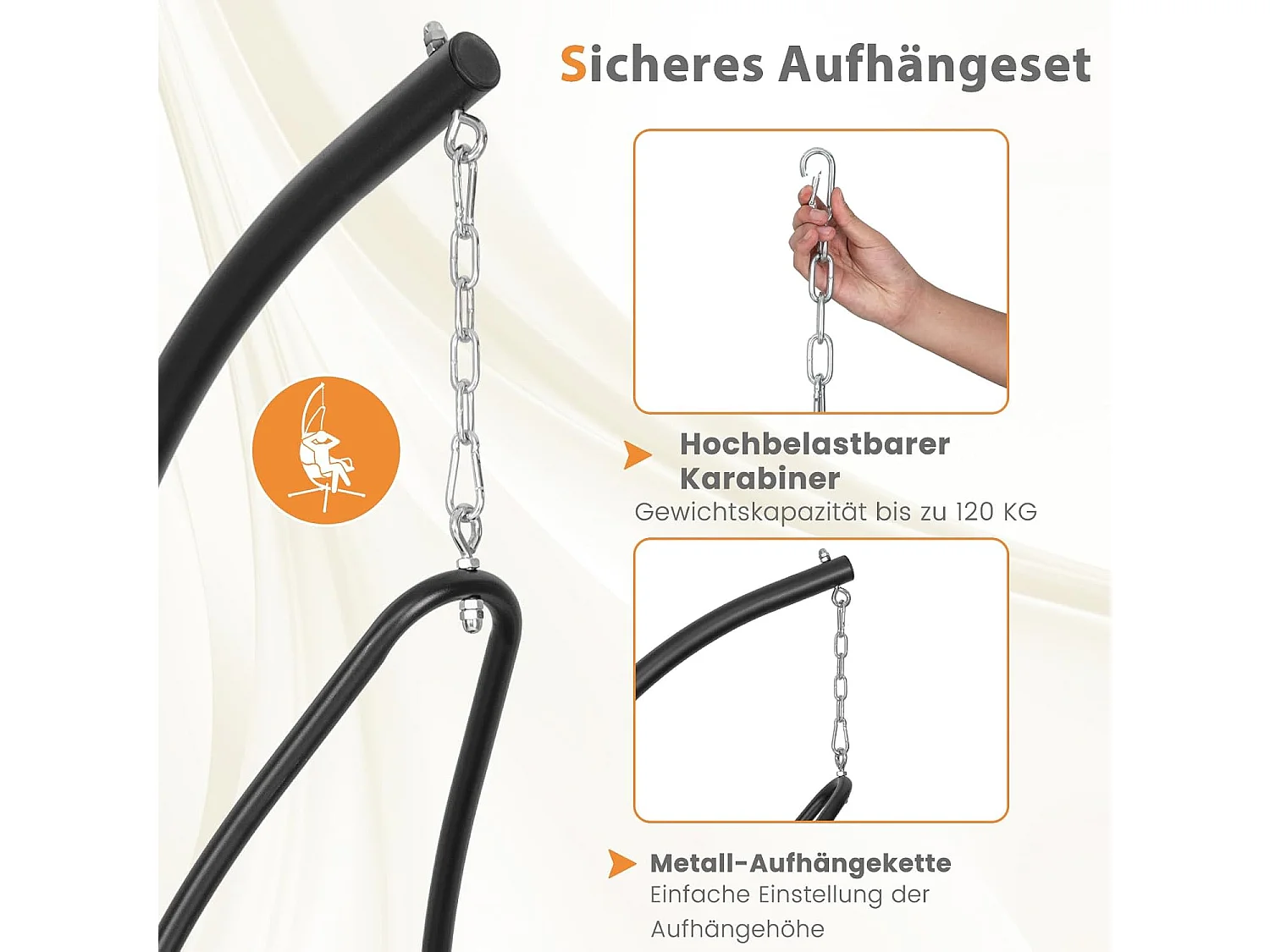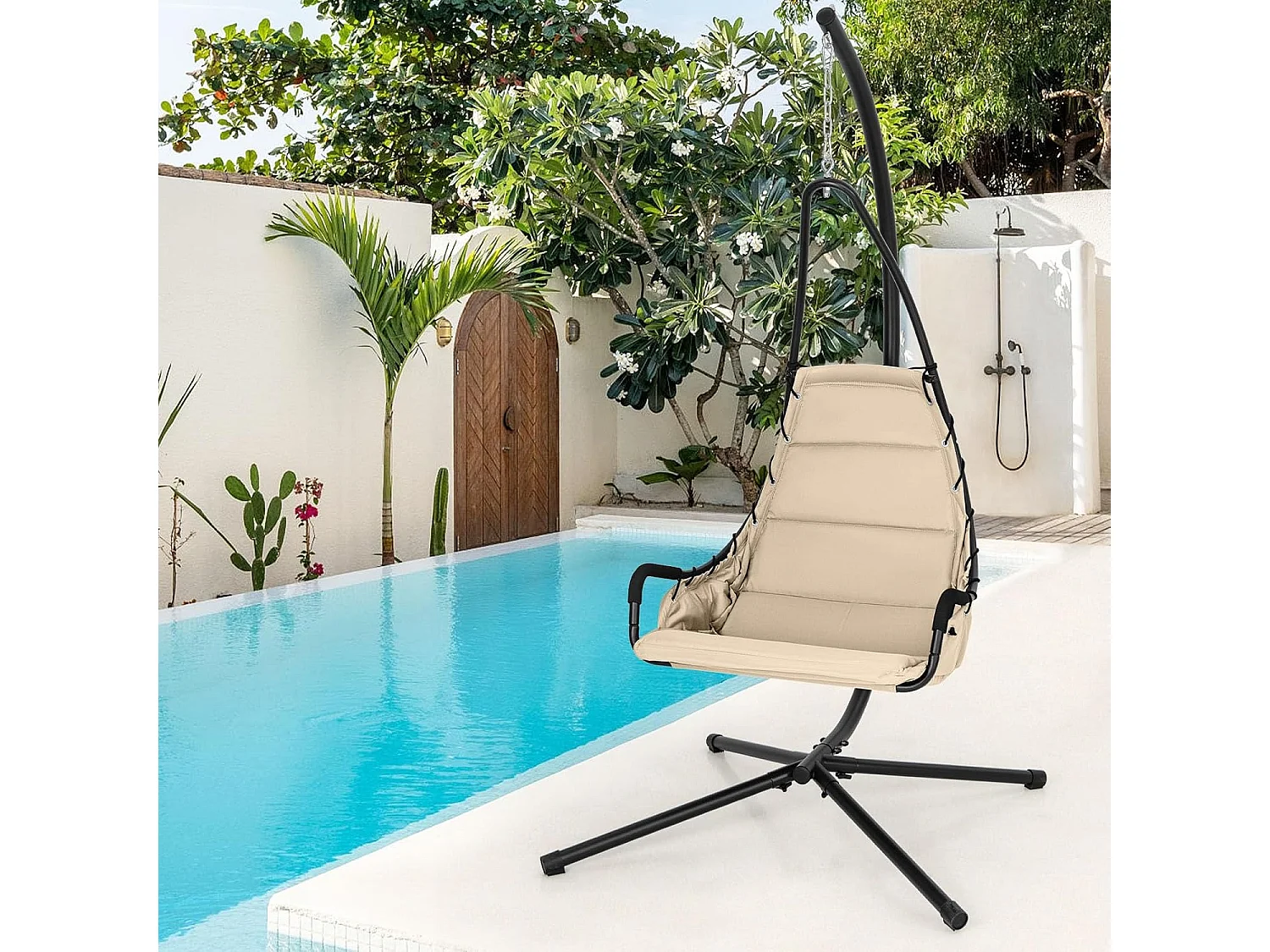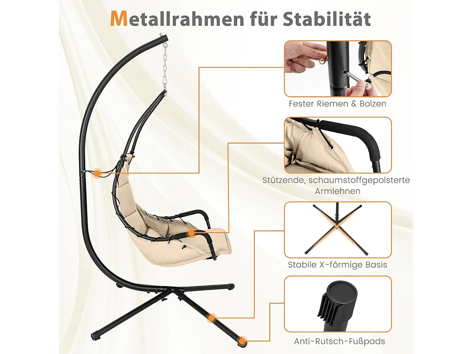 Hangstoel met frame, hangstoel met extra grote gevoerde zitting, hangschommel, voor binnen en buiten (beige)ZB33548