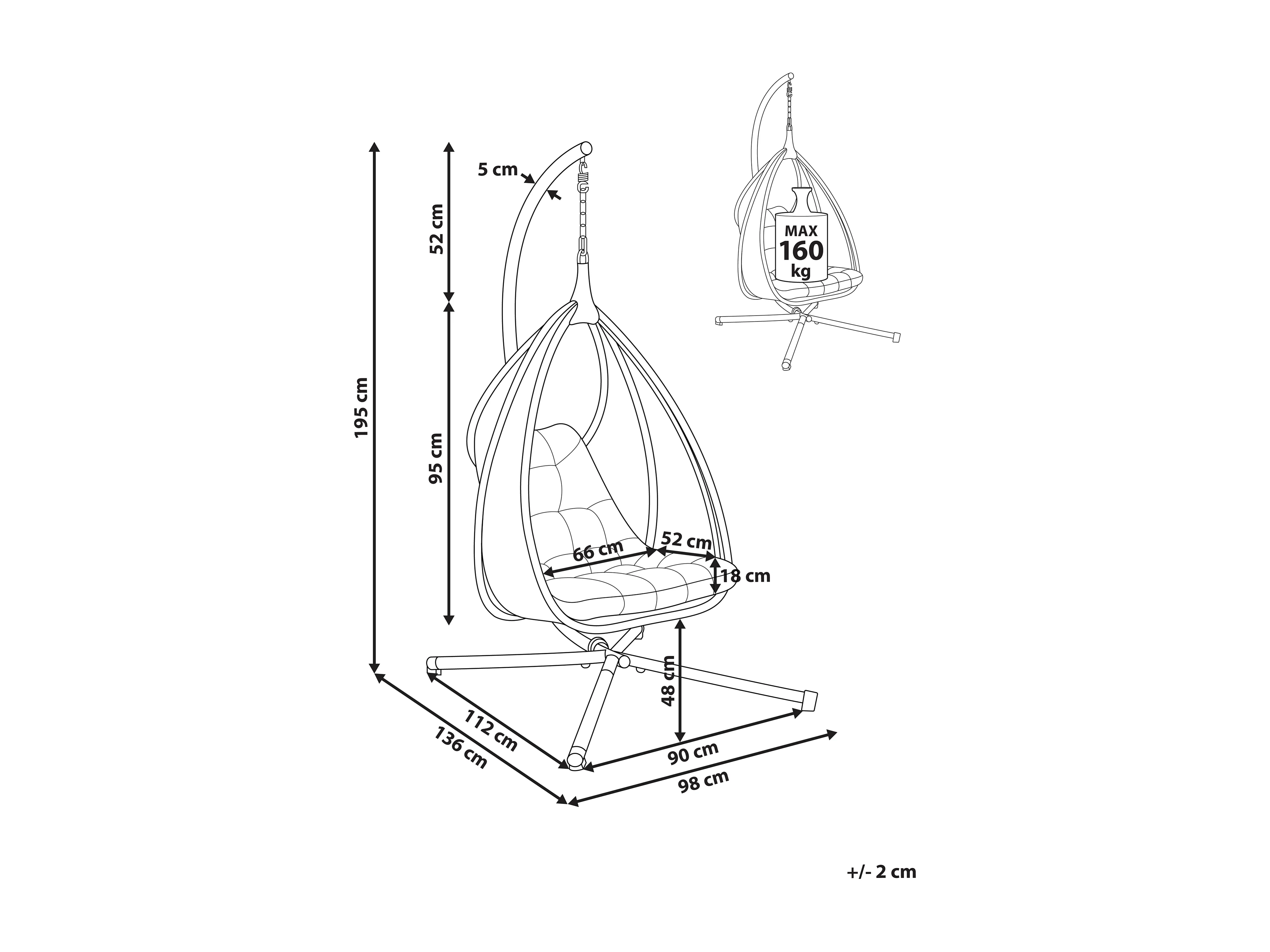 Hangstoel met standaard AVEGNO Stof Donkergrijs