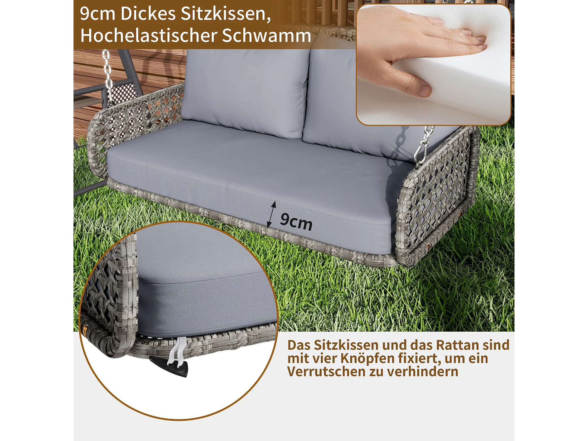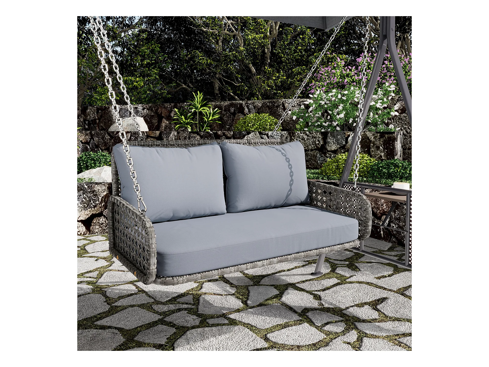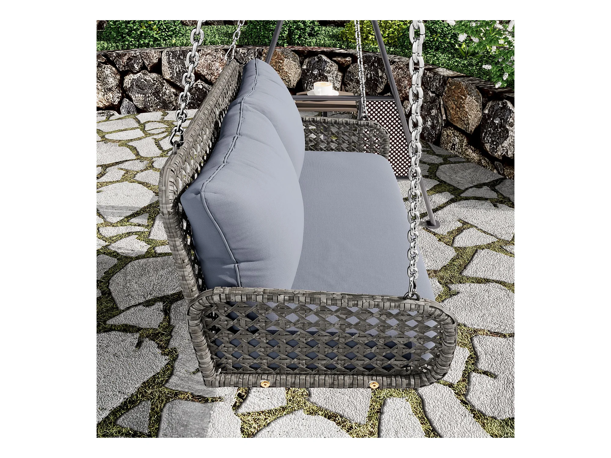 Hangstoel van 240 cm in PE rotan - 2 plaatsen - Inclusief kussens - Grijs