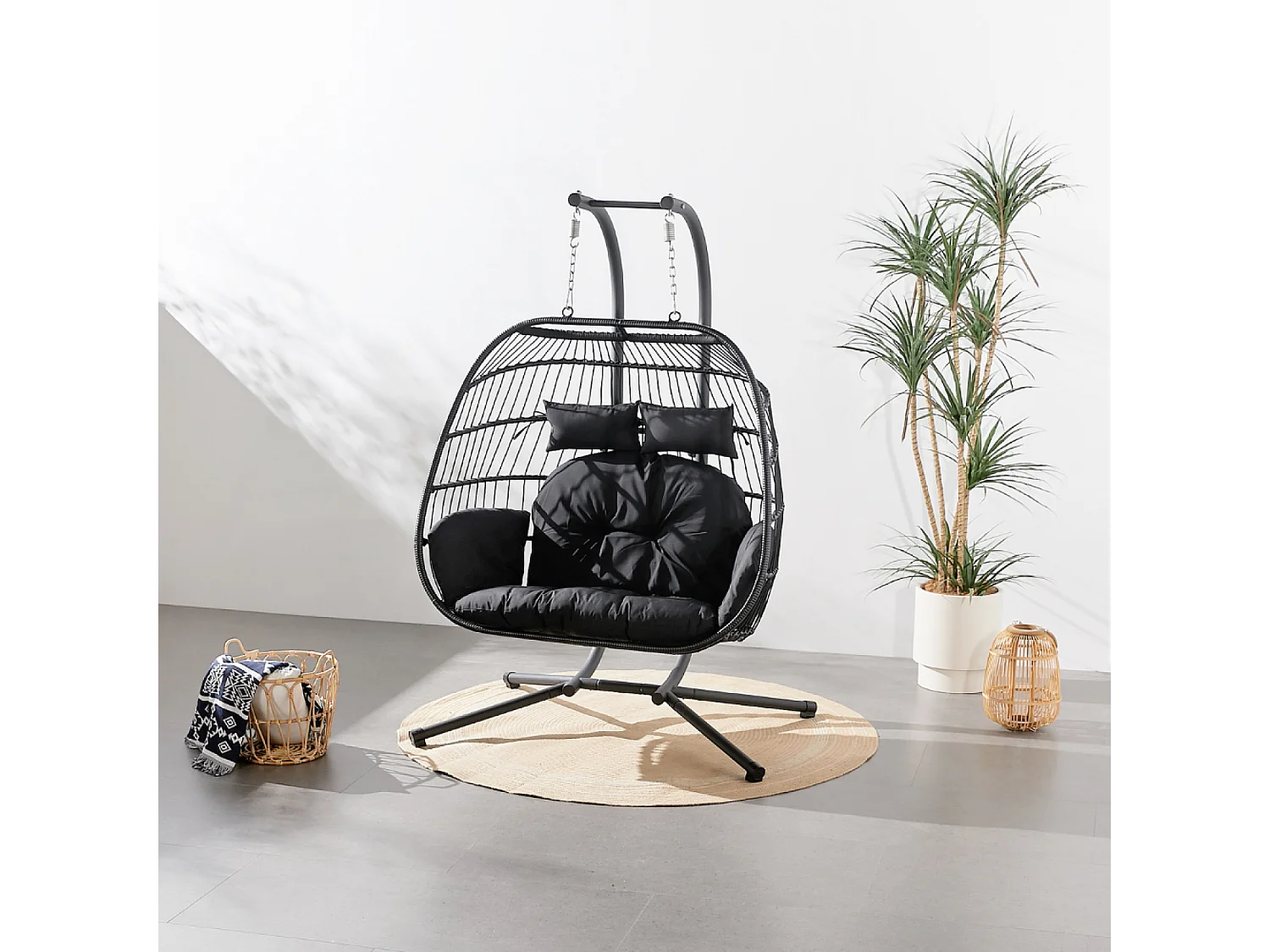 Hangstoel voor 2 personen zwart FARO met stalen frame