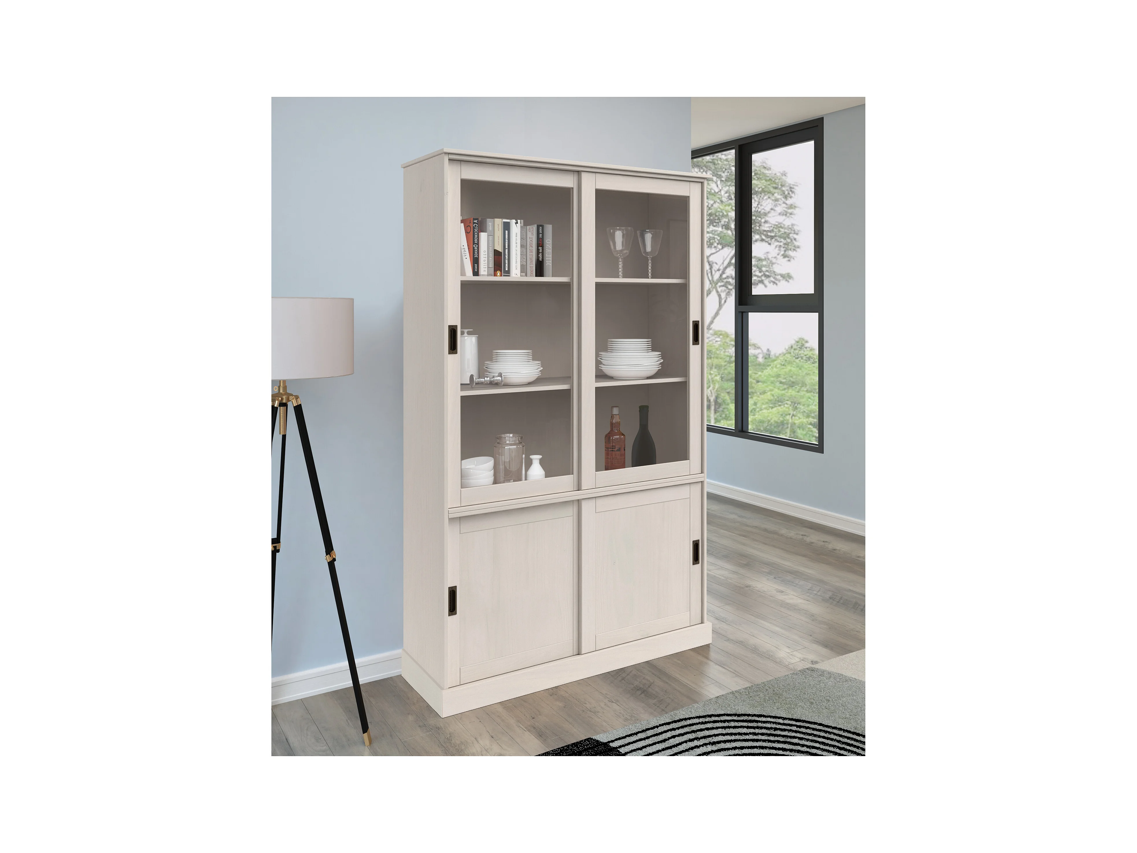 Harry | Vitrine met 2 houten deuren en 2 glazen deuren in grenen wit