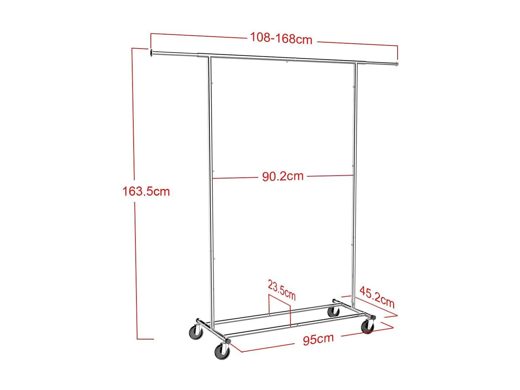 Heavy Duty Verrijdbaar Kledingrek Op Wielen - Stevig Mobiel Verstelbaar Kleren Rek Garderoberek'