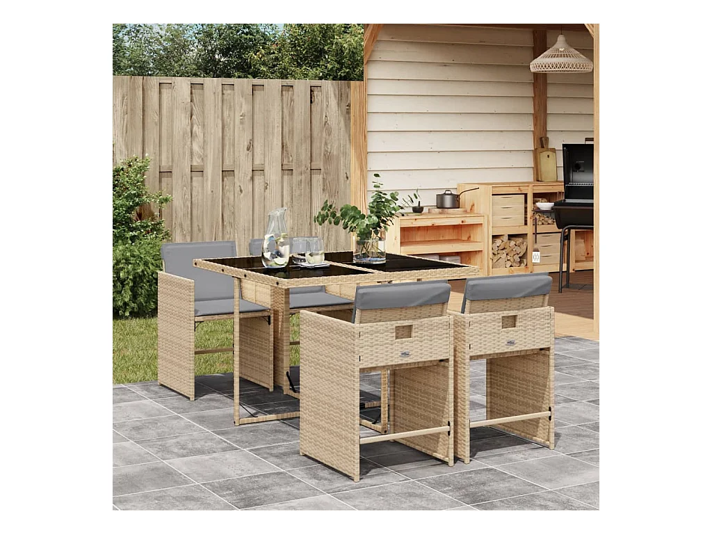 Sharif 5-delige Tuinset met kussens poly rattan beige