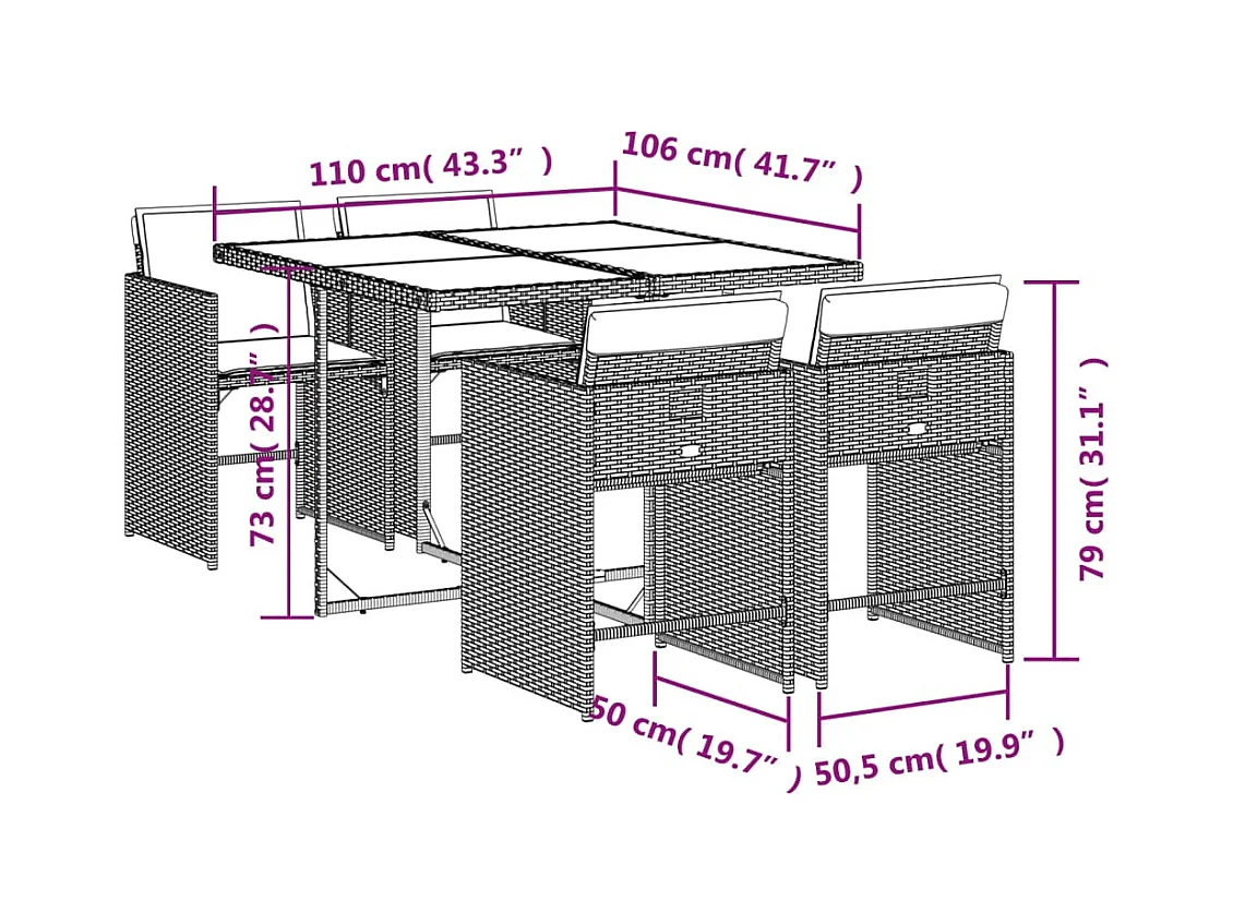 Zele 5-delige Tuinset met kussens poly rattan beige