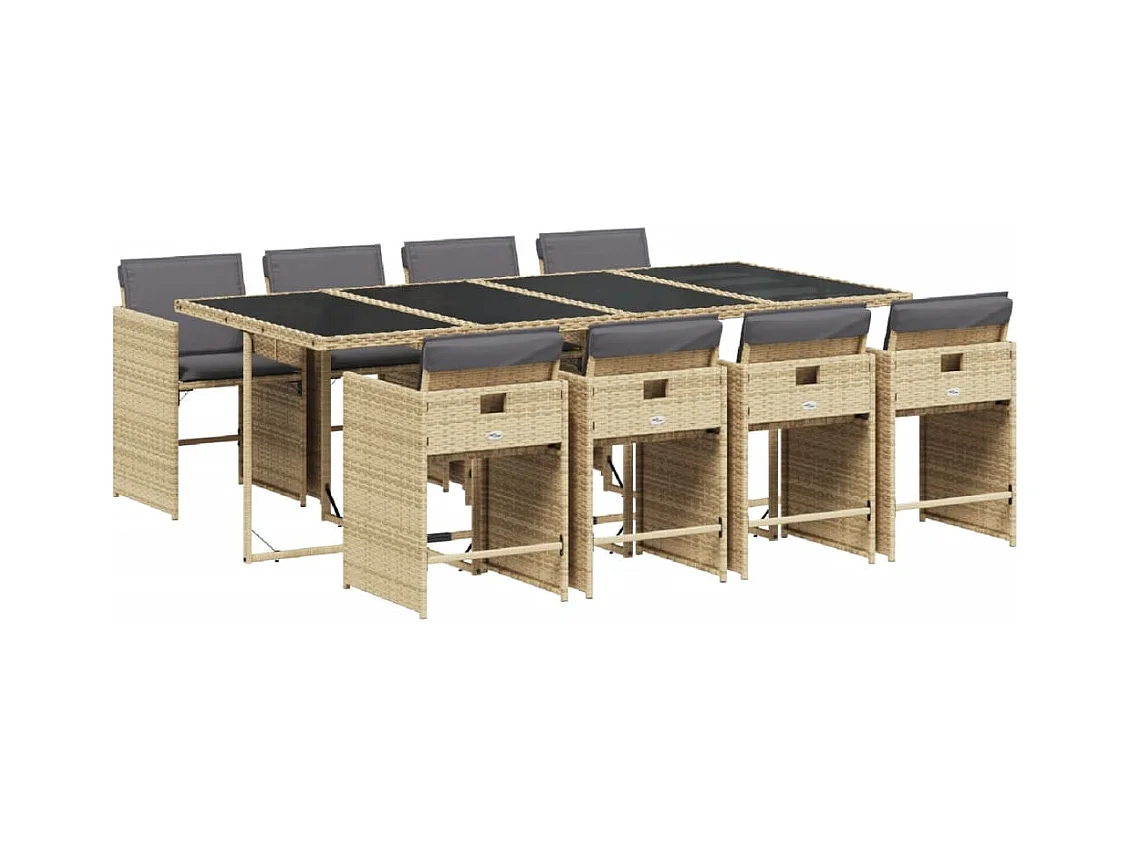 Arlon 9-delige Tuinset met kussens poly rattan gemengd beige