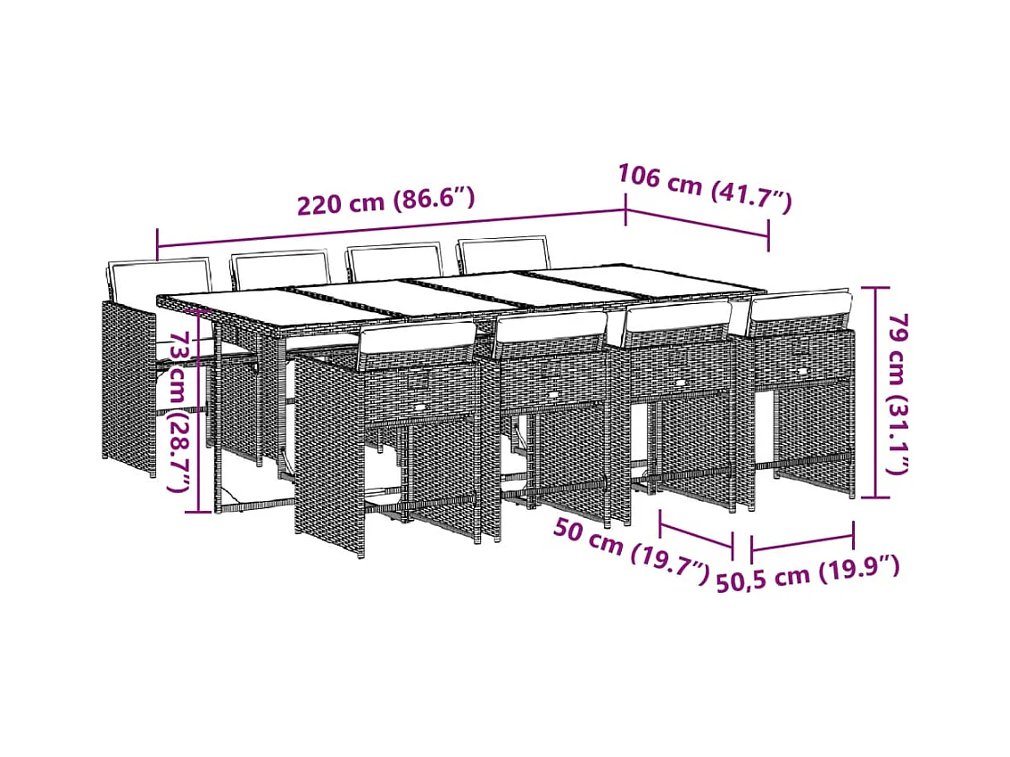 Zenn 13-delige Tuinset met kussens poly rattan gemengd beige