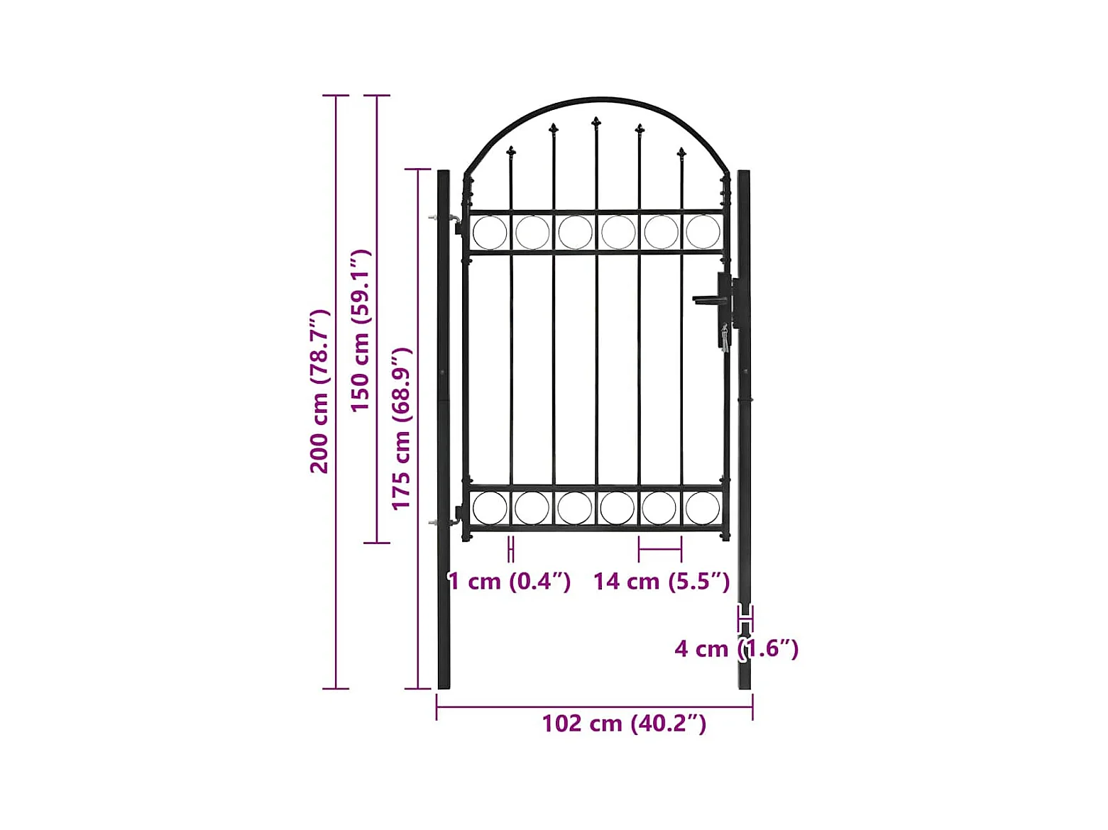 Hekpoort met gebogen bovenkant van staal 104 x 150 cm Zwart