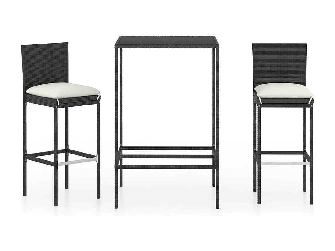 Mary 3-delige Tuinbarset met kussens poly rattan zwart