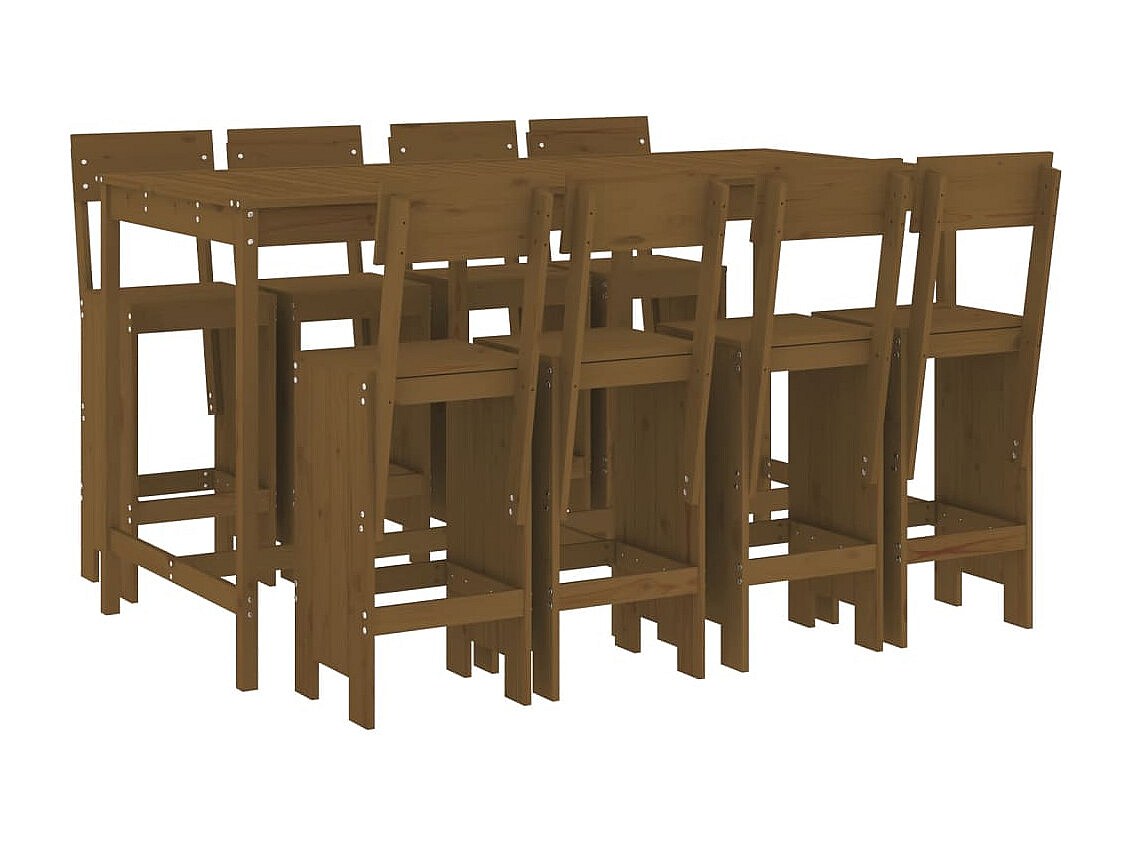 Henri-Gabriel 9-delige Tuinbarset massief grenenhout honingbruin