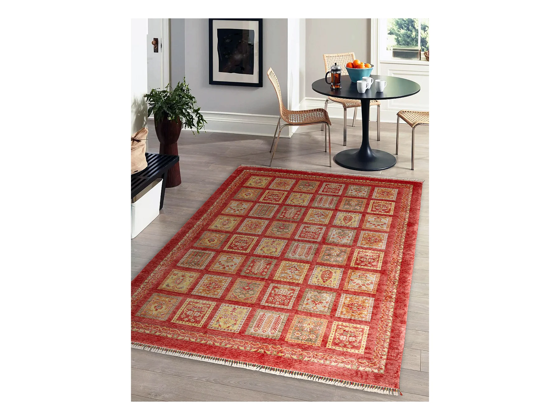 HERIZ A0985A tapijt Oriental, frame bordeauxrood - bamboe garen, exclu 200x290 cm