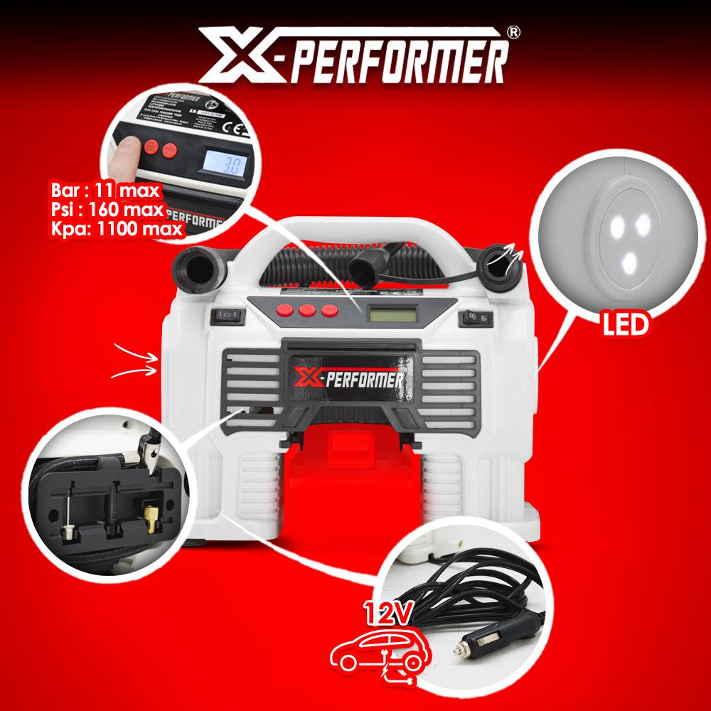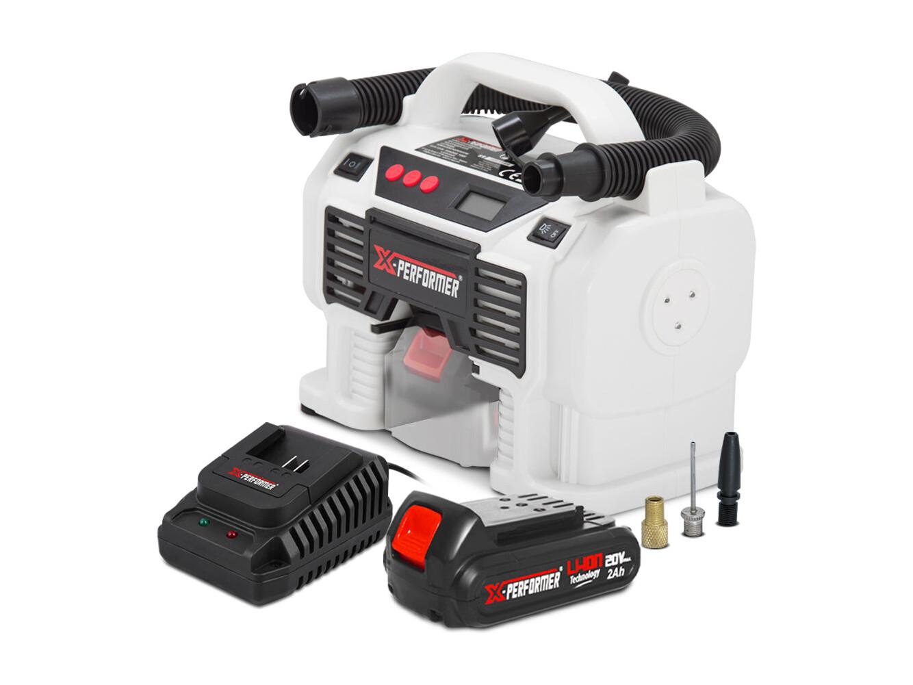 Herlaadbare compressor X-Performer 20V, 11 bar met digitaal scherm, LED, 2Ah batterij en snellader