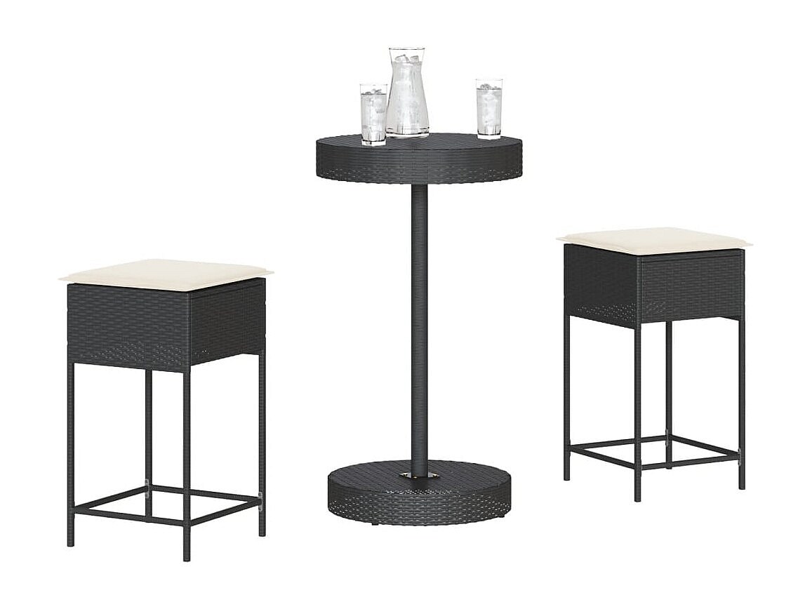 Ildir 3-delige Tuinbarset met kussens poly rattan zwart