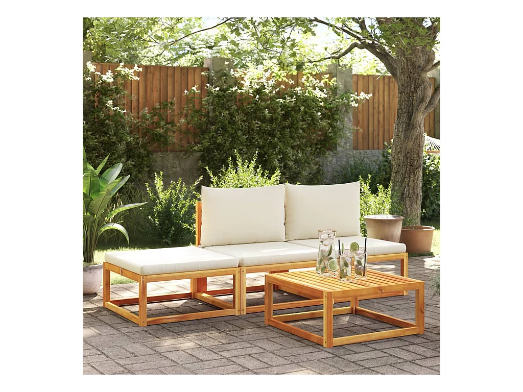3-delige Loungeset met crèmekleurige kussens massief acaciahout