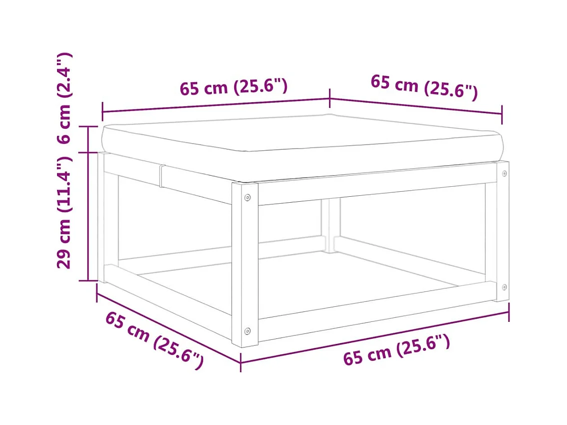 Tibor Tuinvoetenbank met kussen massief grenenhout