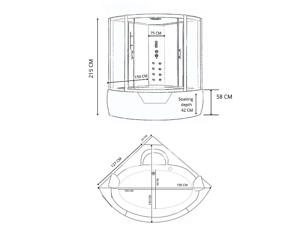 Hoek hydromassage bad-douche 150 x 150 cm – Aphrodite