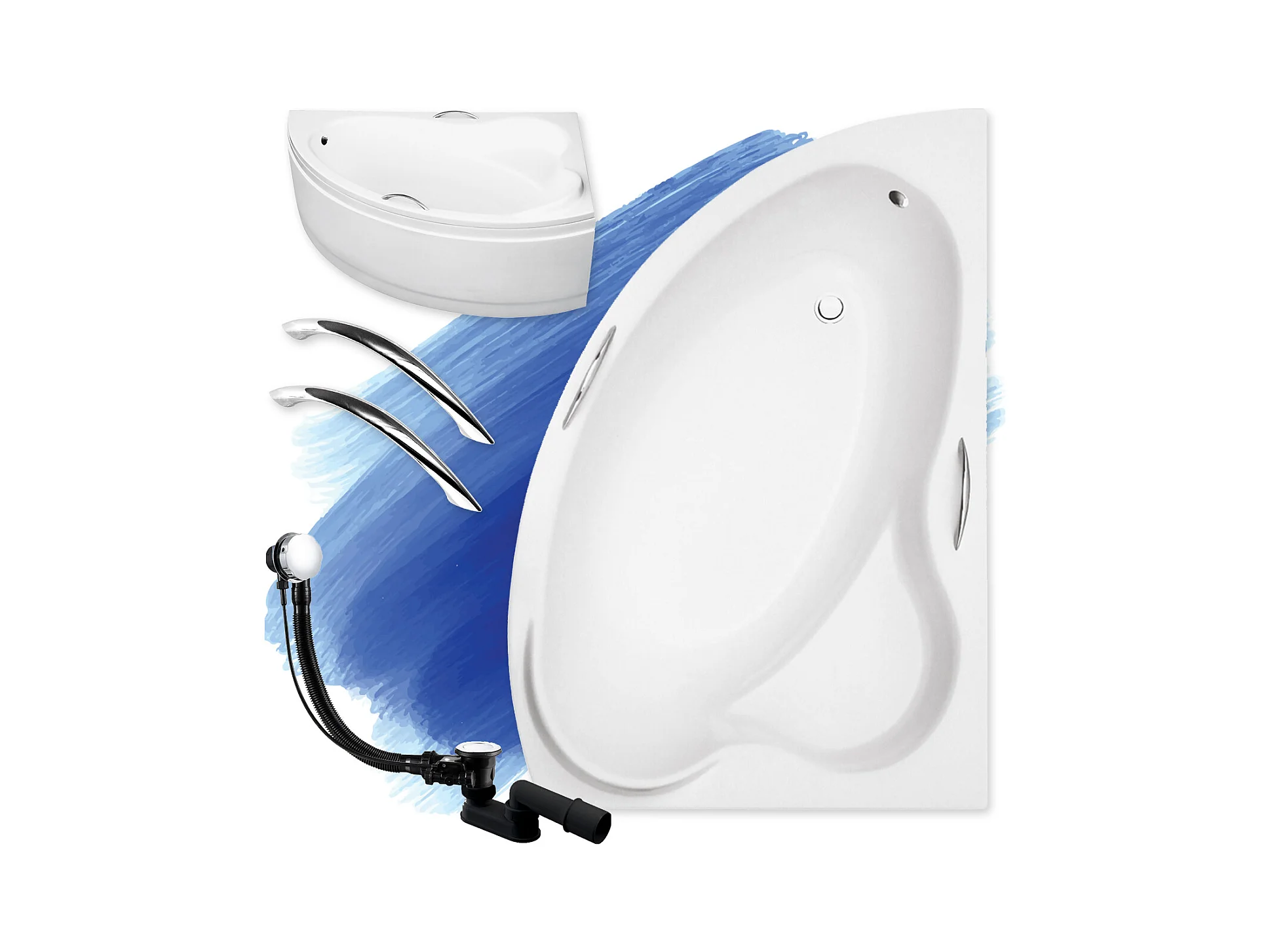 Hoekbad ADA 160x100 rechts met acrylschort en handgrepen | Afvoer & voeten GRATIS!
