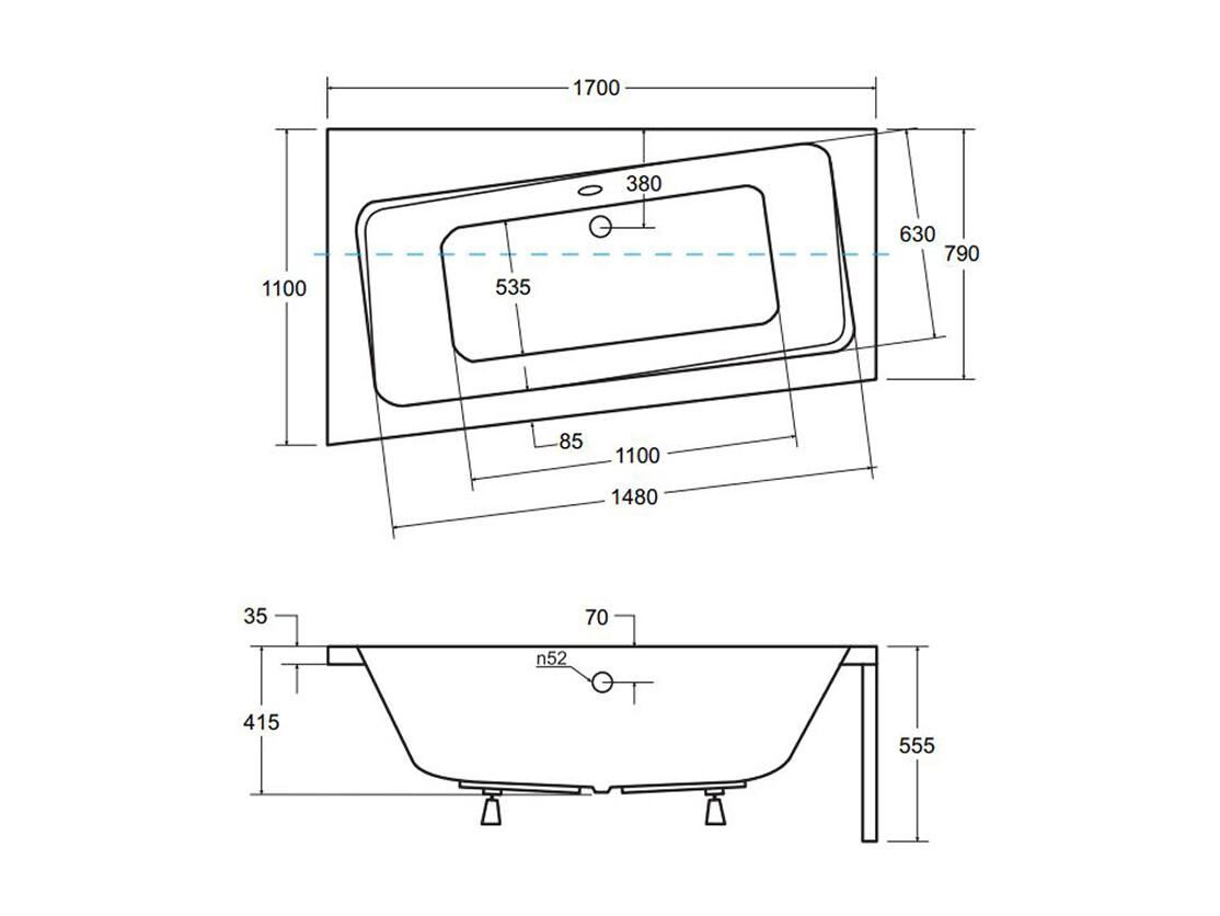 Hoekbadkuip INFINITY 170x110 rechts | Afvoer & poten GRATIS!