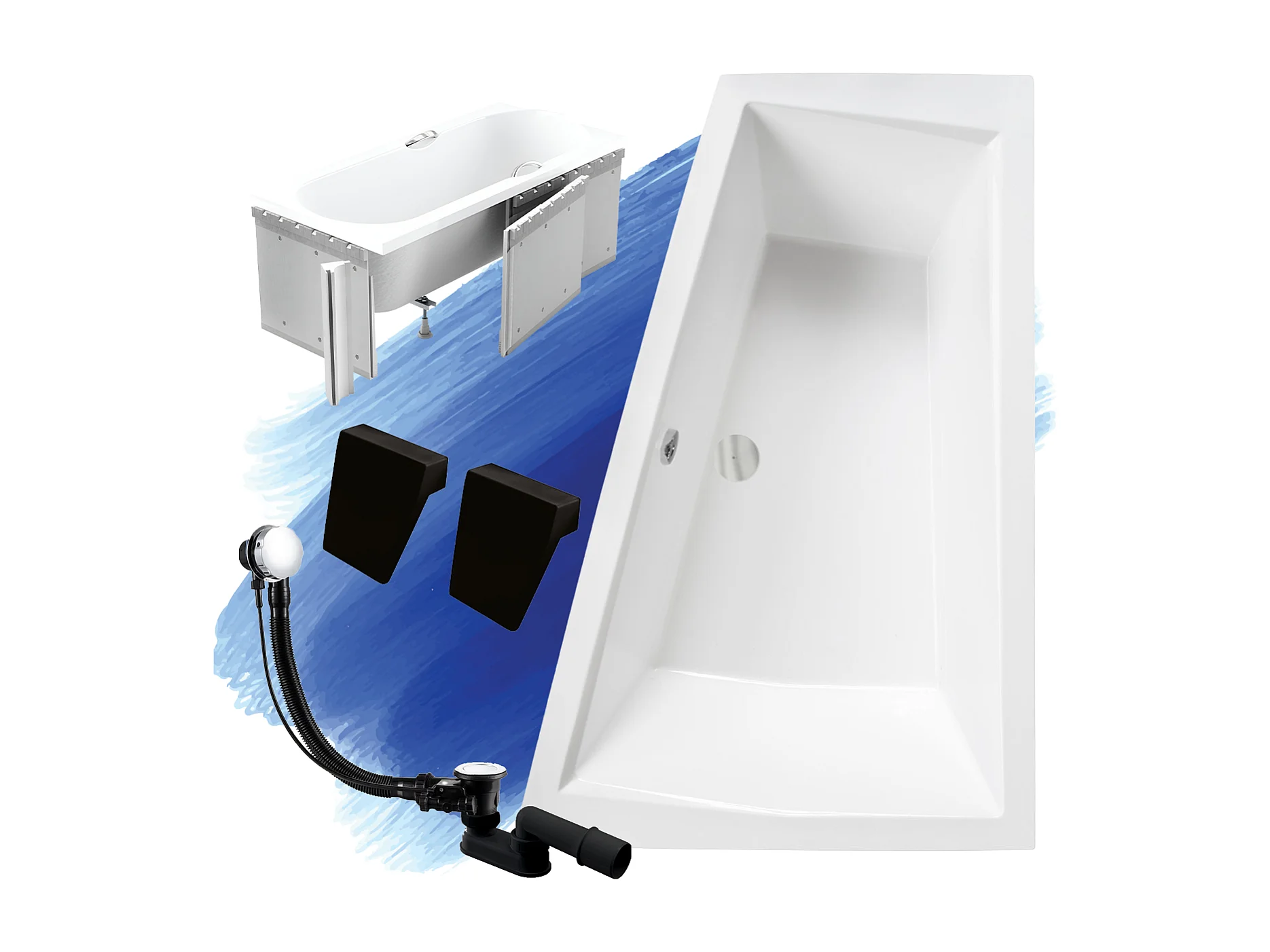 Hoekbad INTIMA 180x125 rechts met piepschuim bekleding en 2x hoofdsteunen | Afvoer & voeten GRATIS!