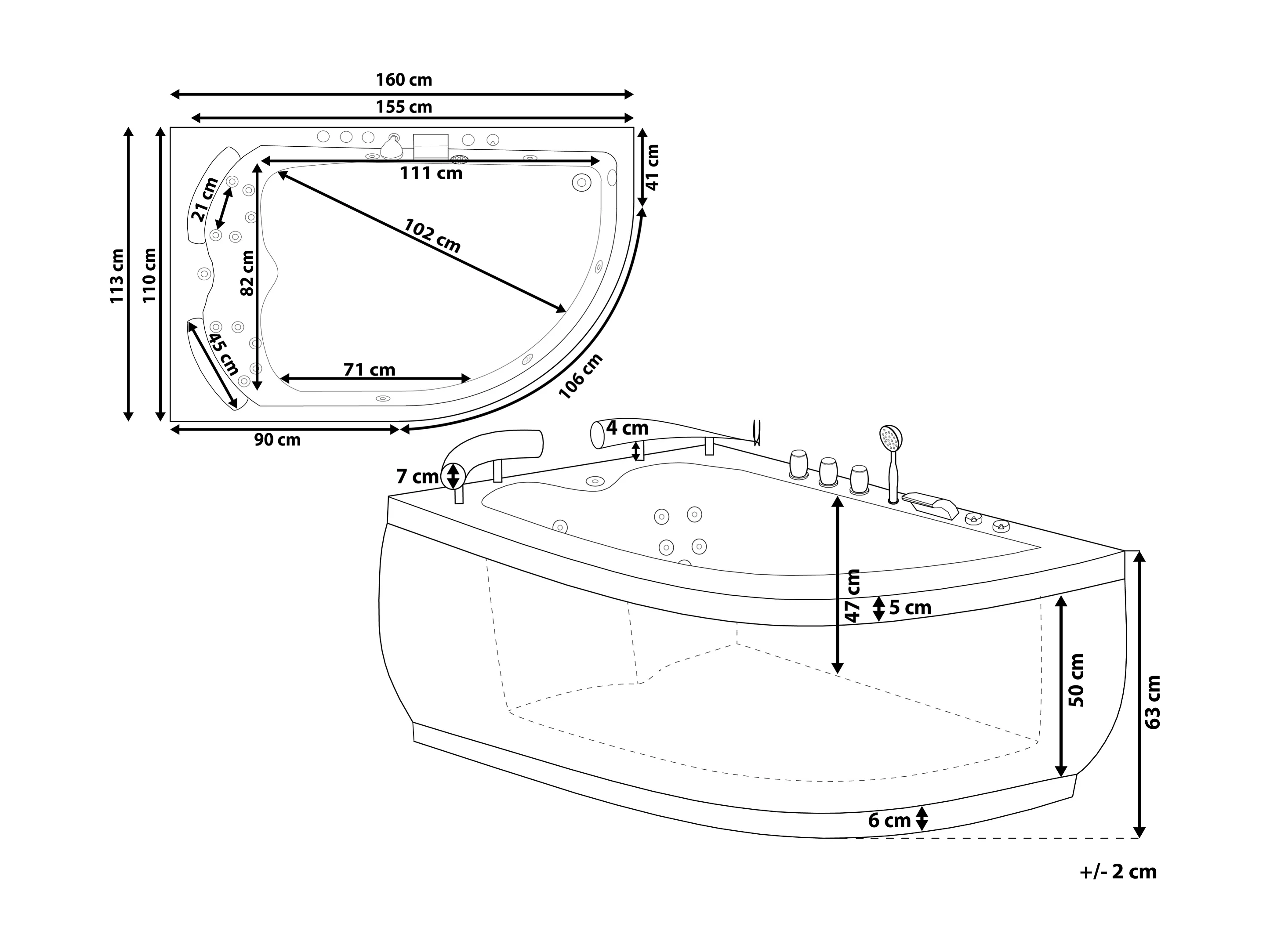 Hoek bubbelbad met LED PARADISO Rechterzijde 158 x 113 cm Wit