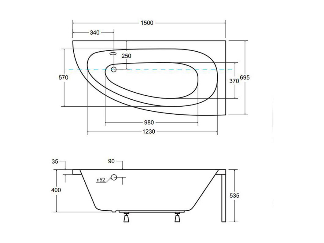 Hoekbad NATALIA PREMIUM 150x100 rechts | Afvoer & poten GRATIS!