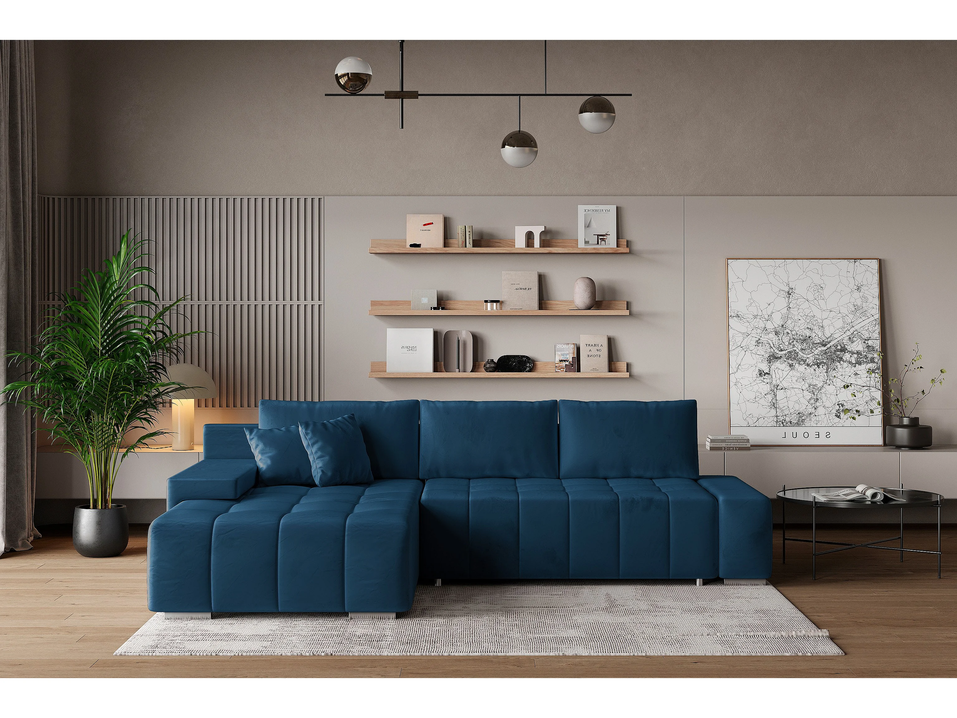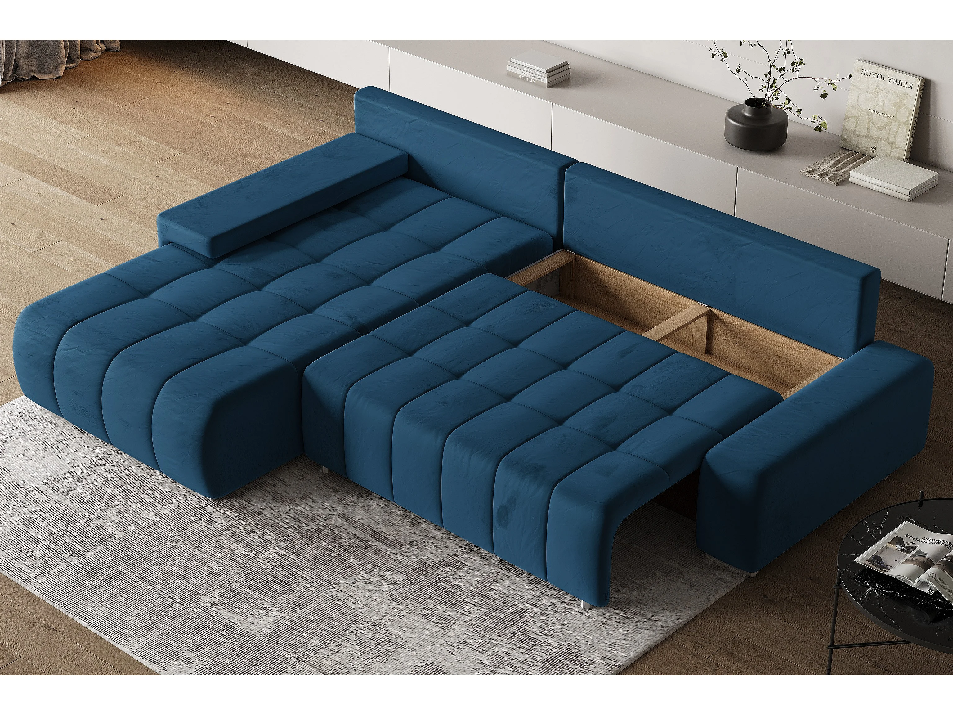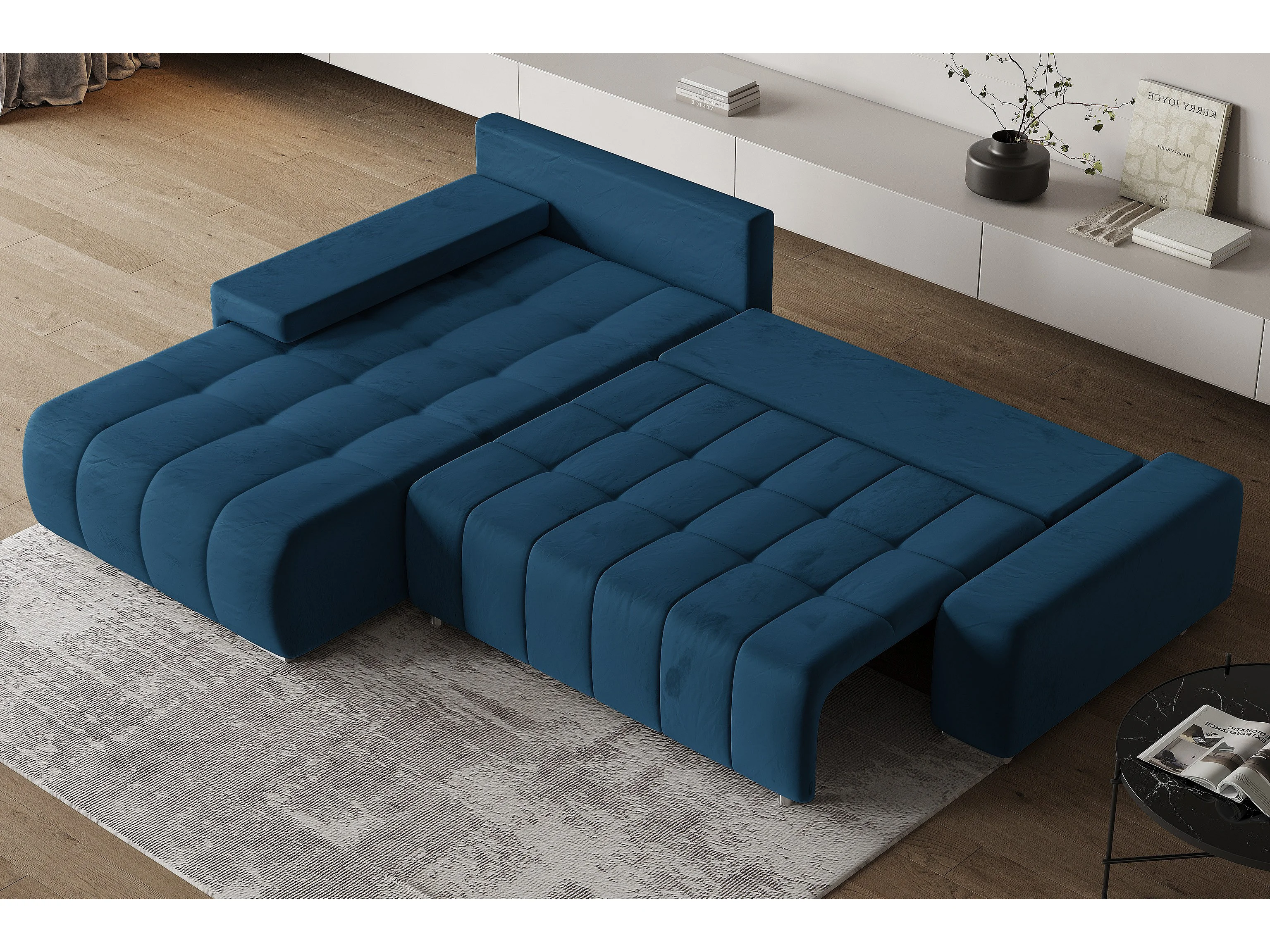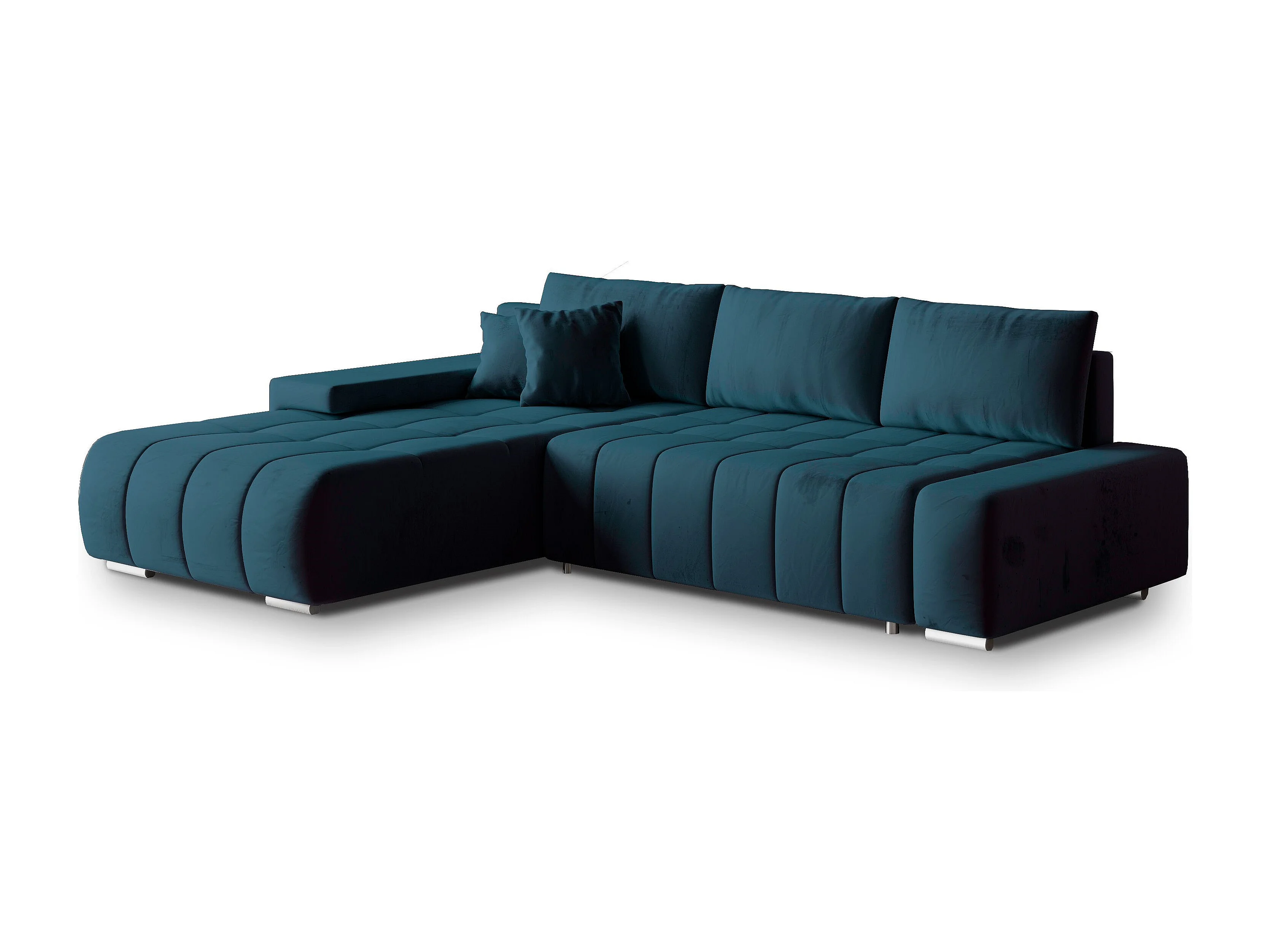 Hoekbank ALESE van fluweel met slaapfunctie Blau