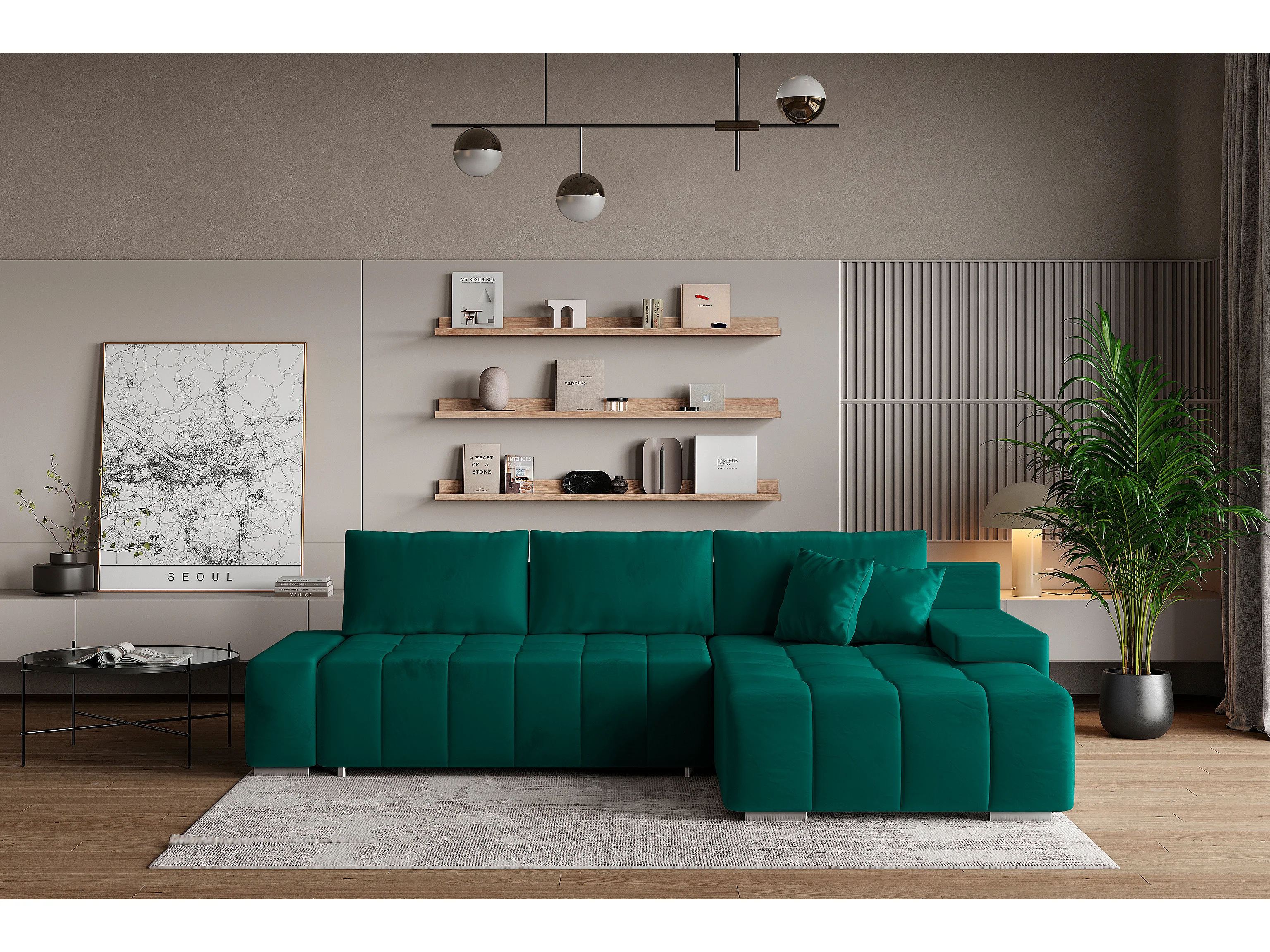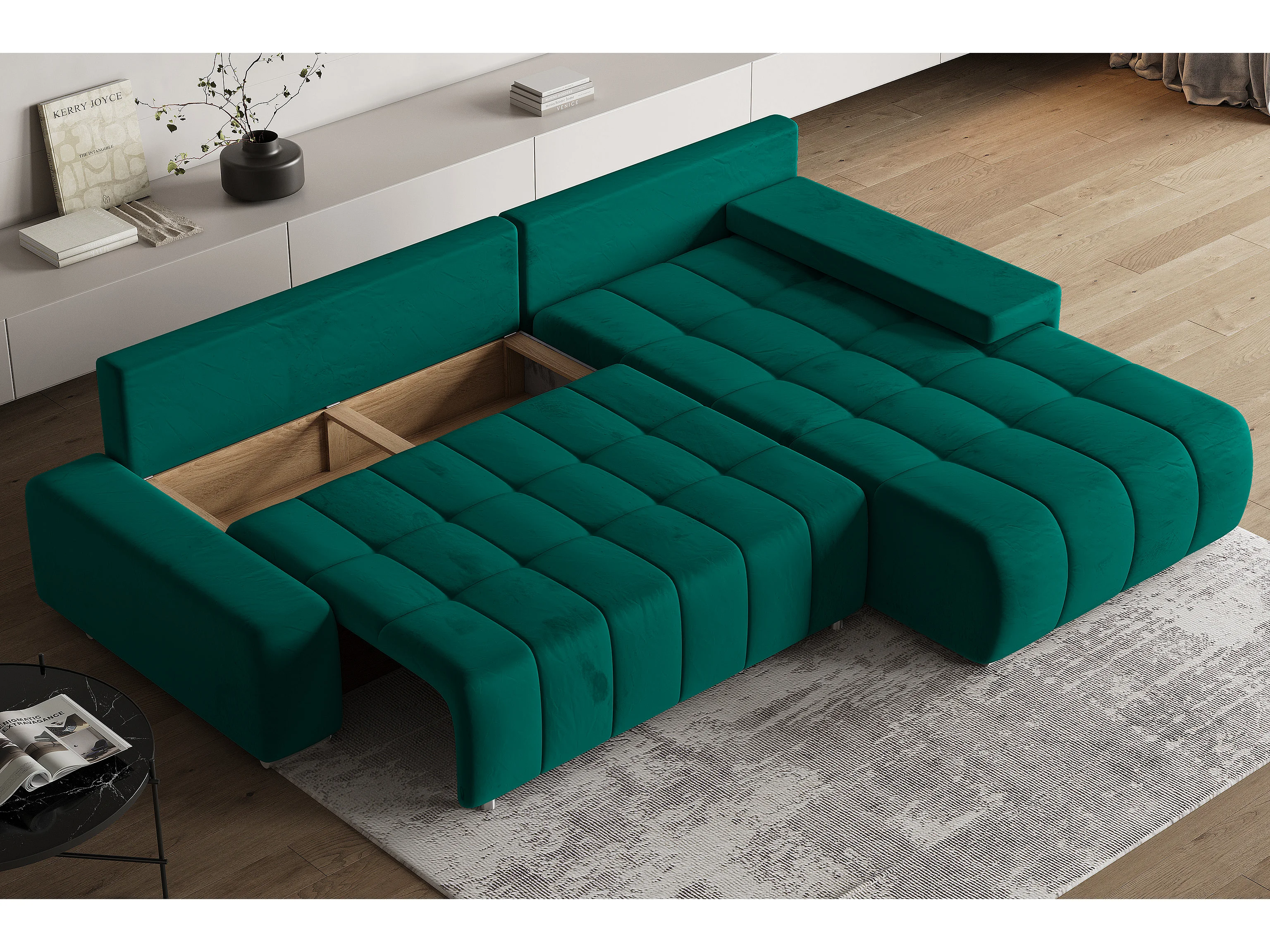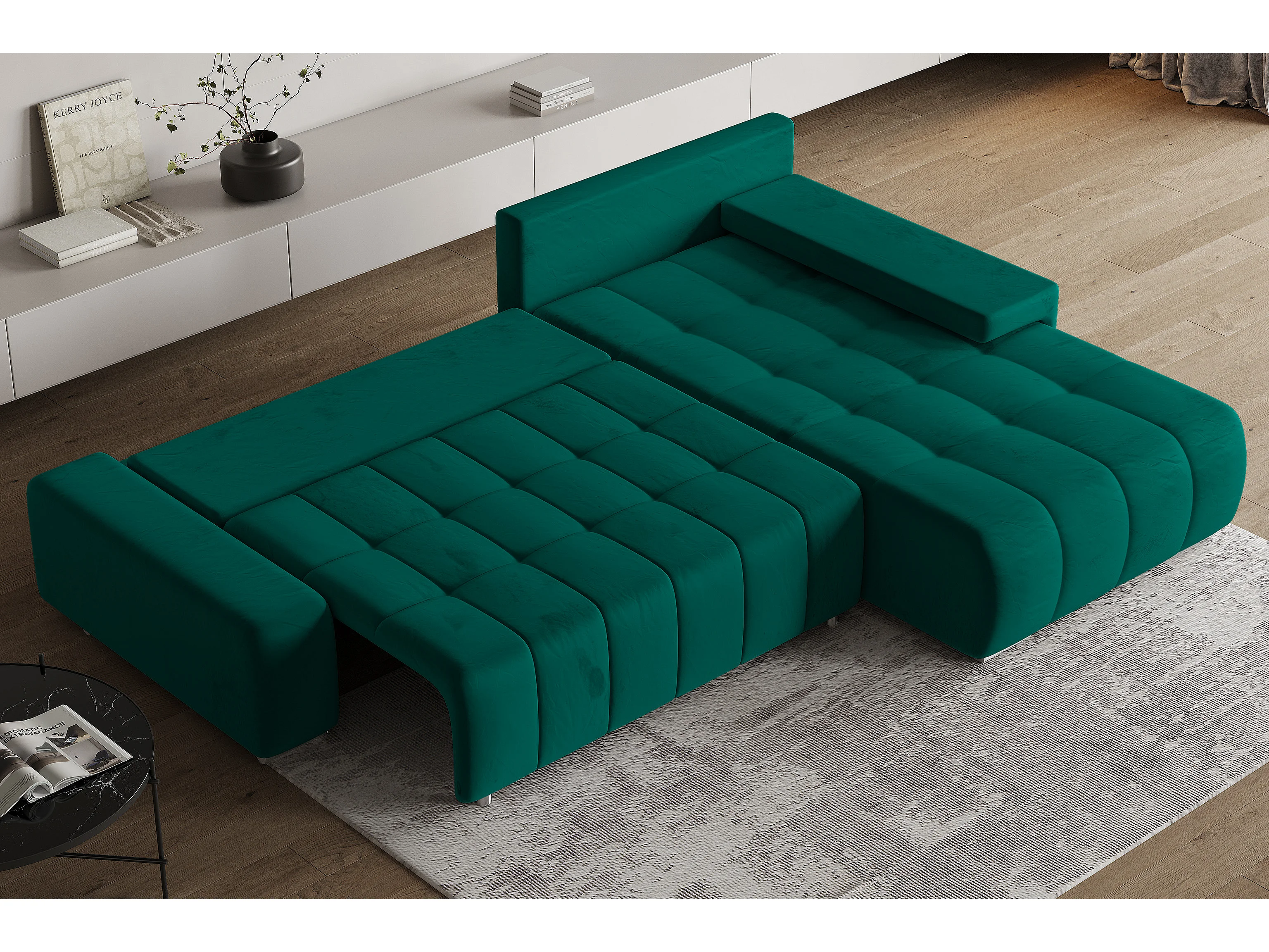 Hoekbank ALESE van fluweel met slaapfunctie Grün