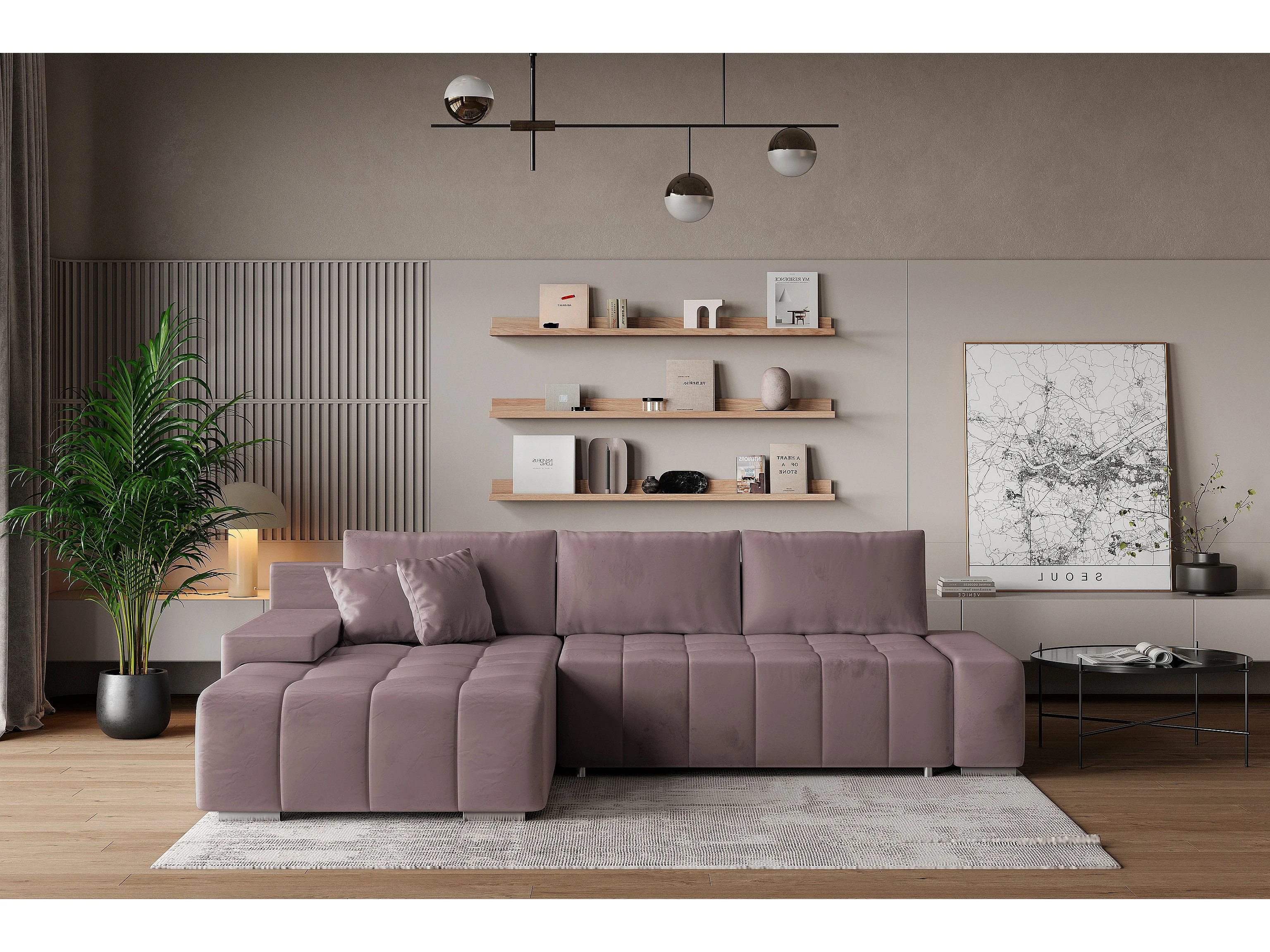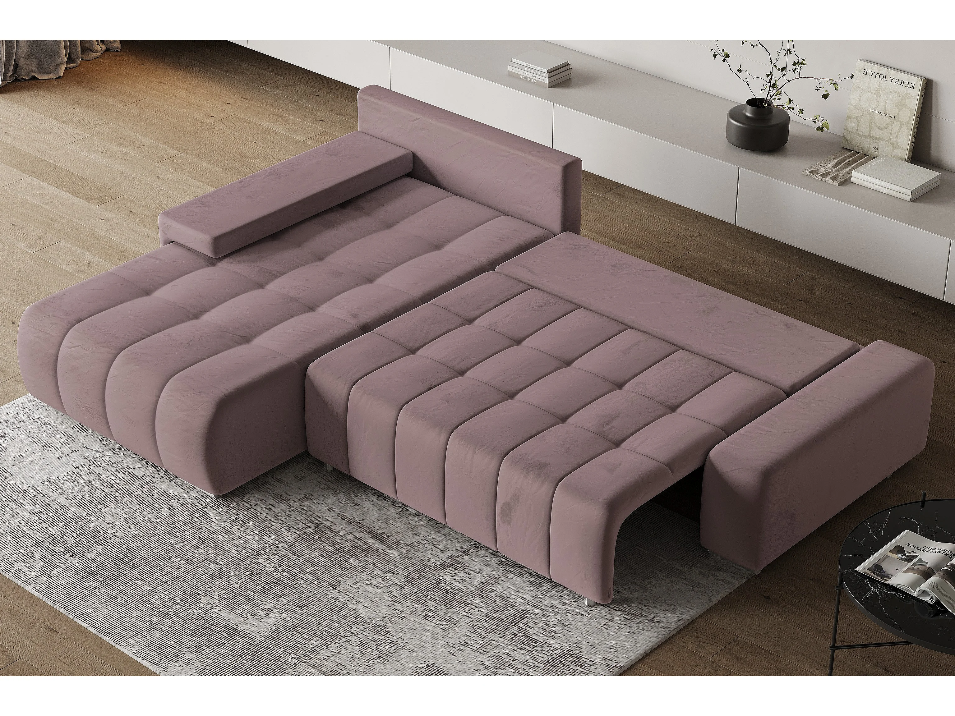 Hoekbank ALESE van fluweel met slaapfunctie Lila