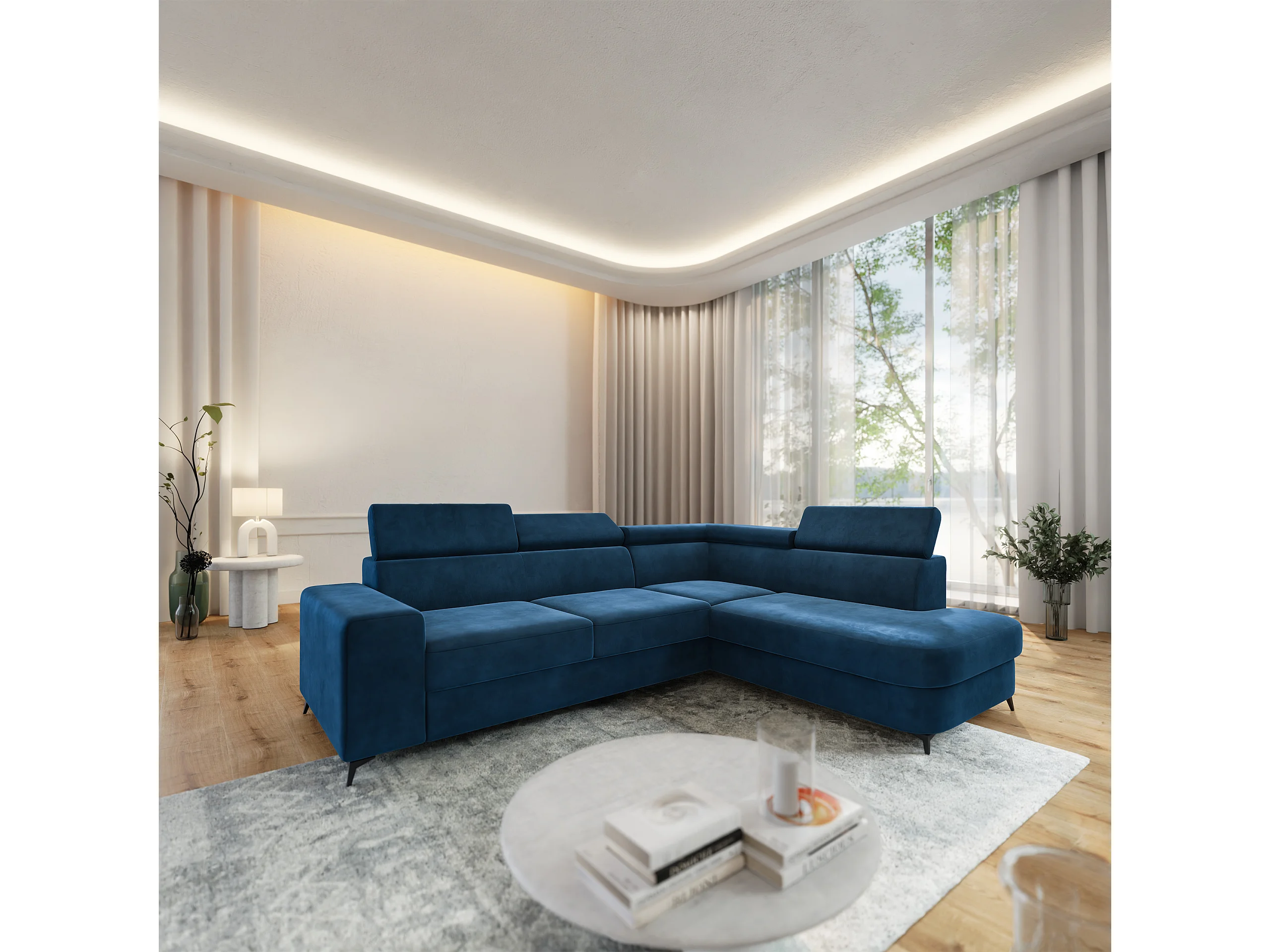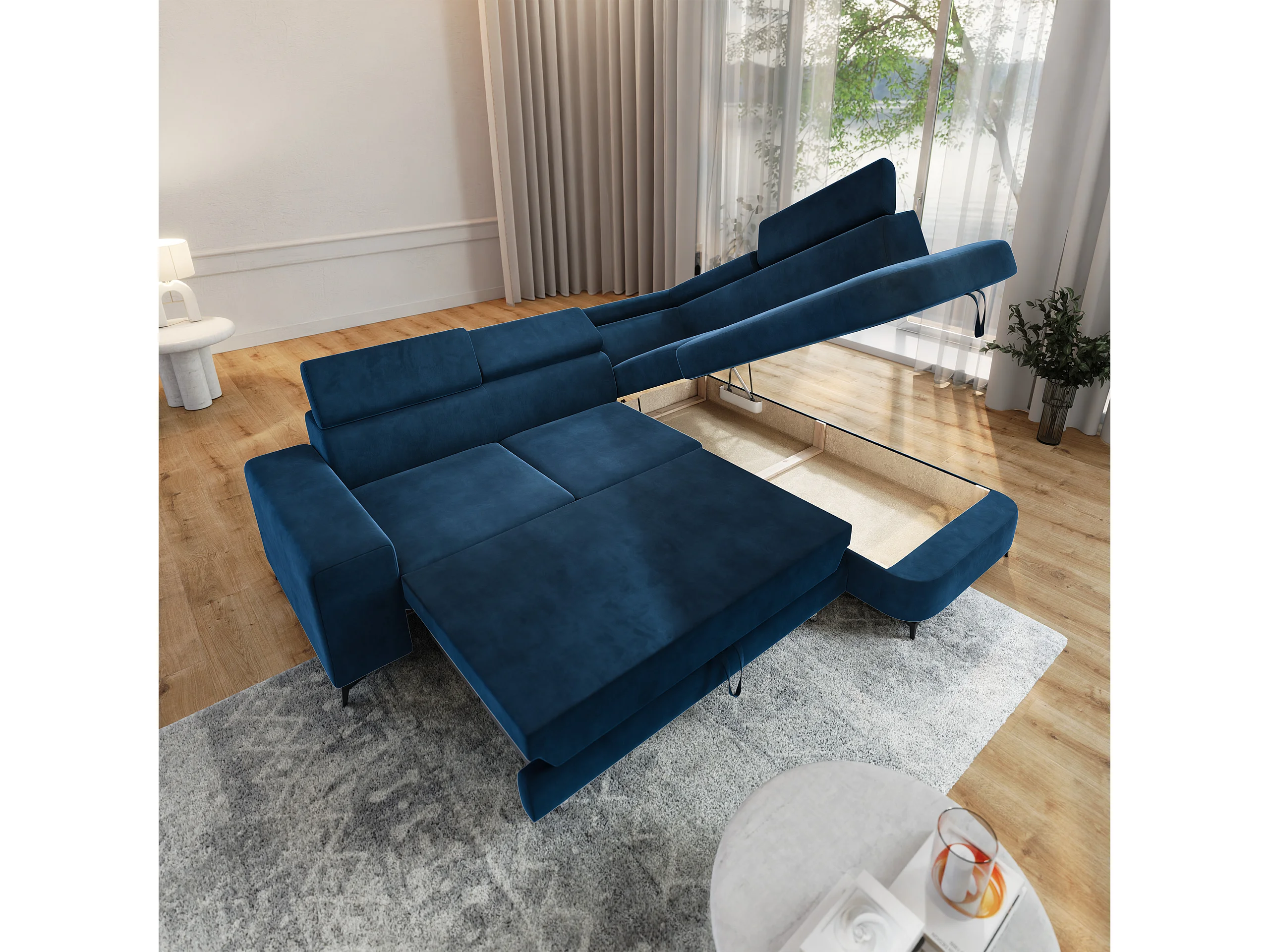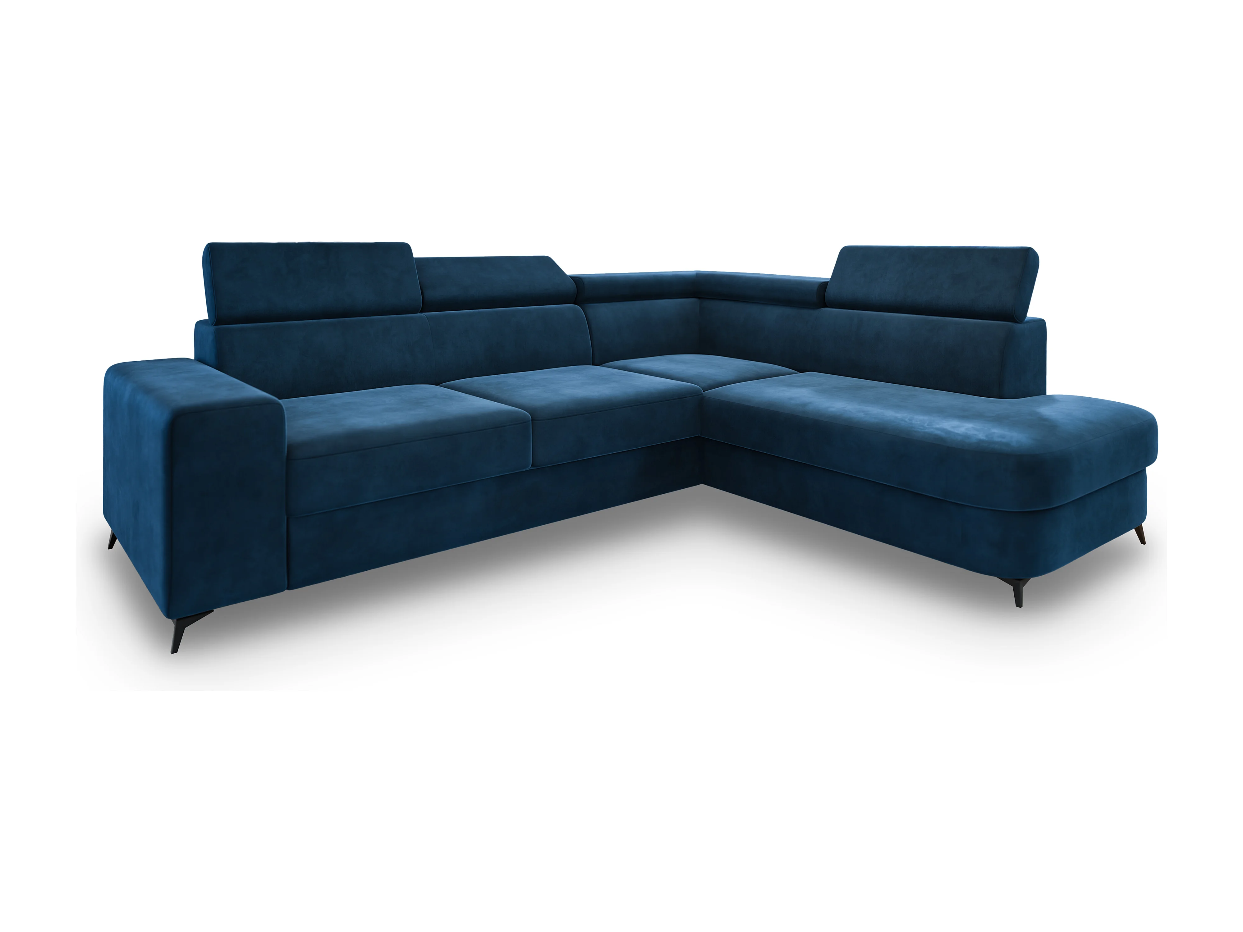 Hoekbank ALVORO van fluweel met slaapfunctie Blau