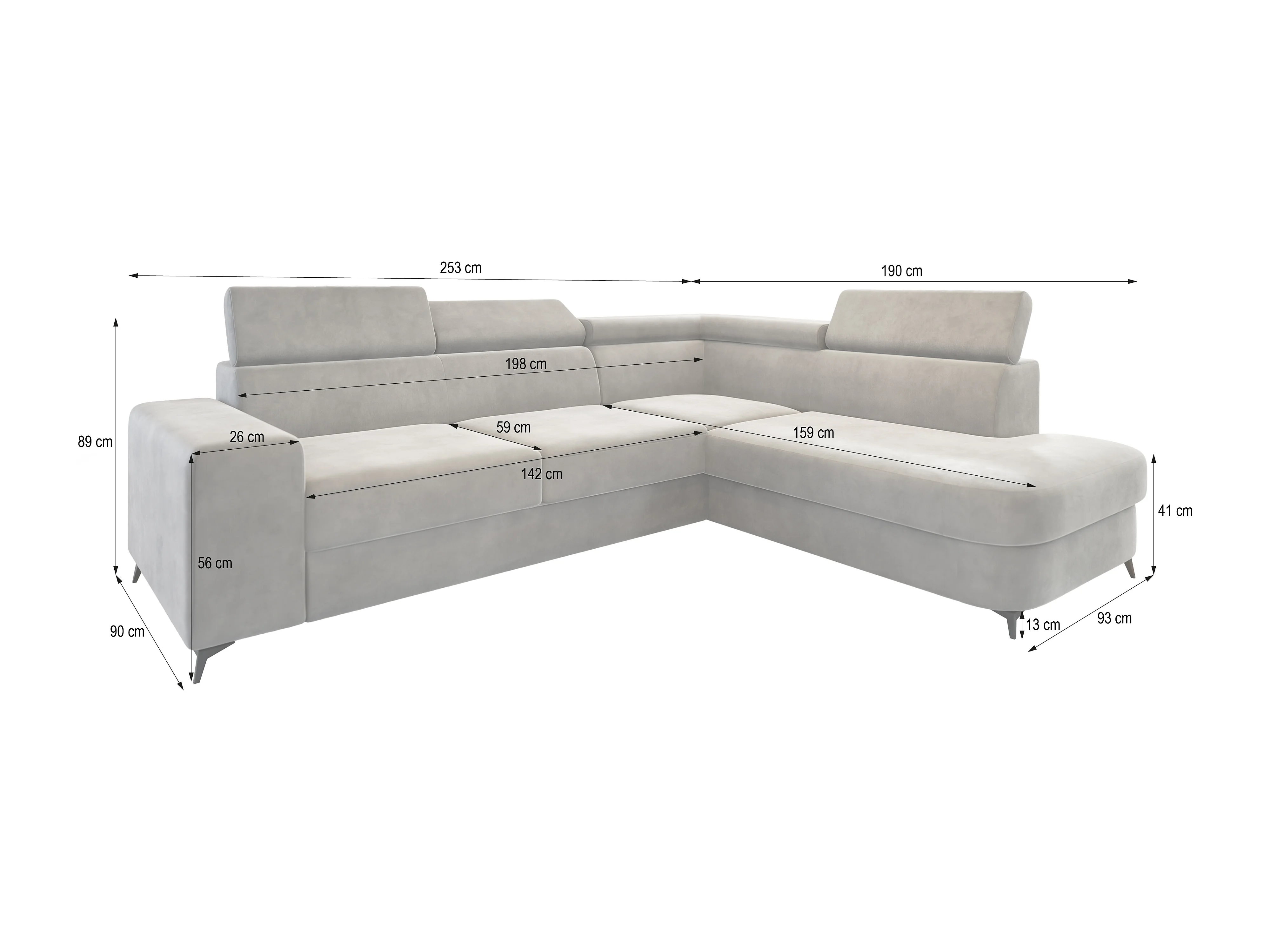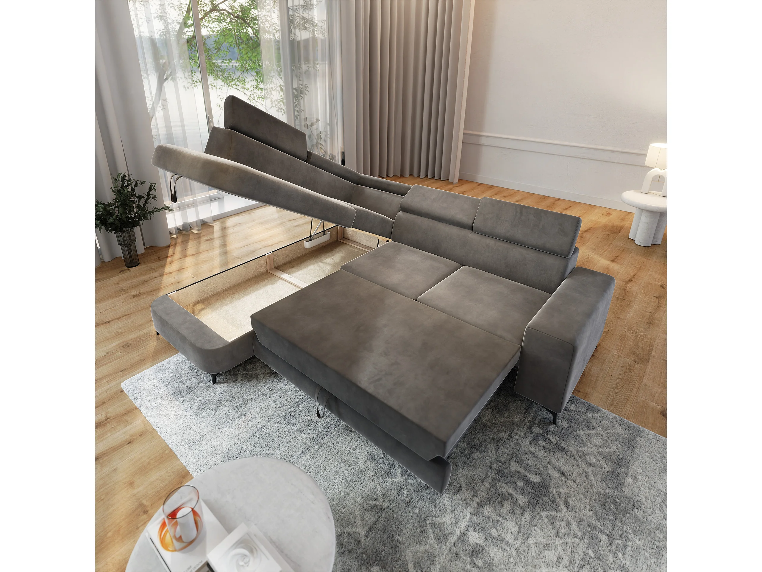 Hoekbank ALVORO van fluweel met slaapfunctie Grau