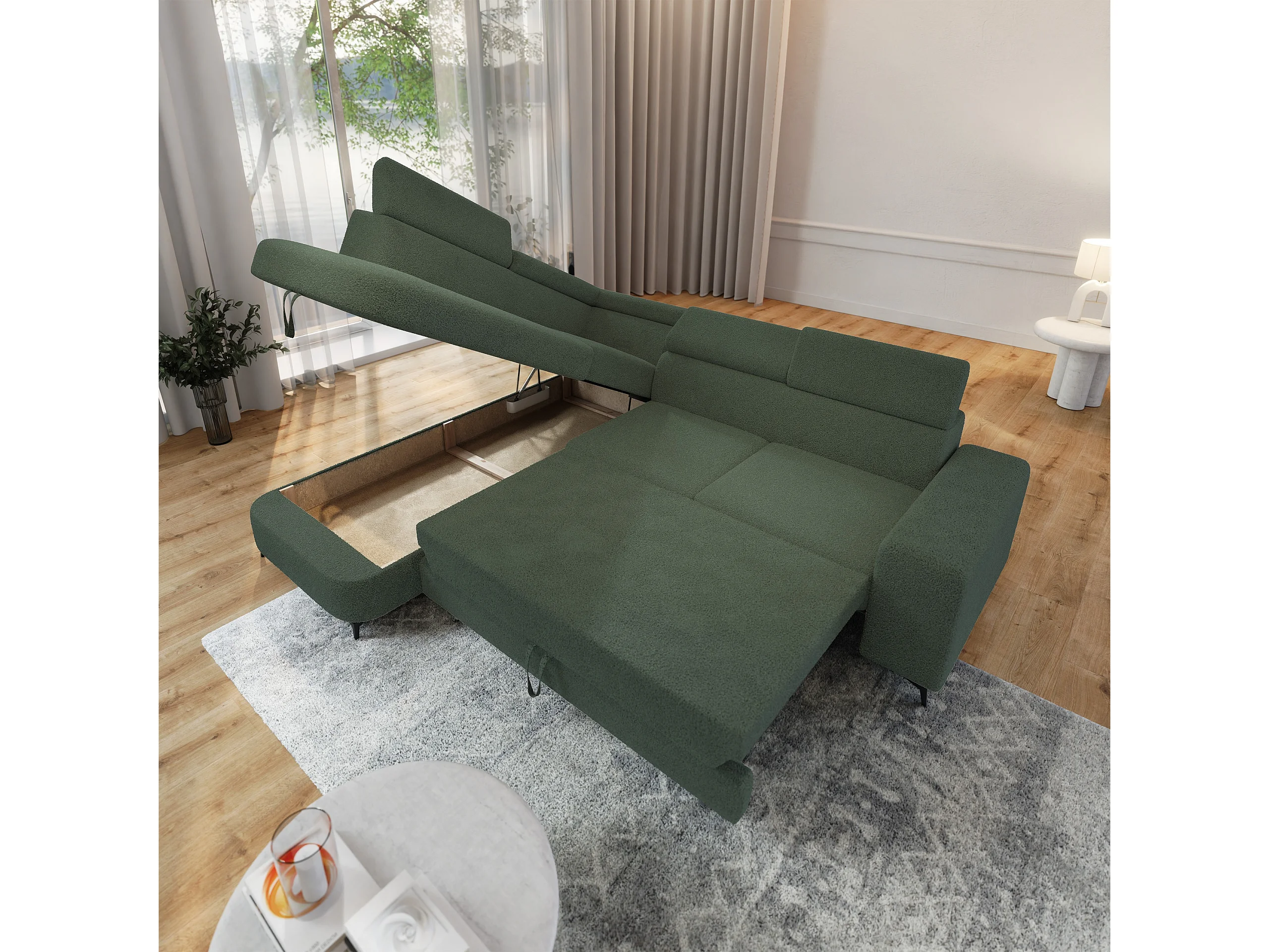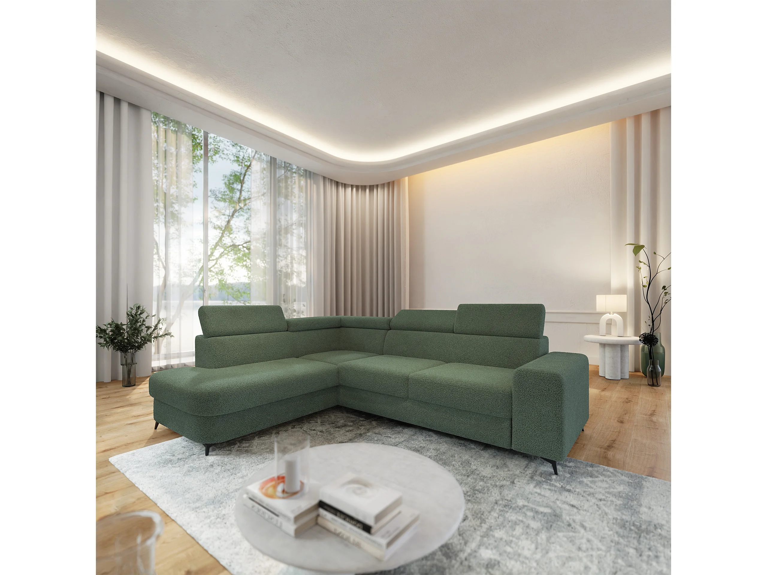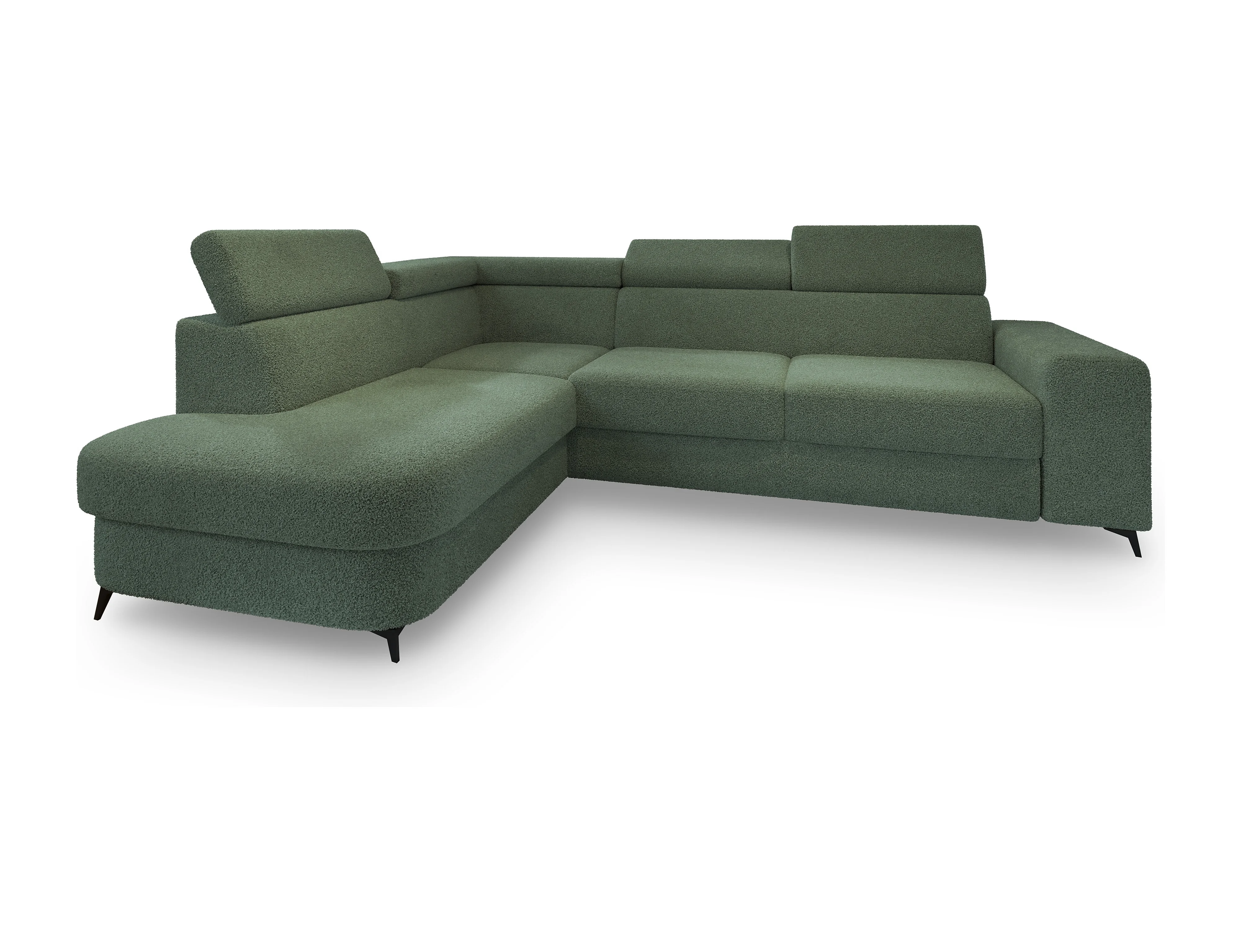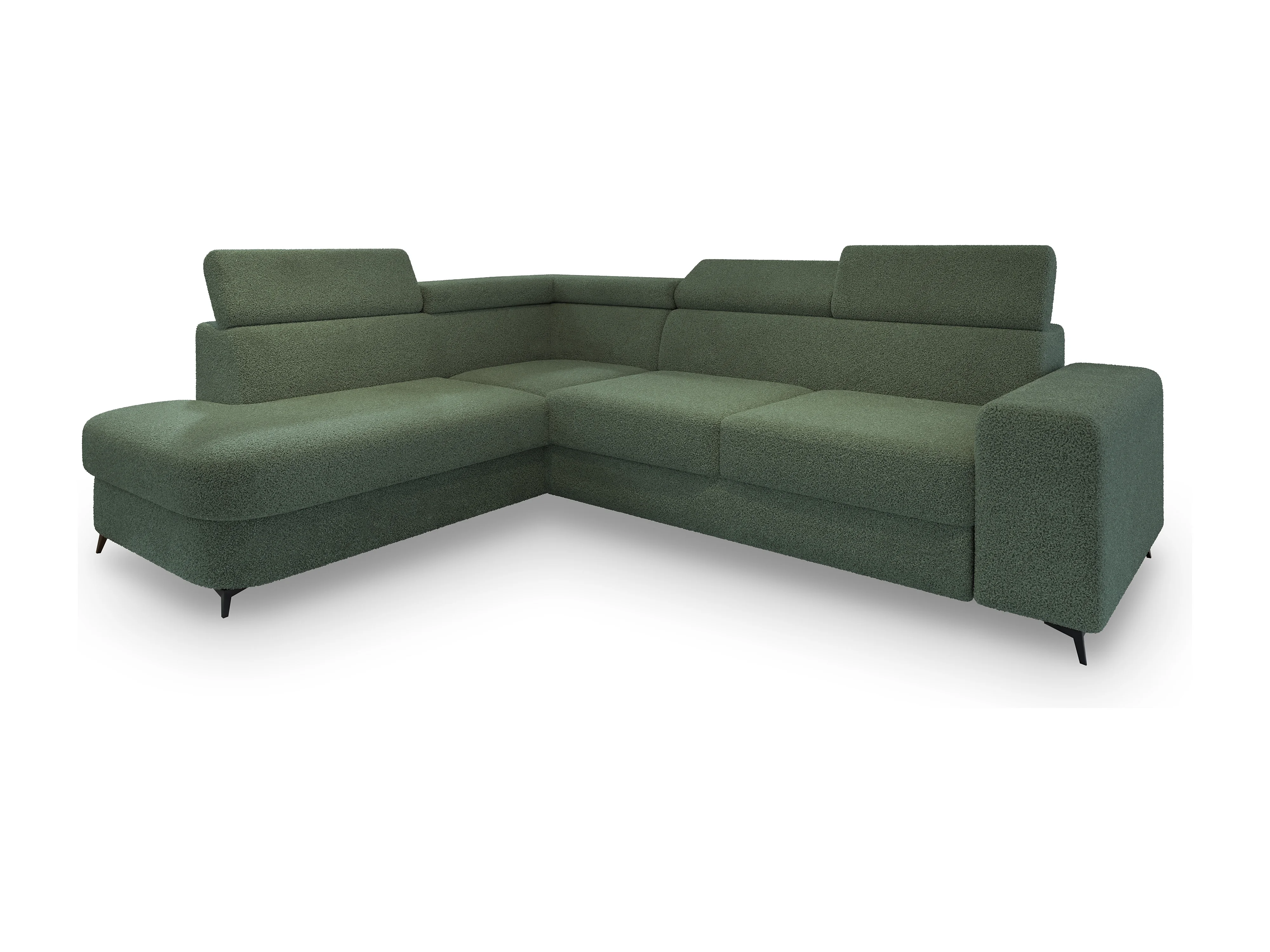 Hoekbank ALVORO van fluweel met slaapfunctie Grün