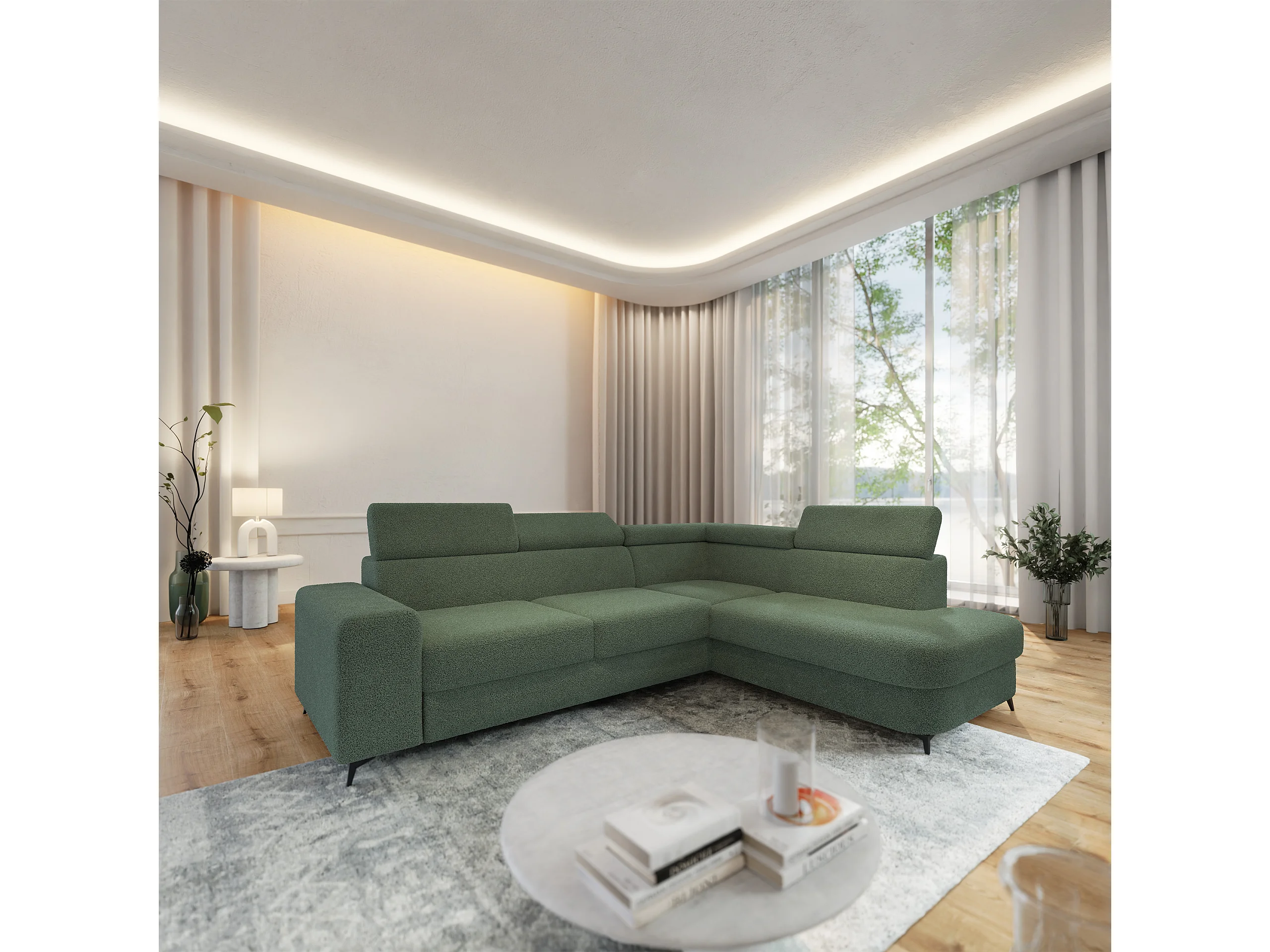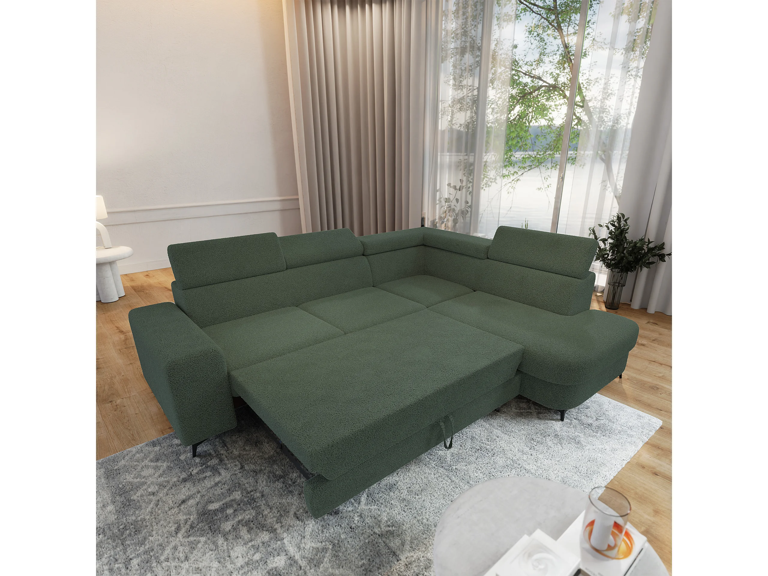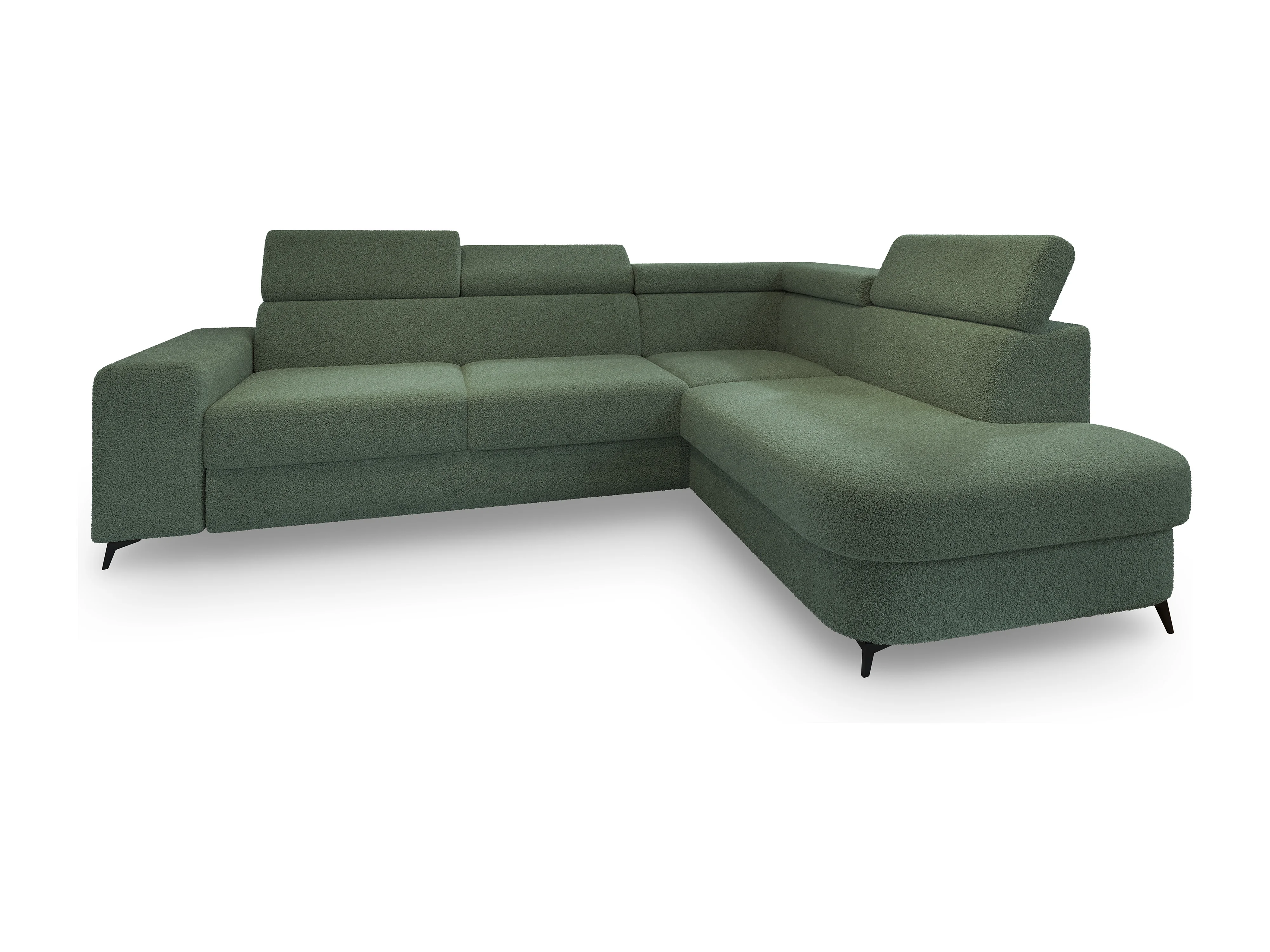 Hoekbank ALVORO van fluweel met slaapfunctie Grün