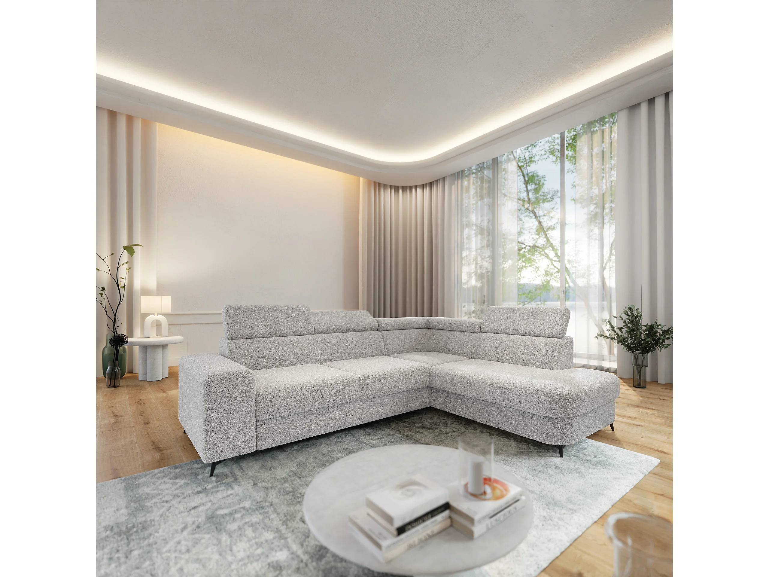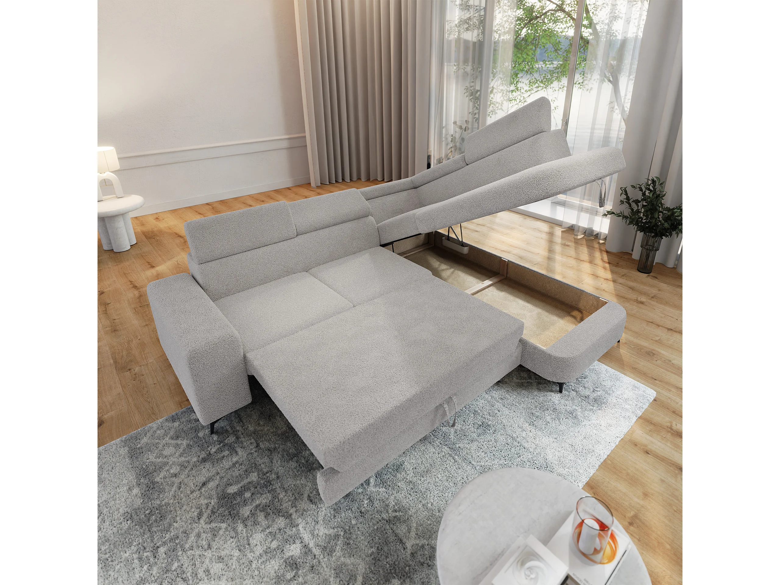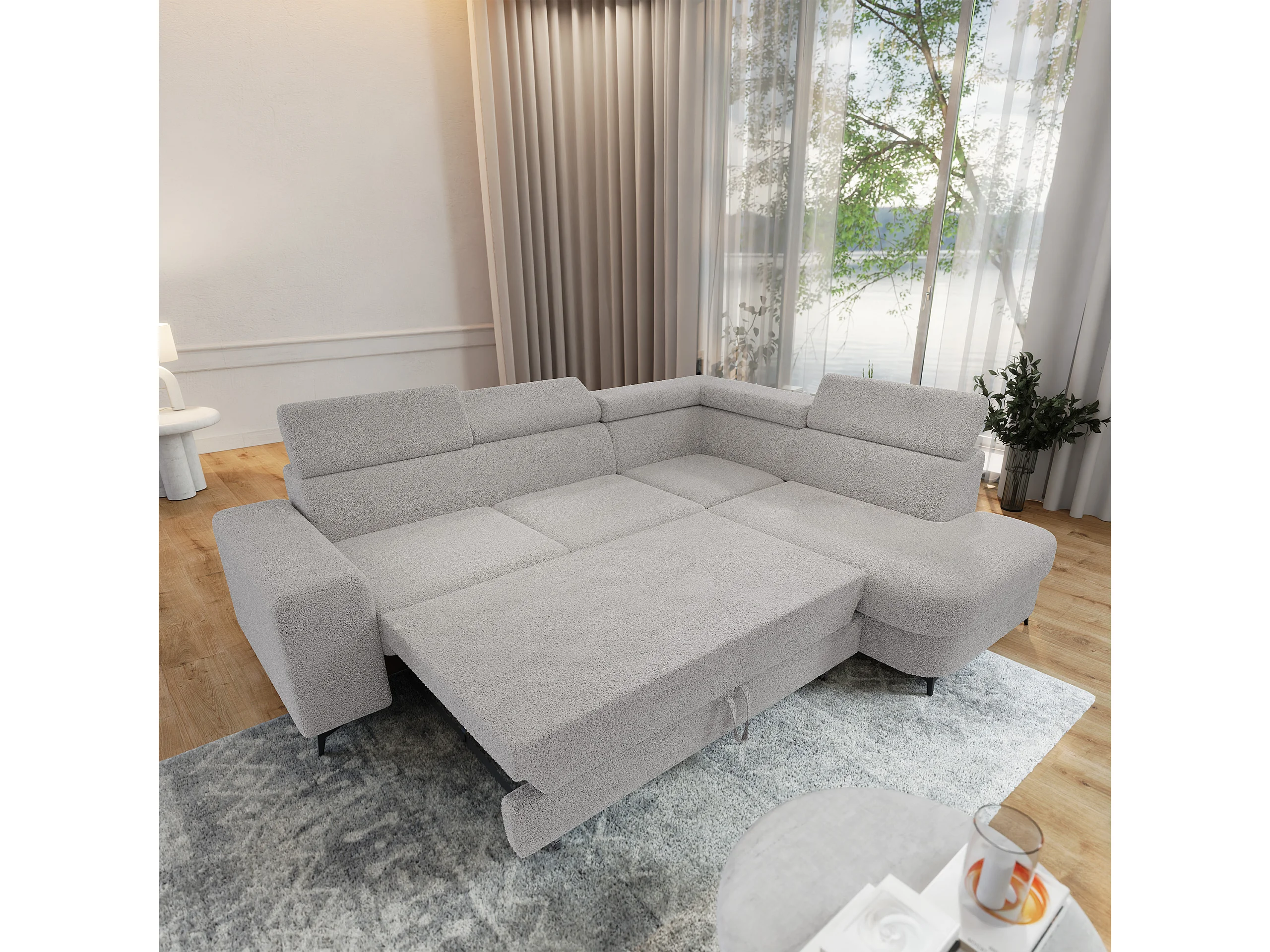 Hoekbank ALVORO van fluweel met slaapfunctie Hellgrau