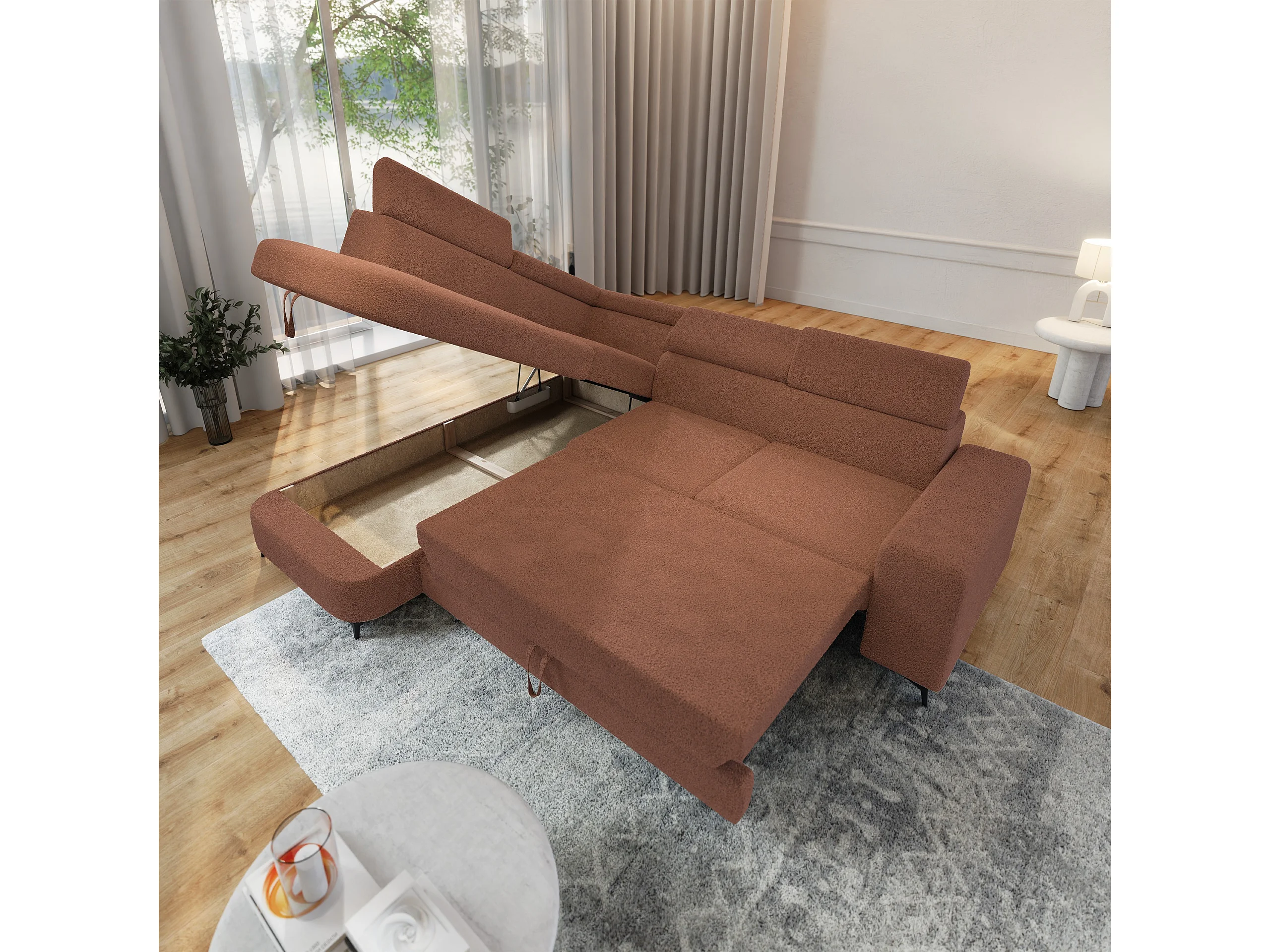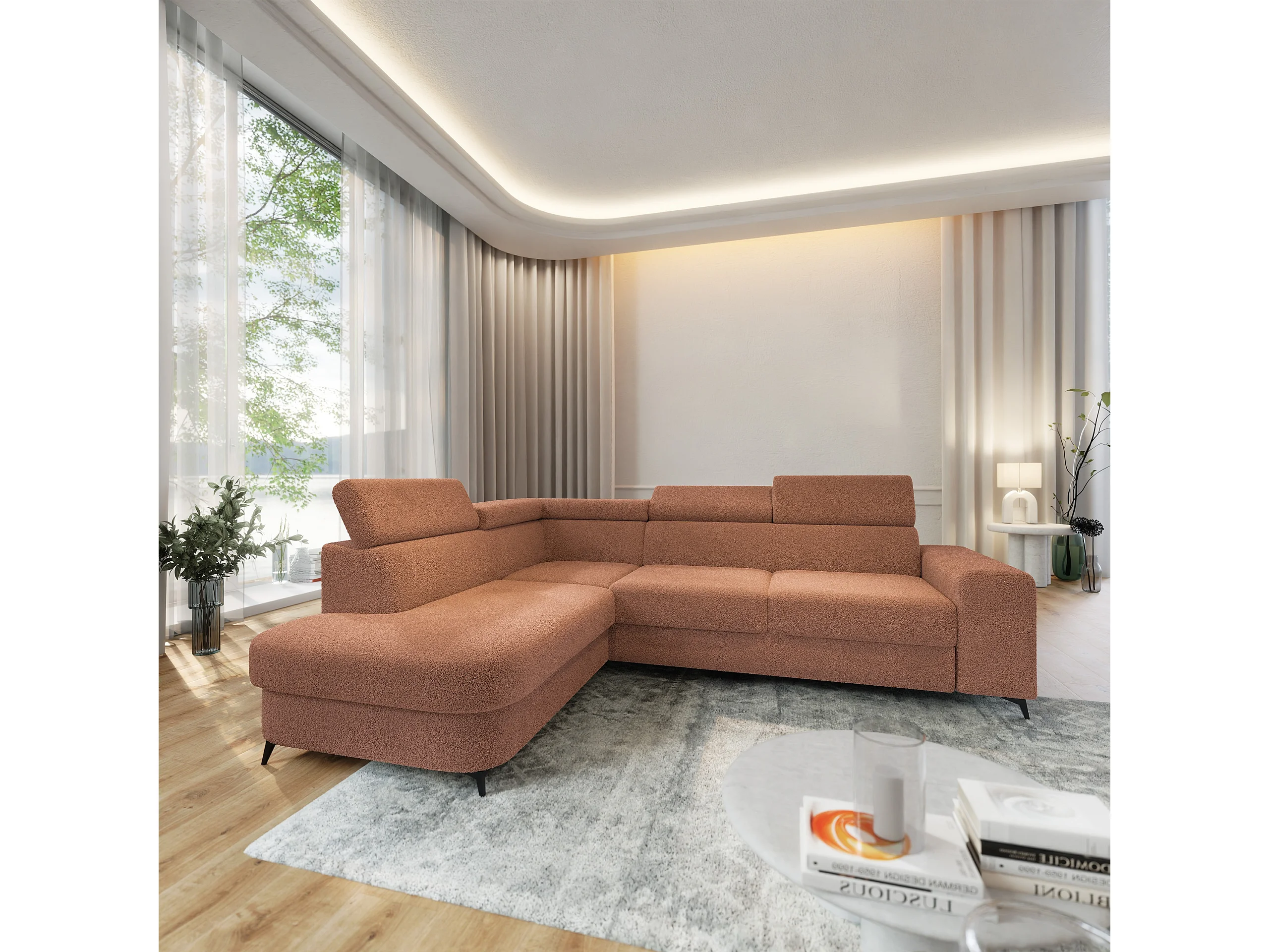 Hoekbank ALVORO van fluweel met slaapfunctie Orange