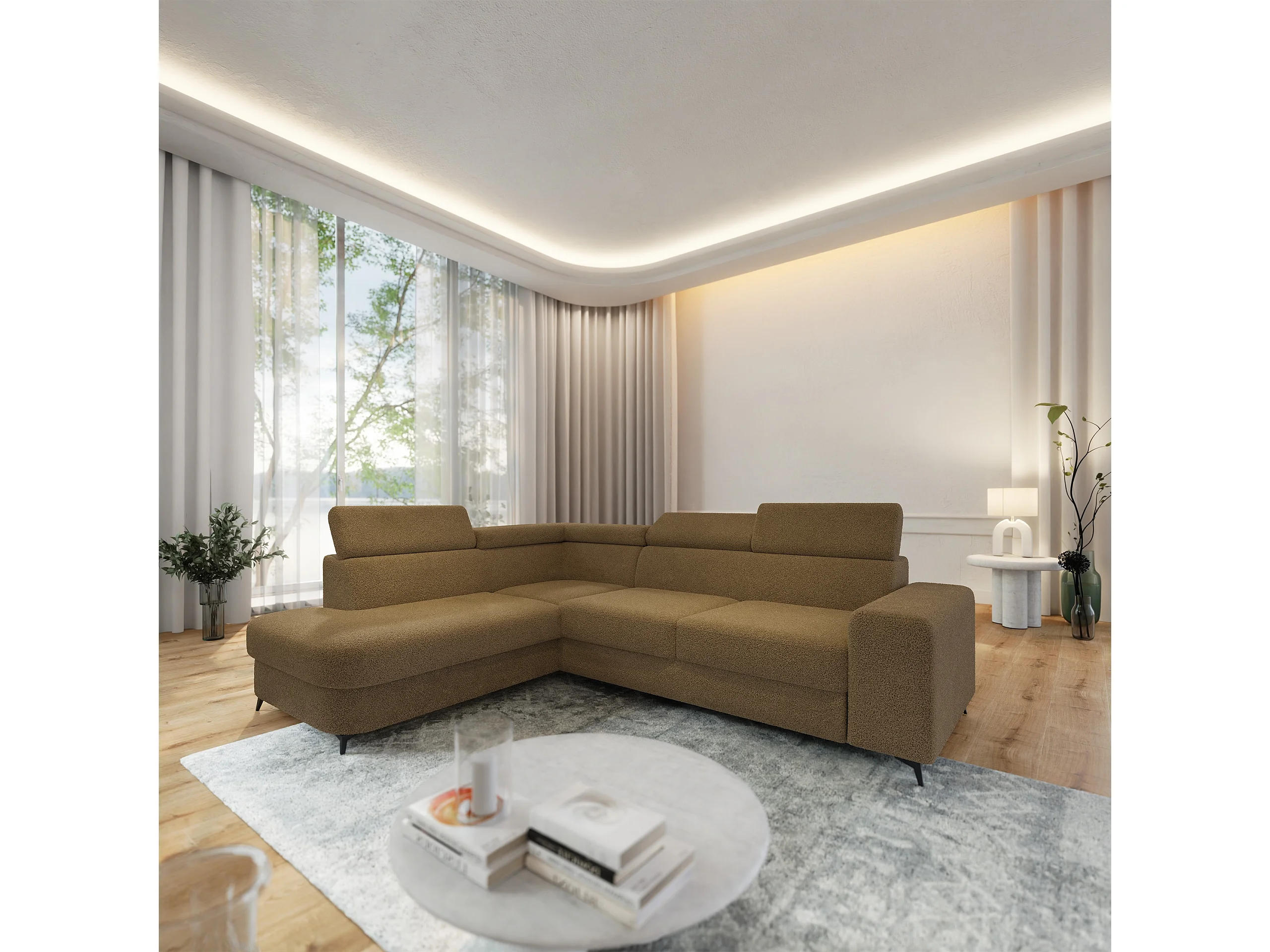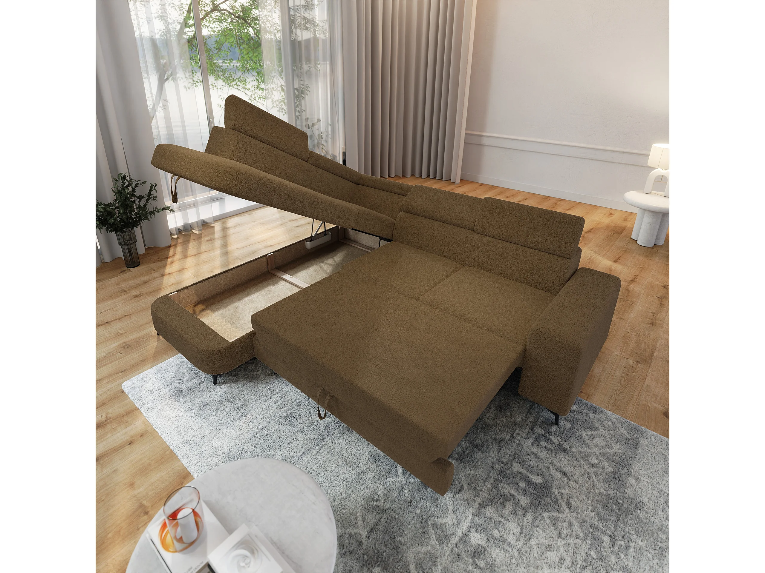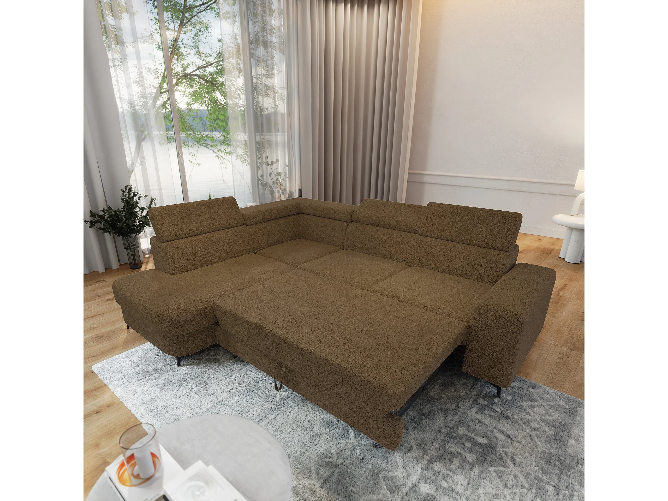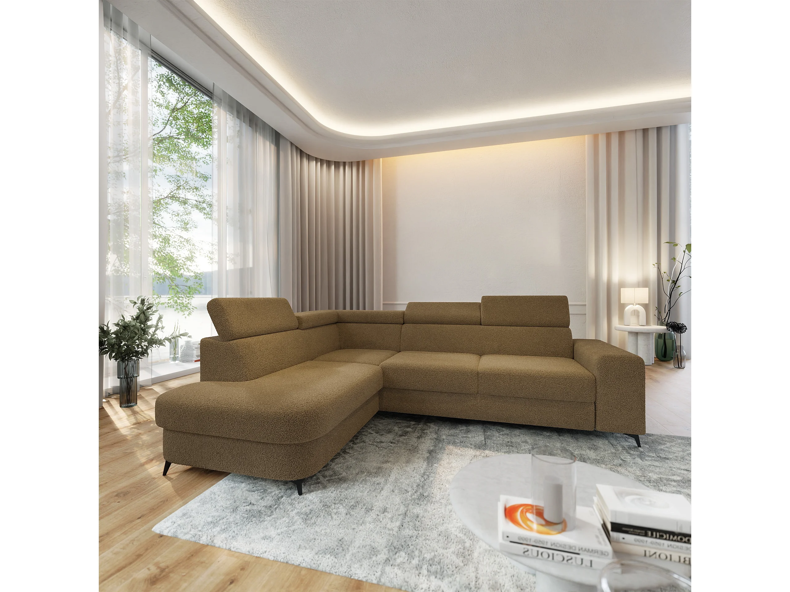 Hoekbank ALVORO van fluweel met slaapfunctie Orange