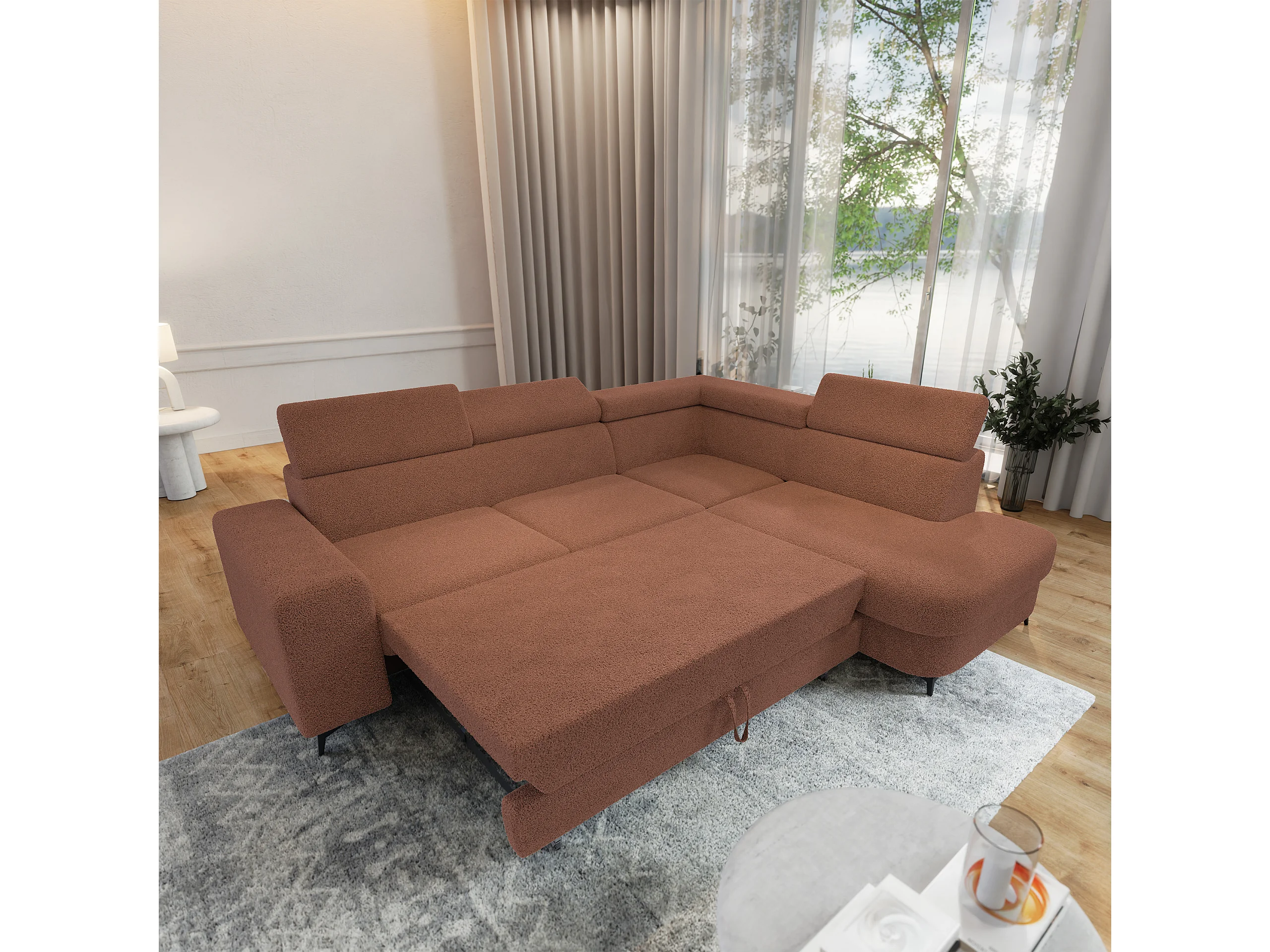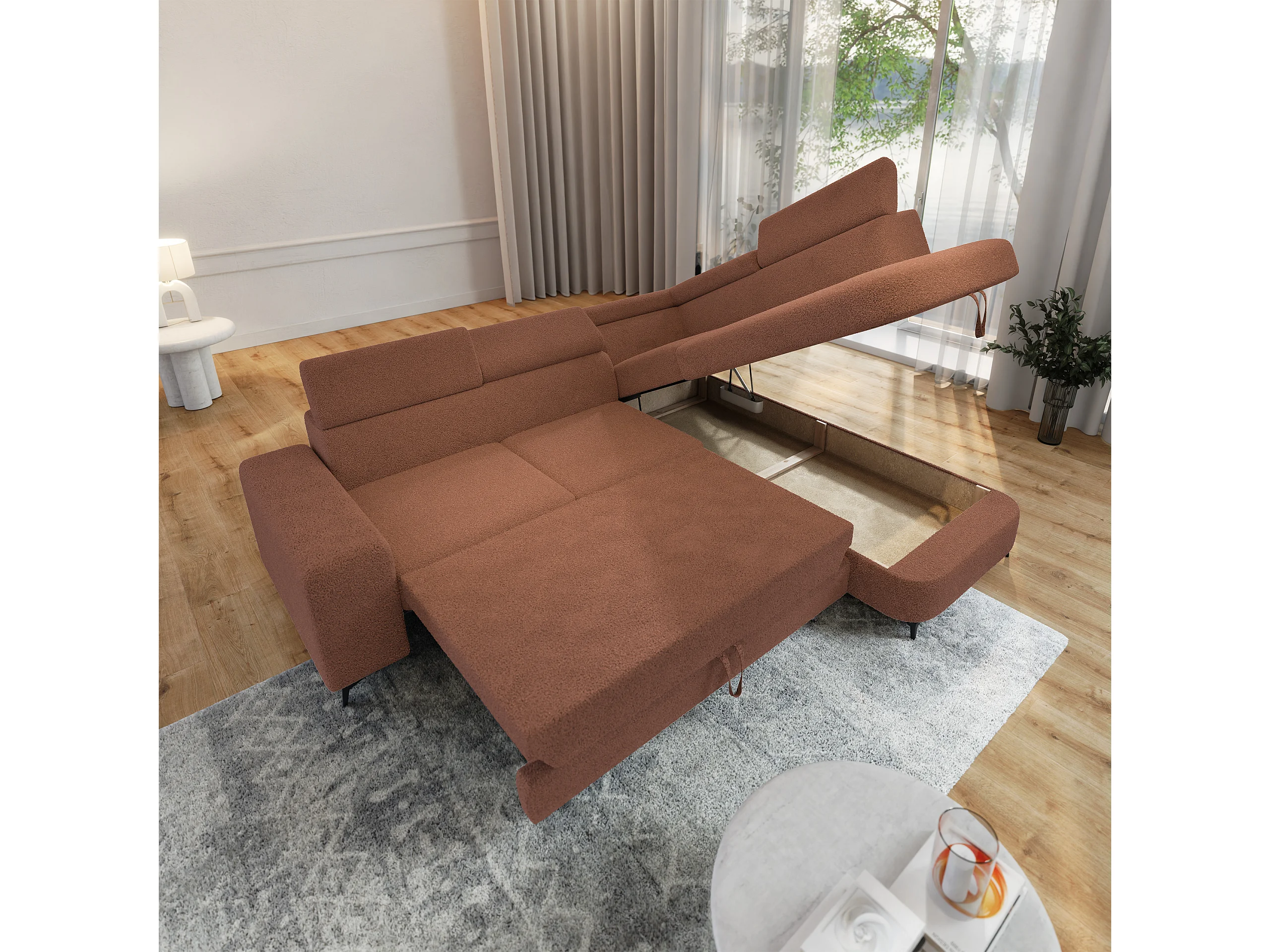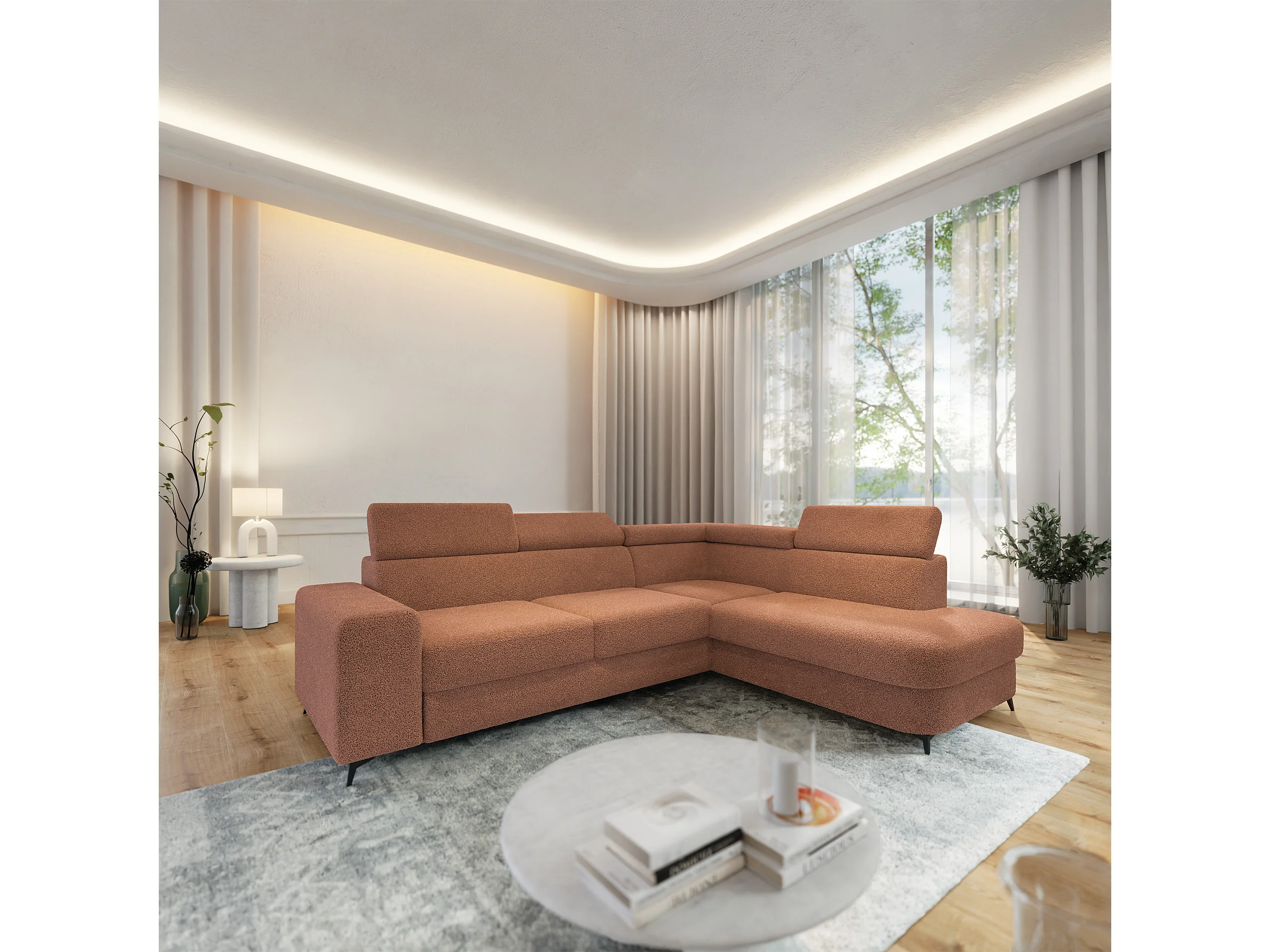 Hoekbank ALVORO van fluweel met slaapfunctie Orange