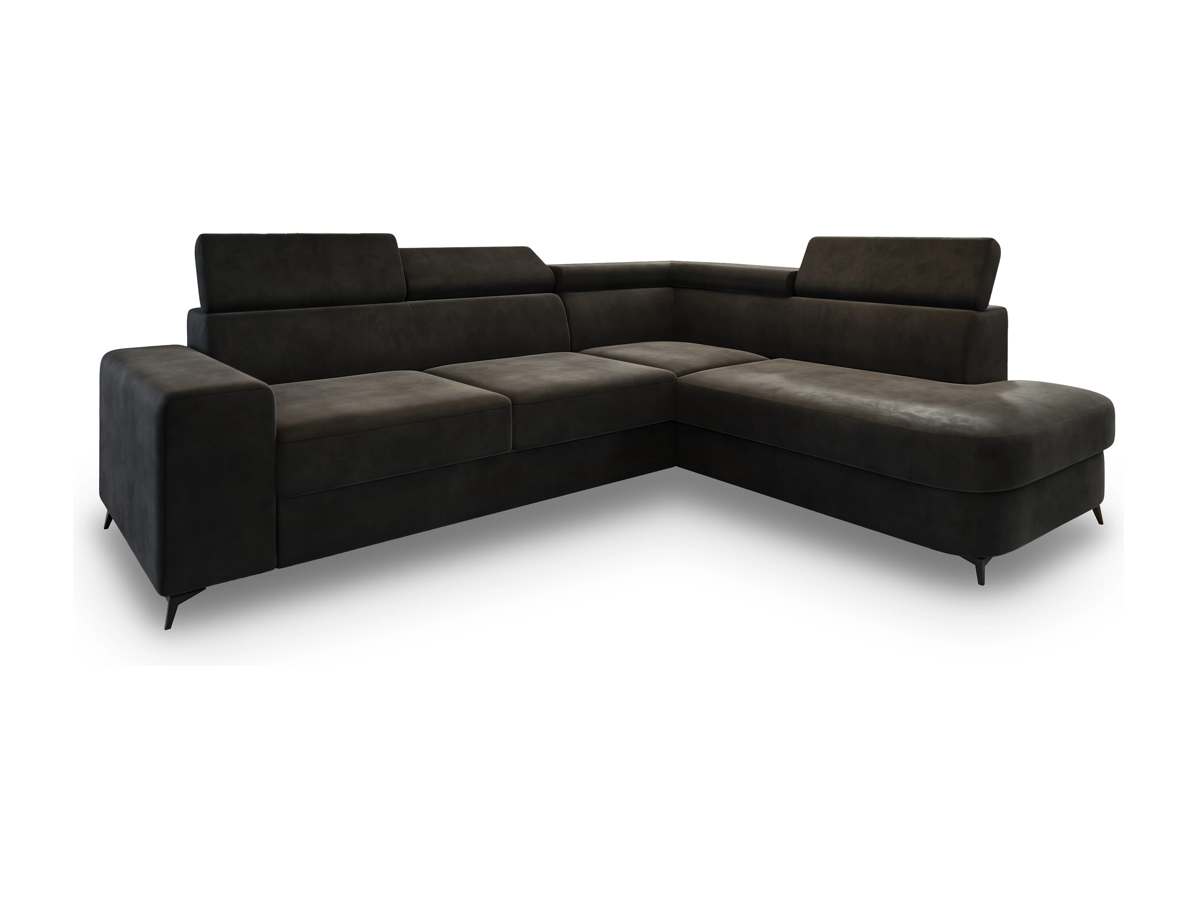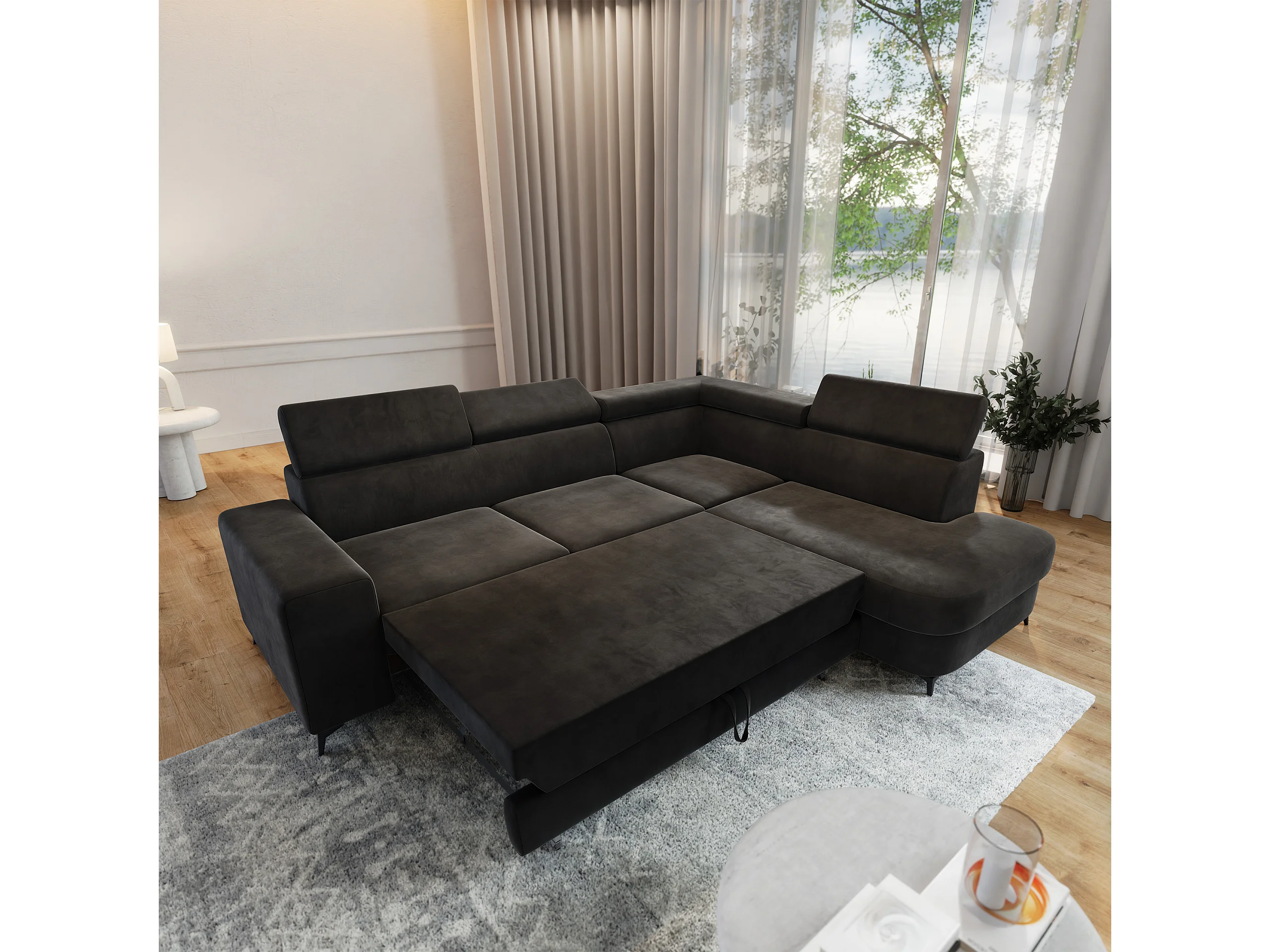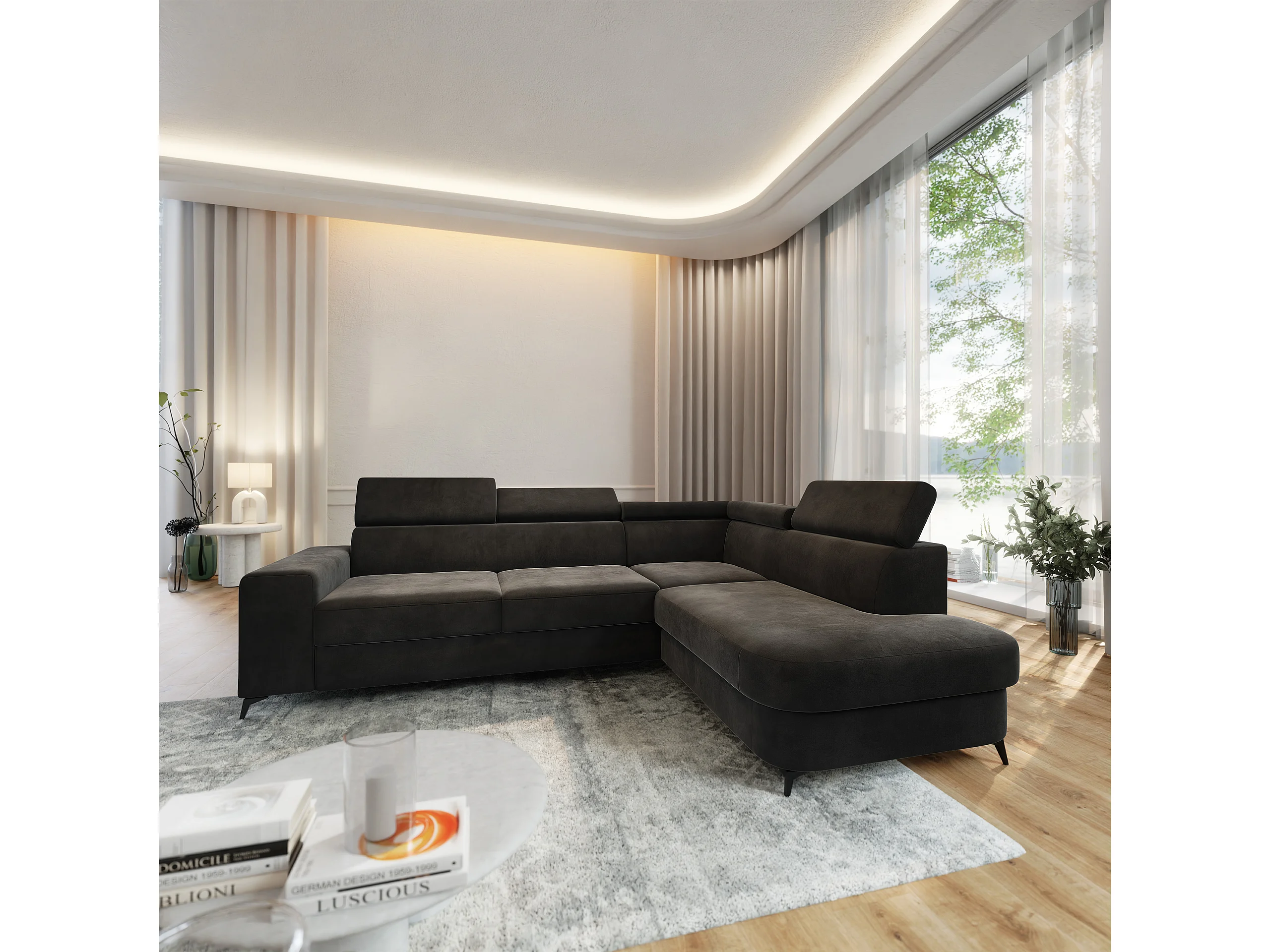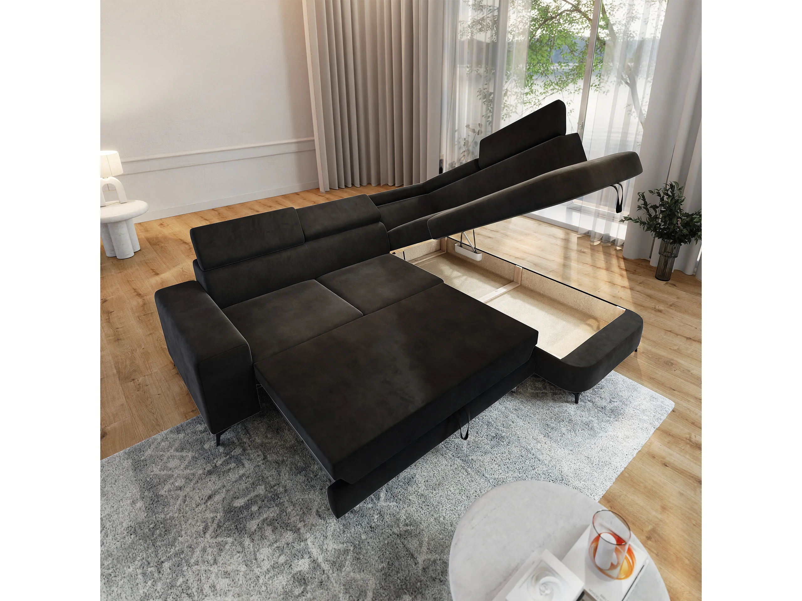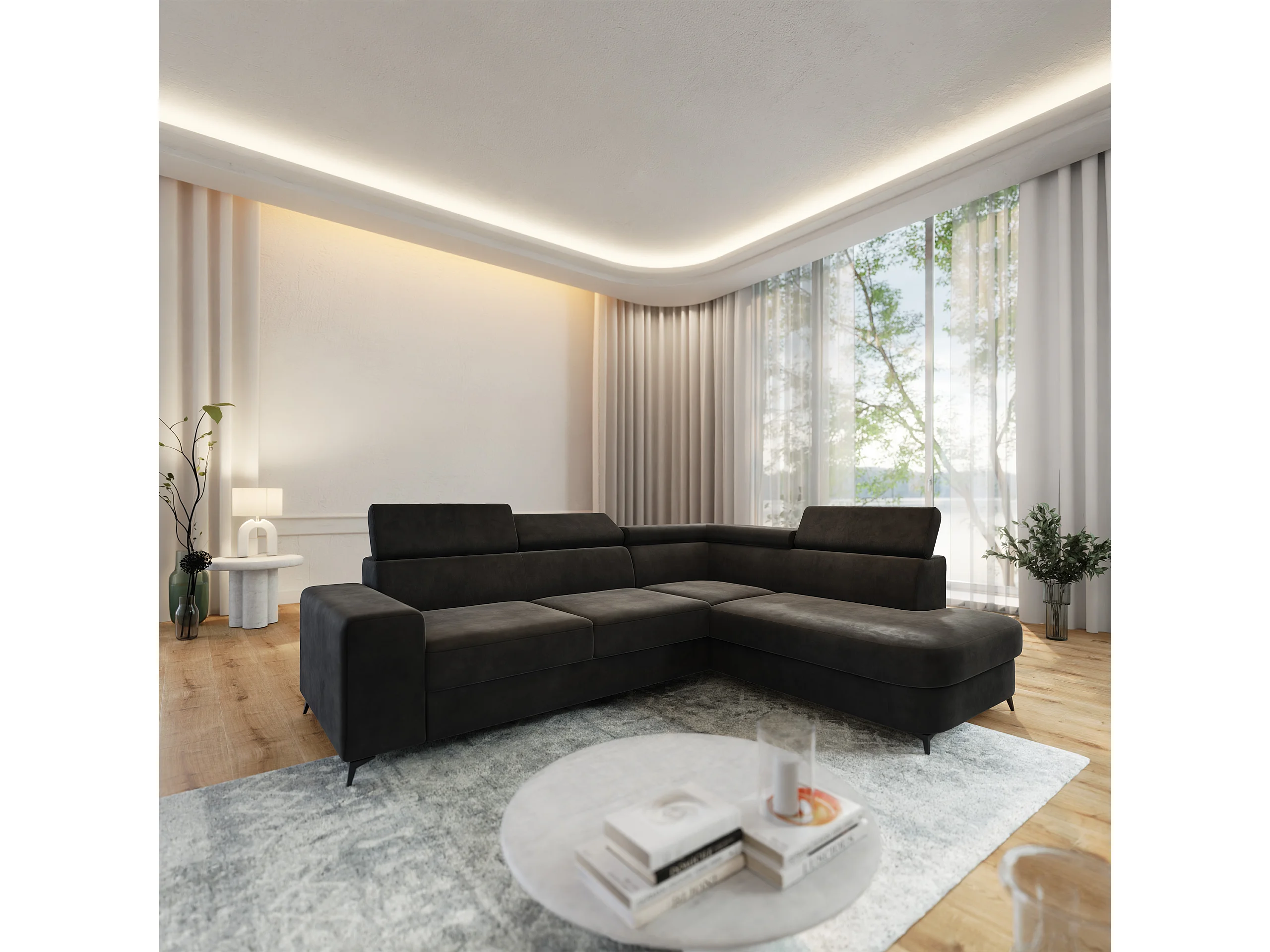 Hoekbank ALVORO van fluweel met slaapfunctie Schwarz