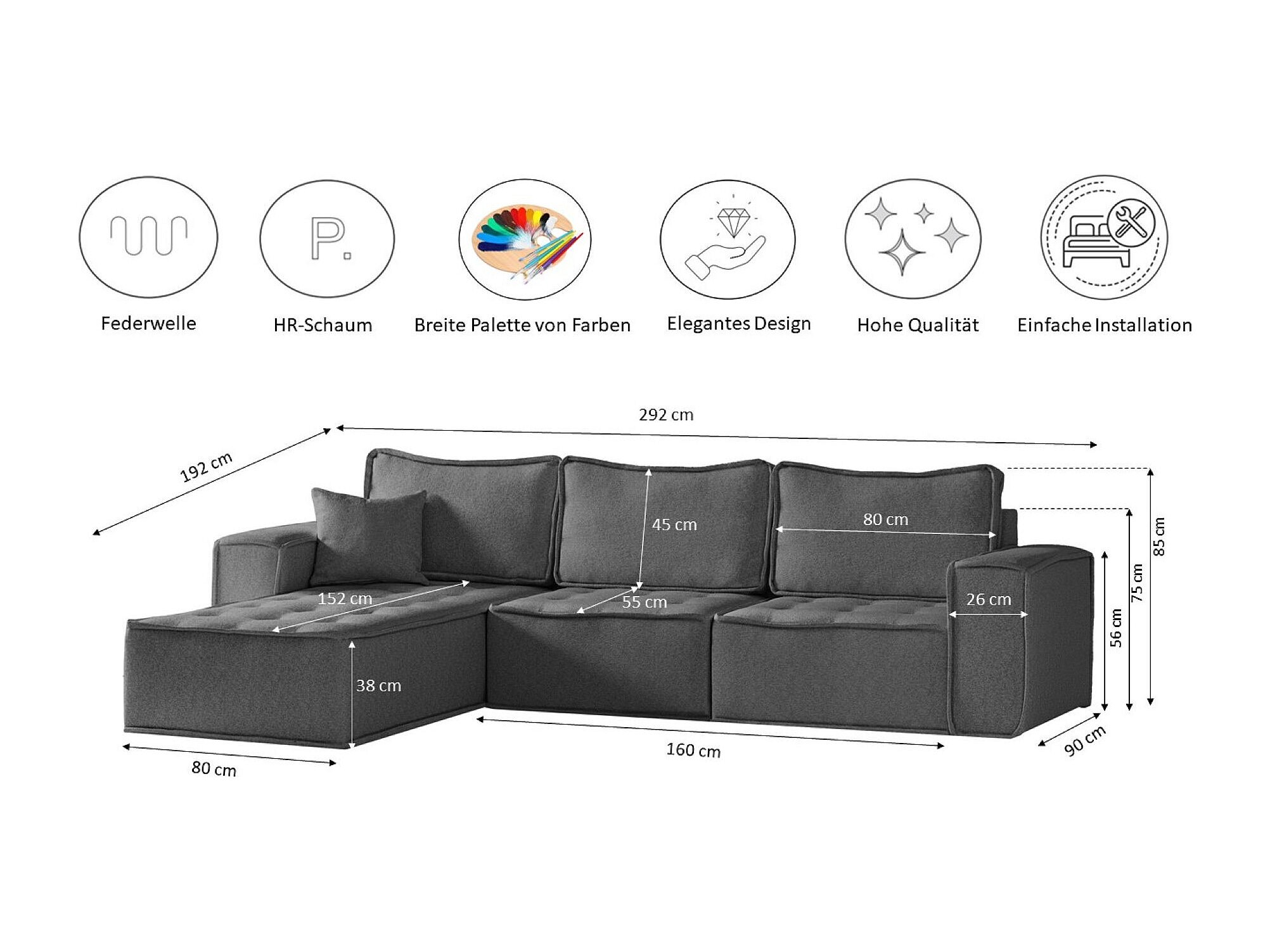 Hoekbank Bohoo Maxi L-vorm, stof Raven, donkergrijs, links