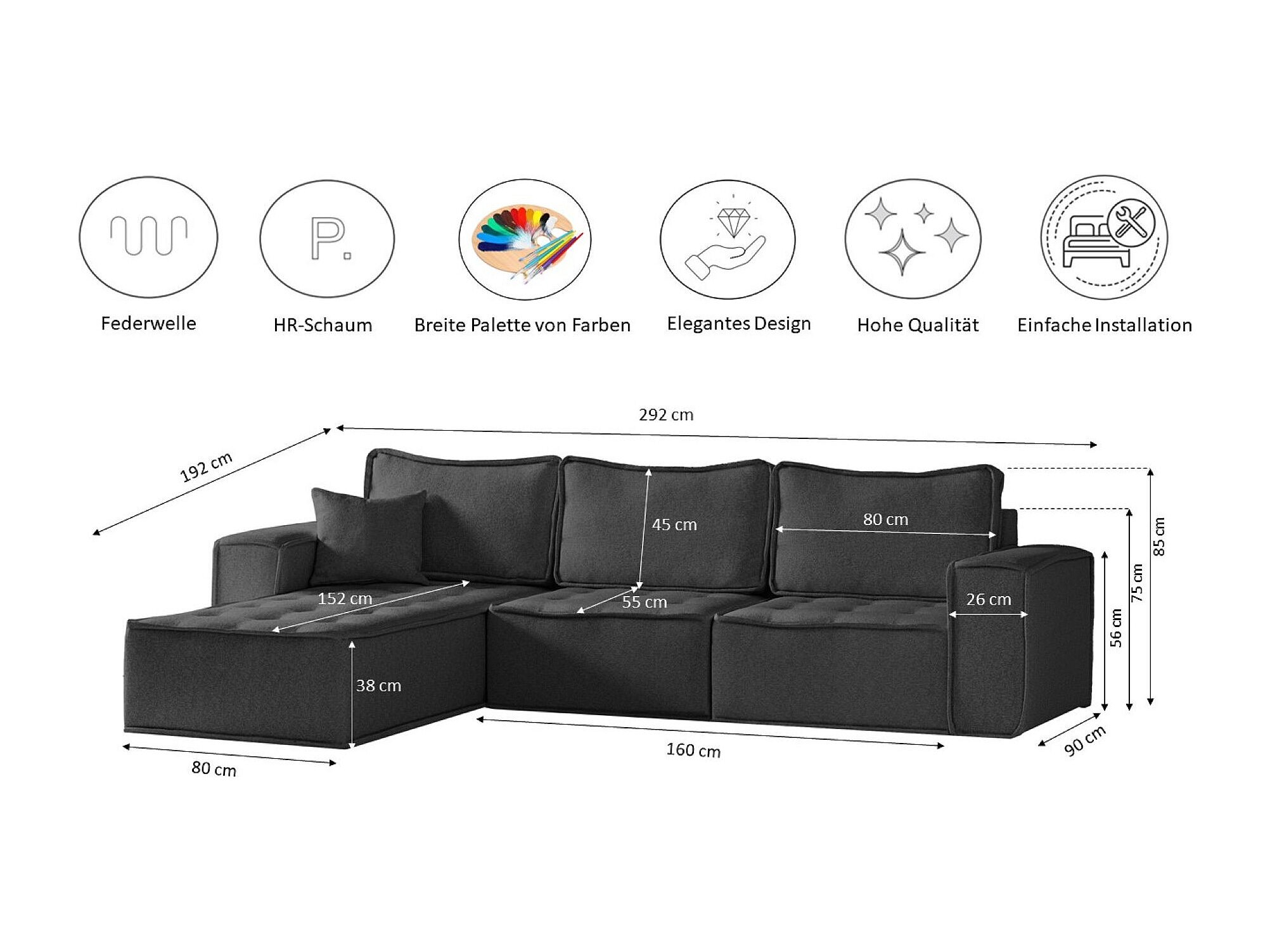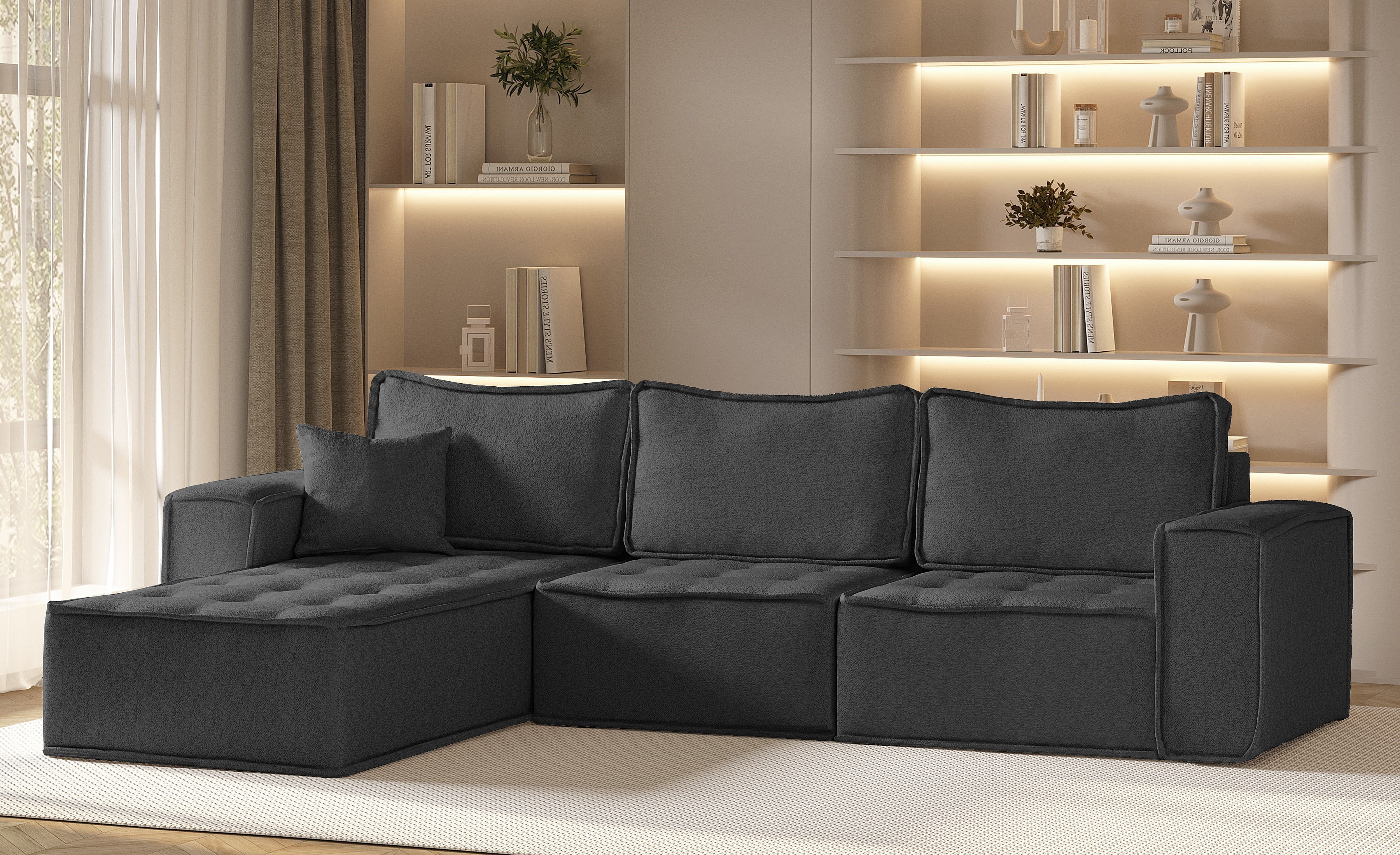 Hoekbank Bohoo Maxi L-vorm, stof Raven, grafiet, links