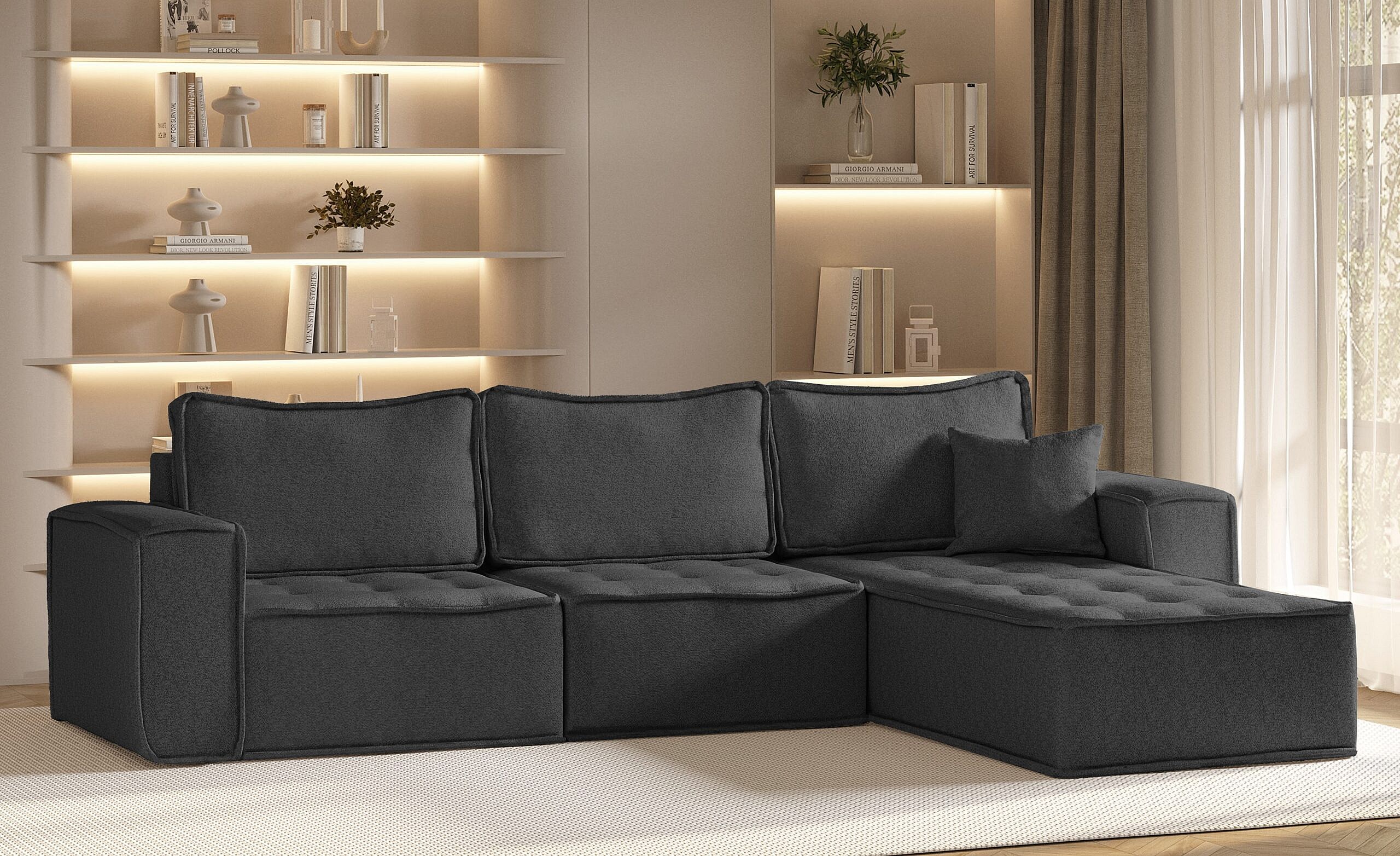 Hoekbank Bohoo Maxi L-vorm, stof Raven, grafiet, rechts