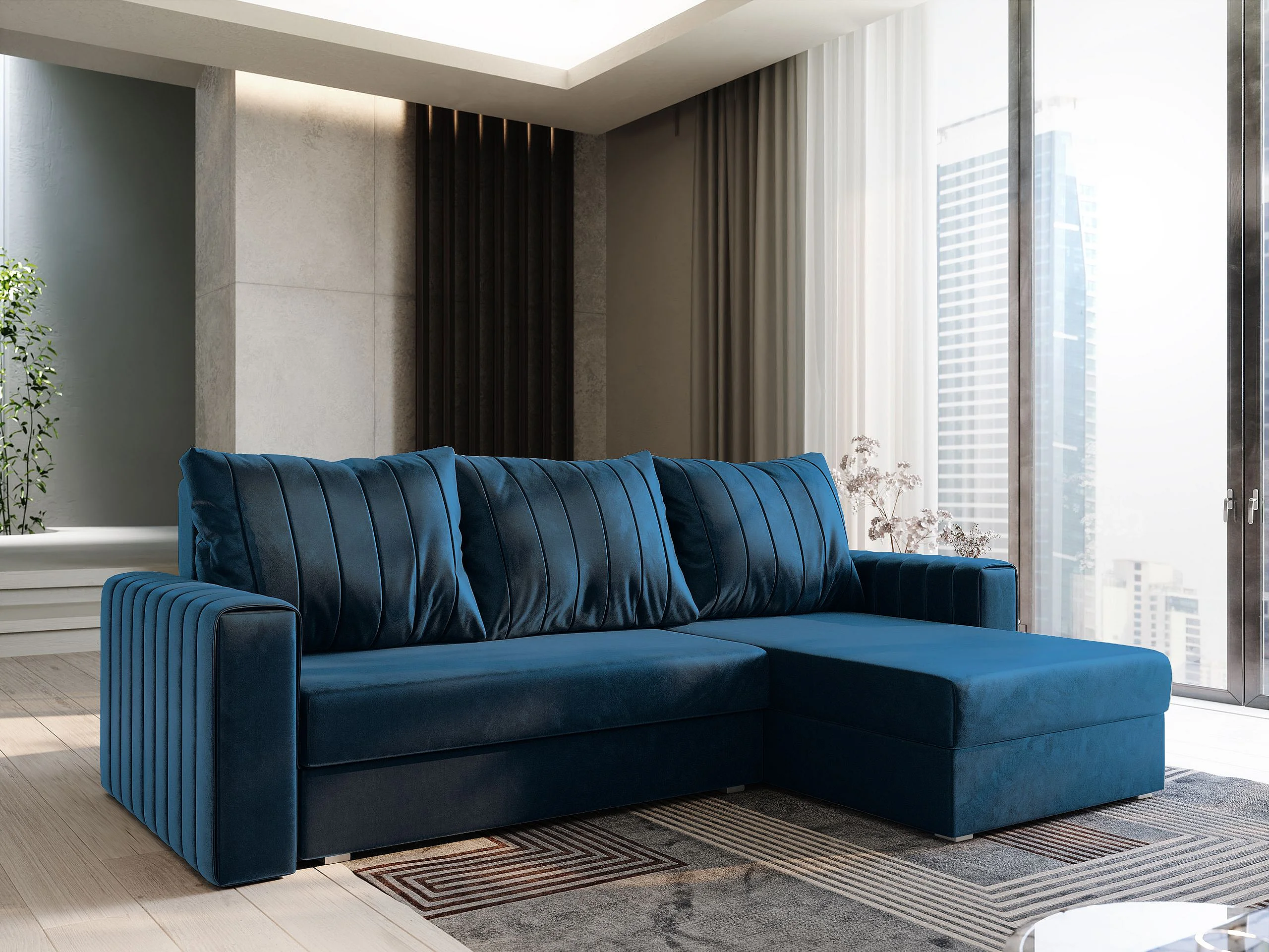 Hoekbank CARL van fluweel met slaapfunctie Blau